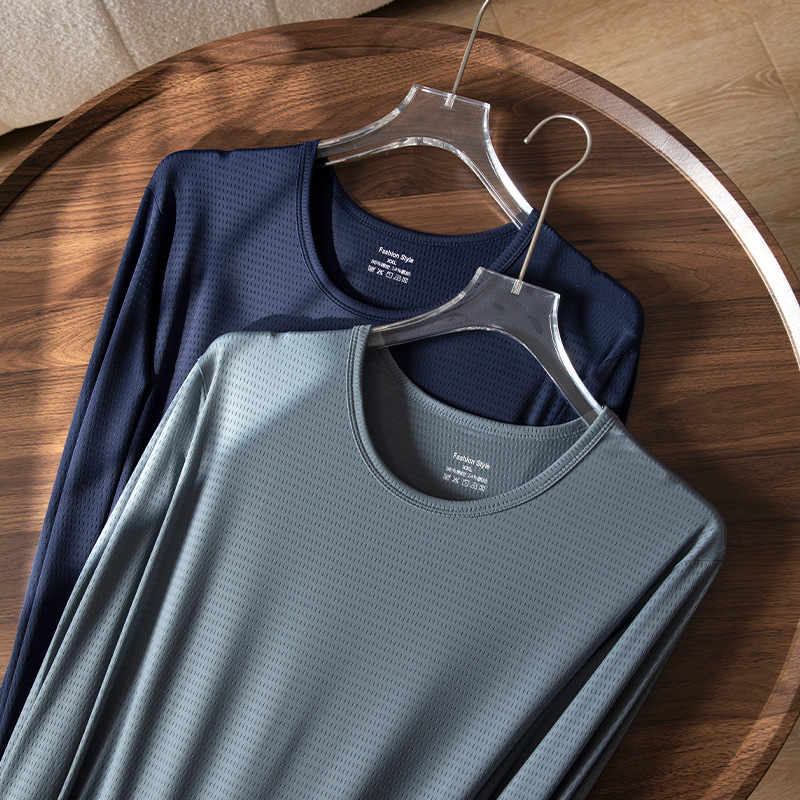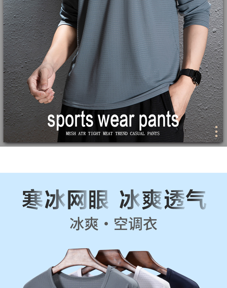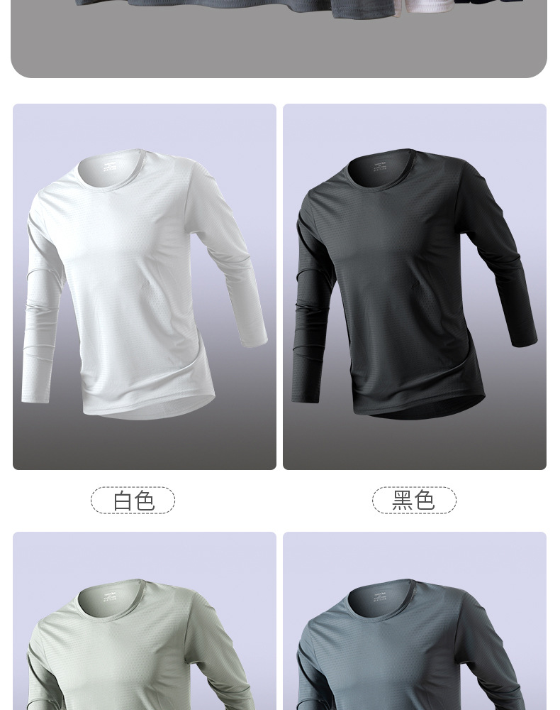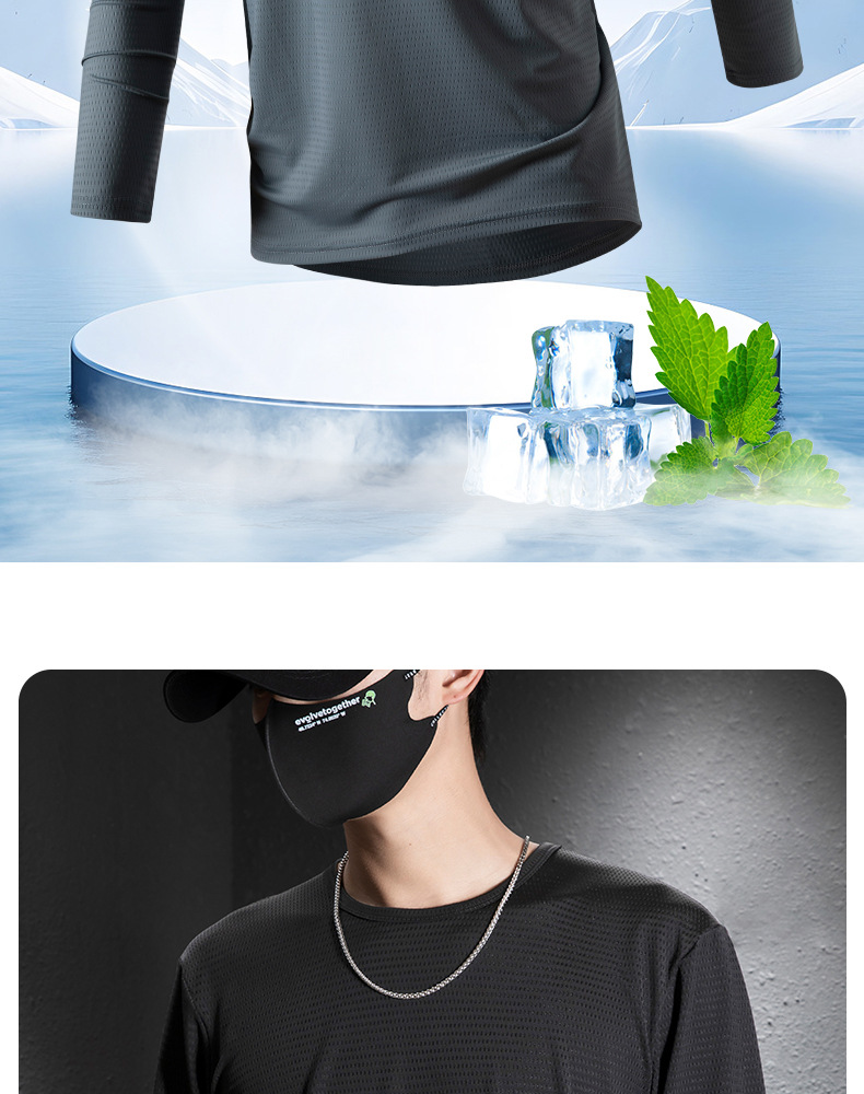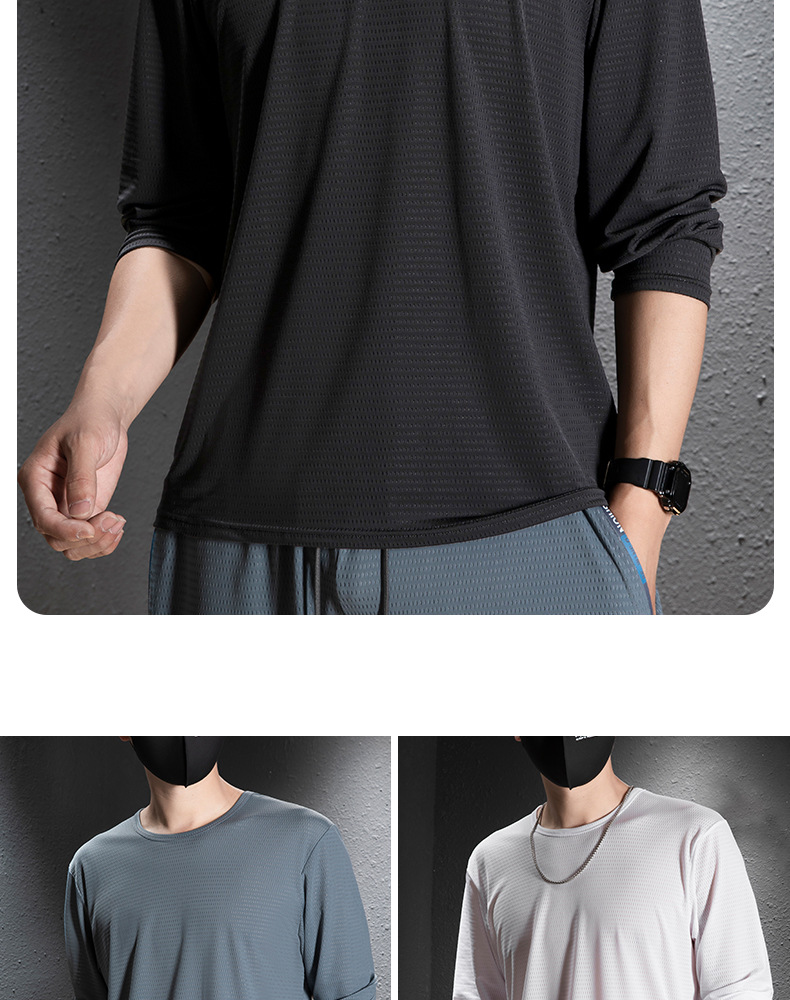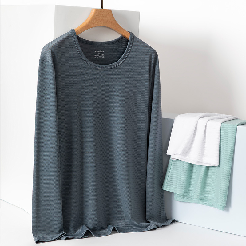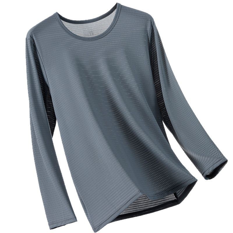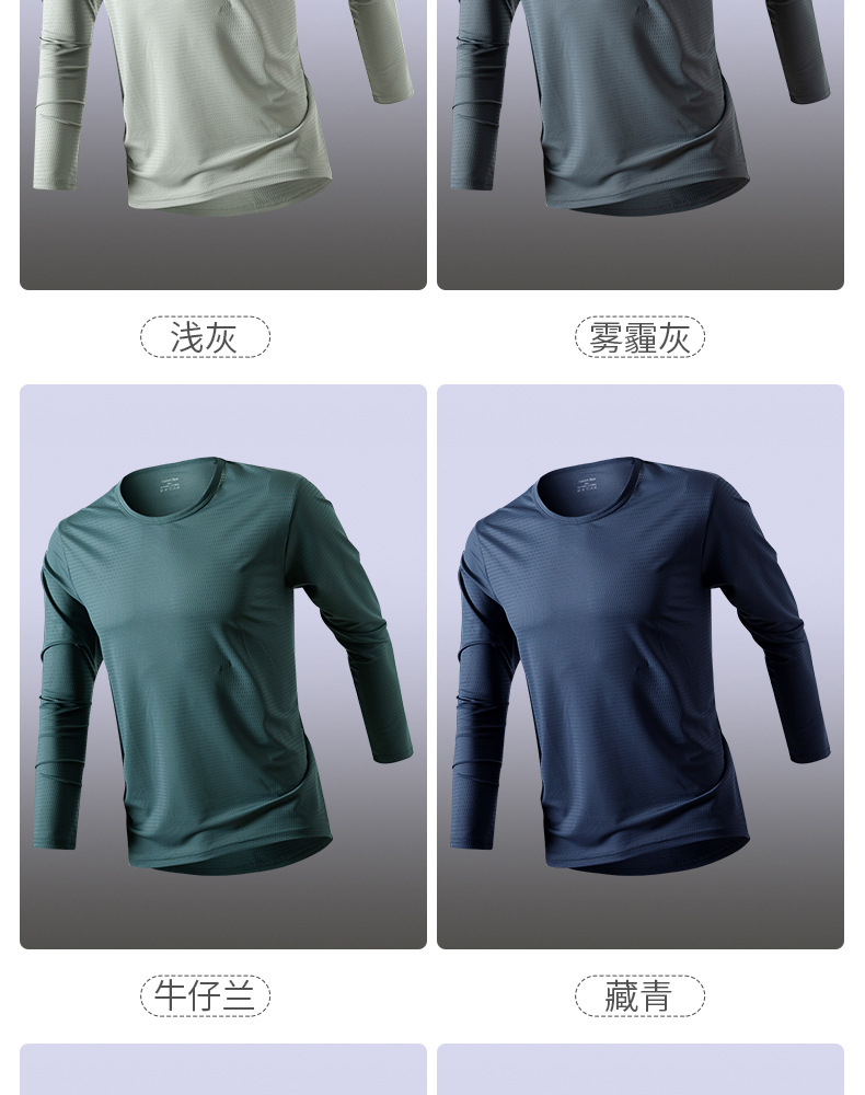 冰丝长袖t恤男夏季透气速干空调衣冰感防晒工地户外打底衫薄代发