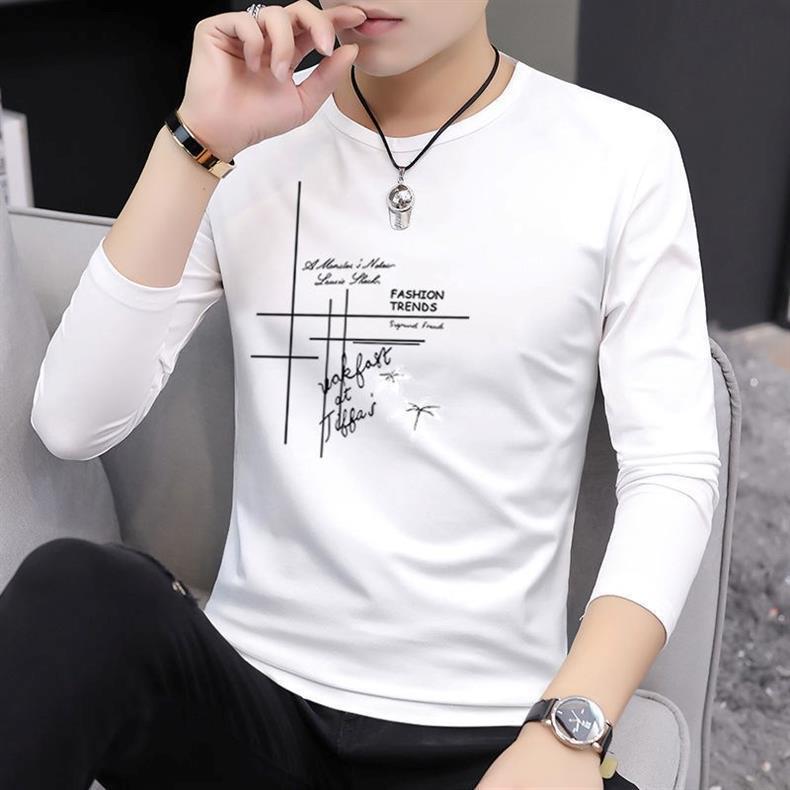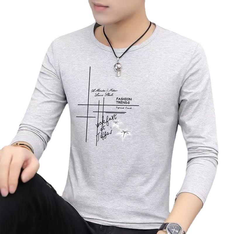 批发圆领男士长袖t恤潮牌春秋季上衣服男修身潮流体桖内搭打底衫
