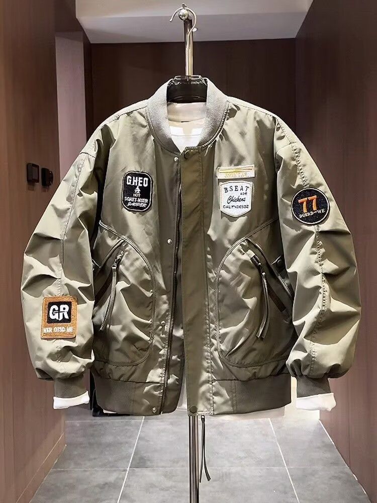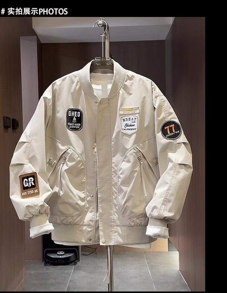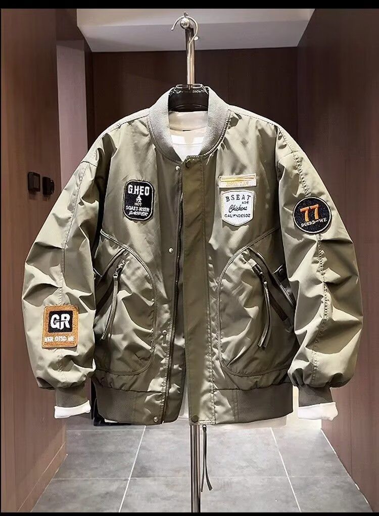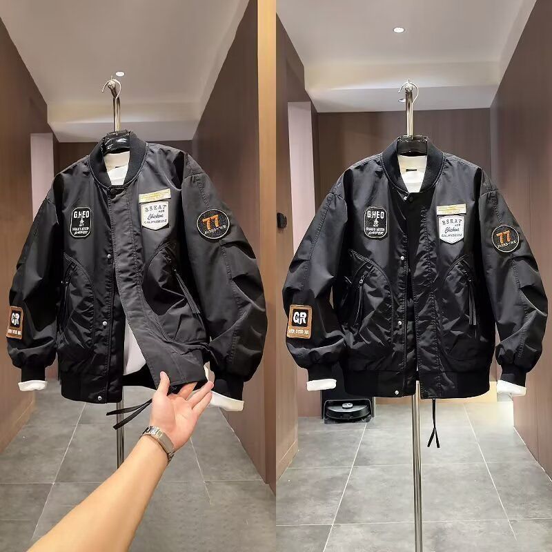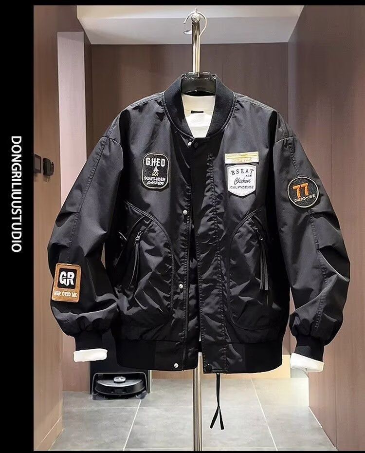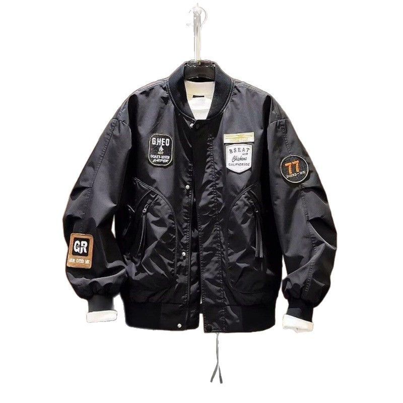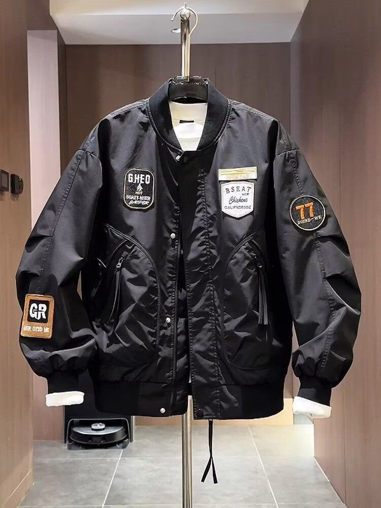 加大码潮牌美式贴标重工刺绣夹克男士秋季新款宽松棒球服外套上衣