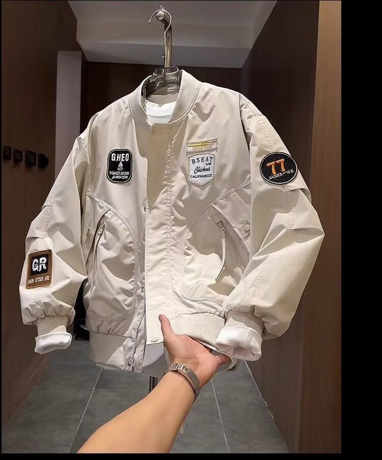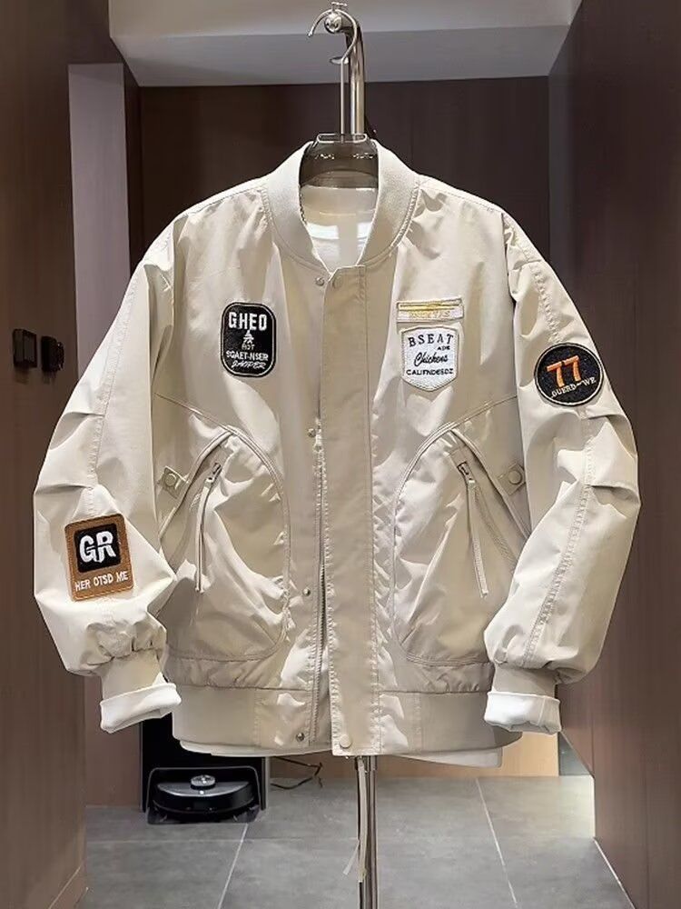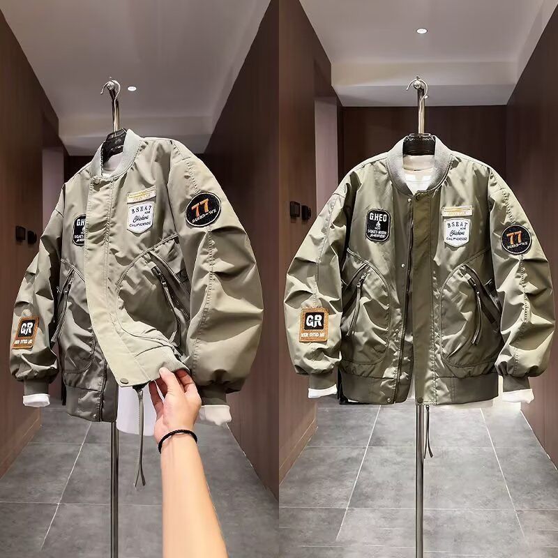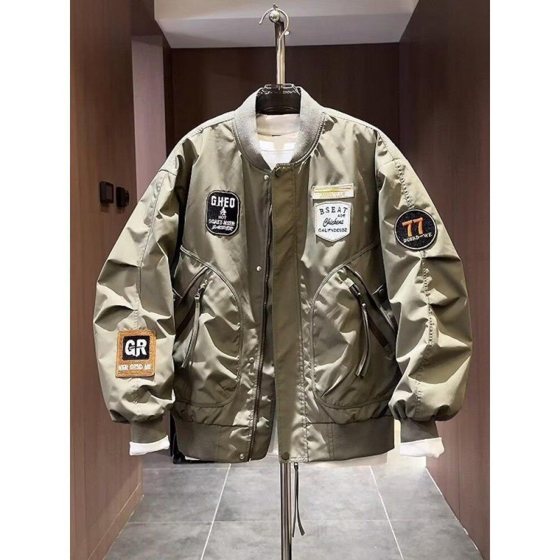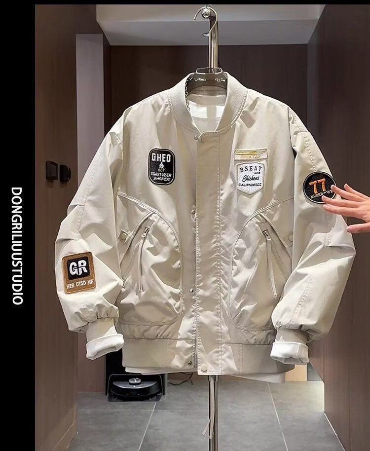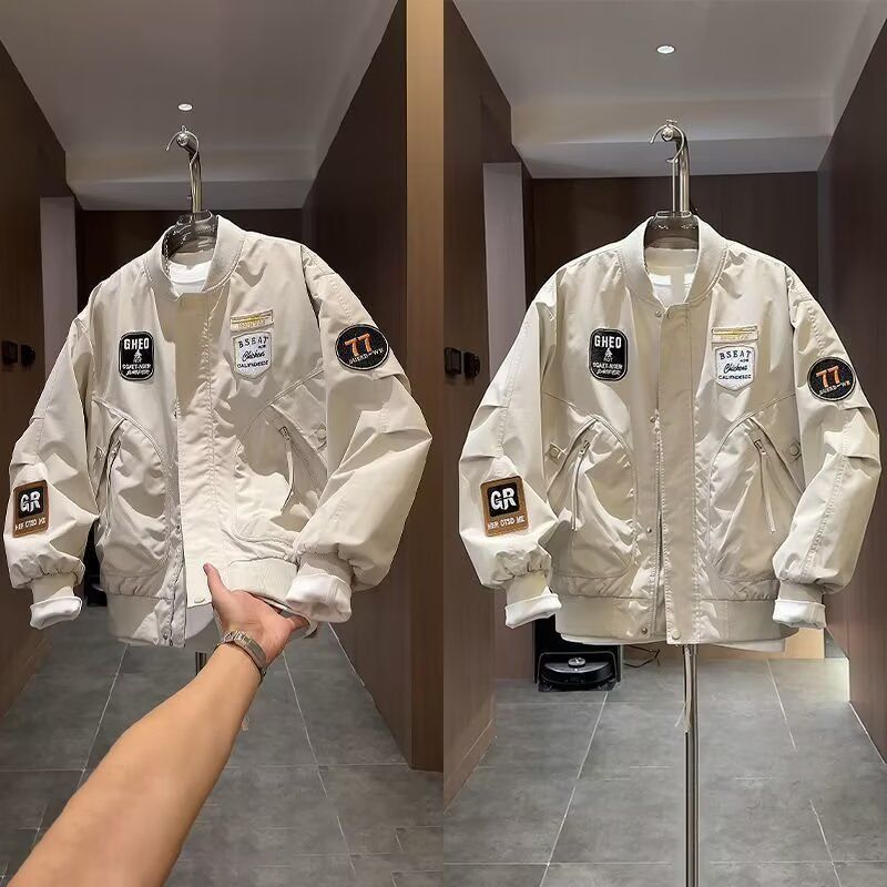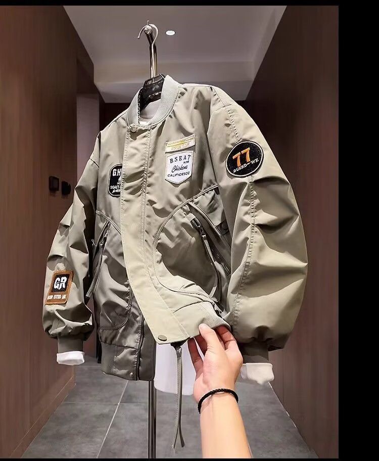 加大码潮牌美式贴标重工刺绣夹克男士秋季新款宽松棒球服外套上衣