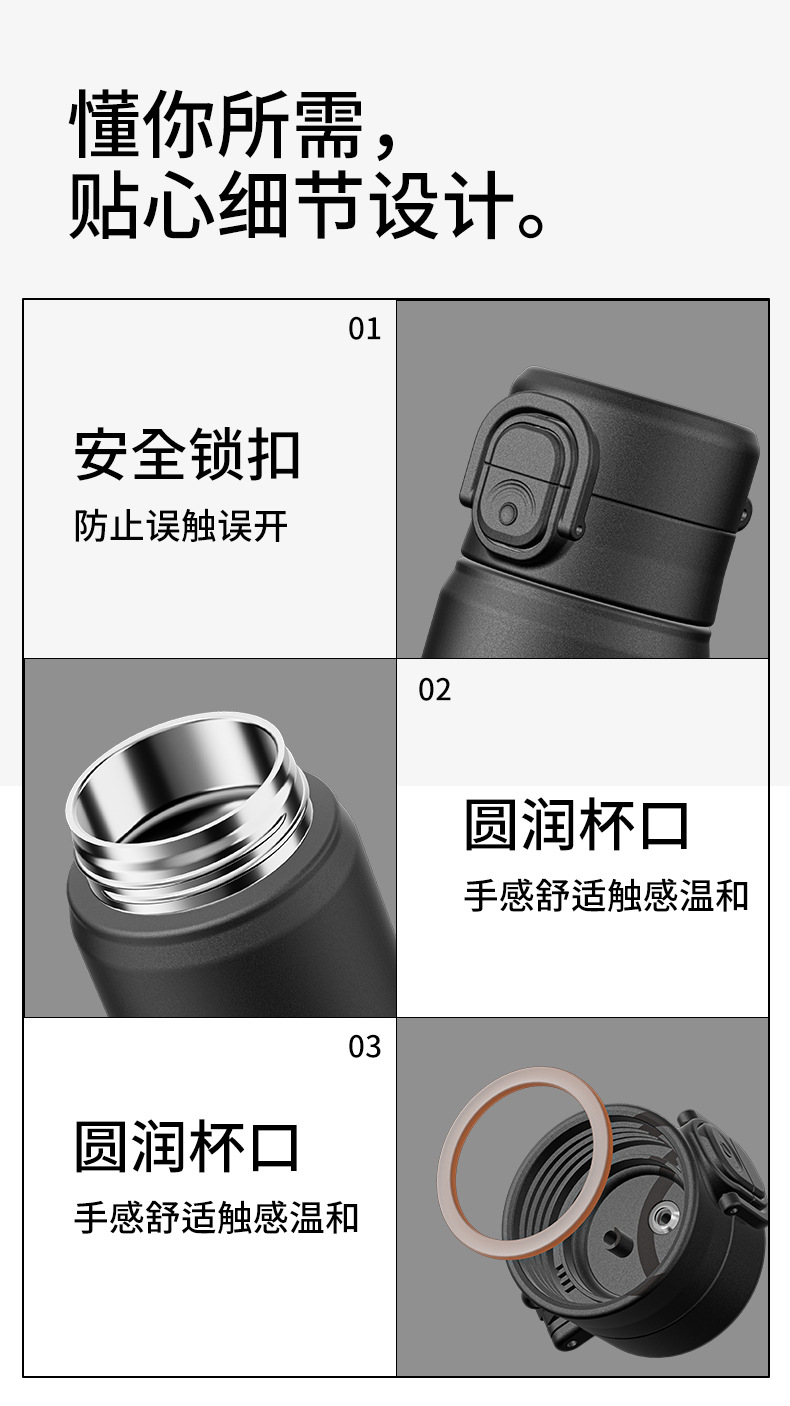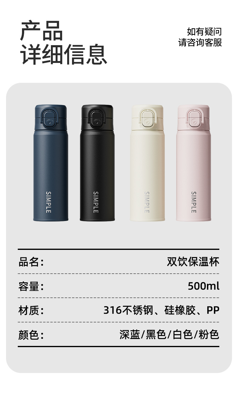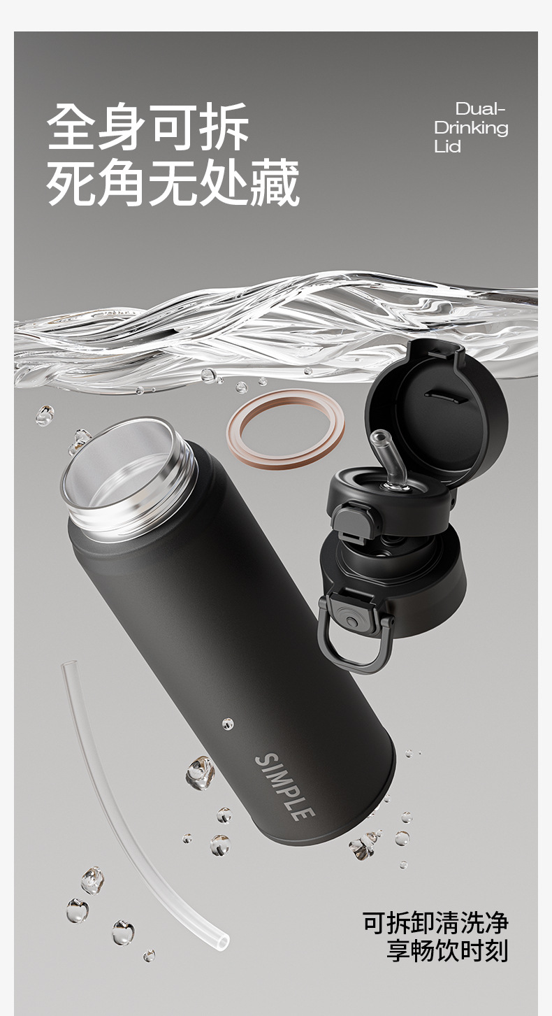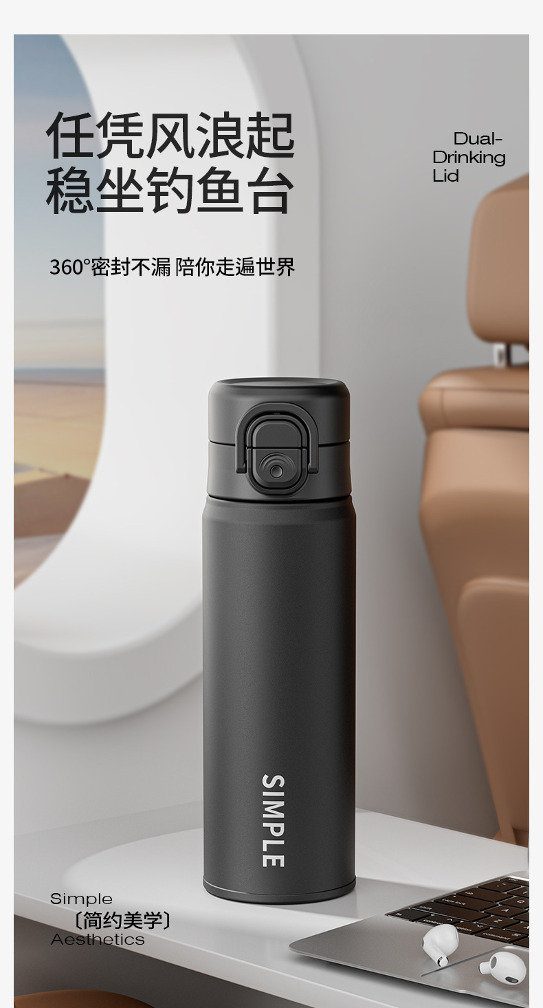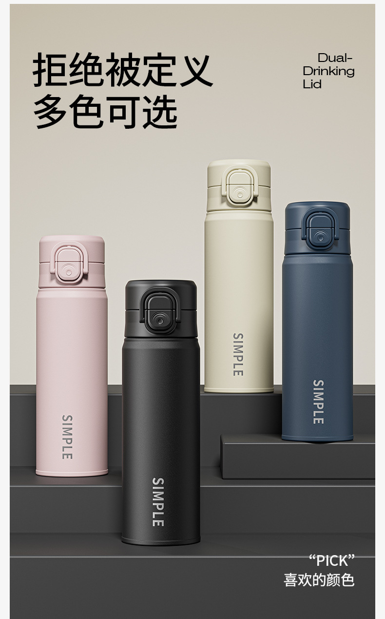 时尚简约一杯双饮高颜值保温杯锁扣设计丝印杯身硅胶吸嘴饮水杯