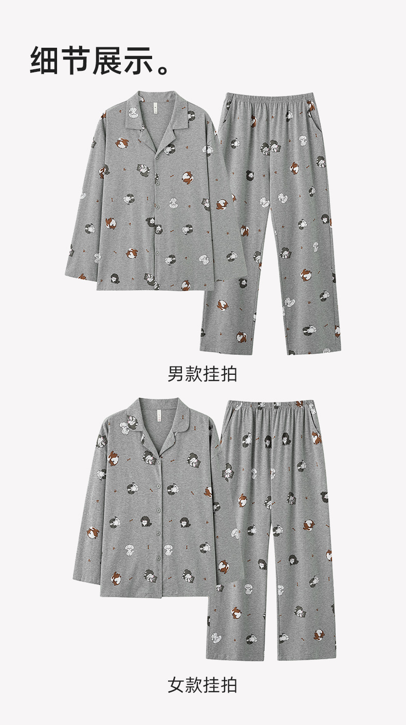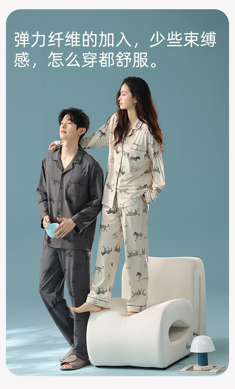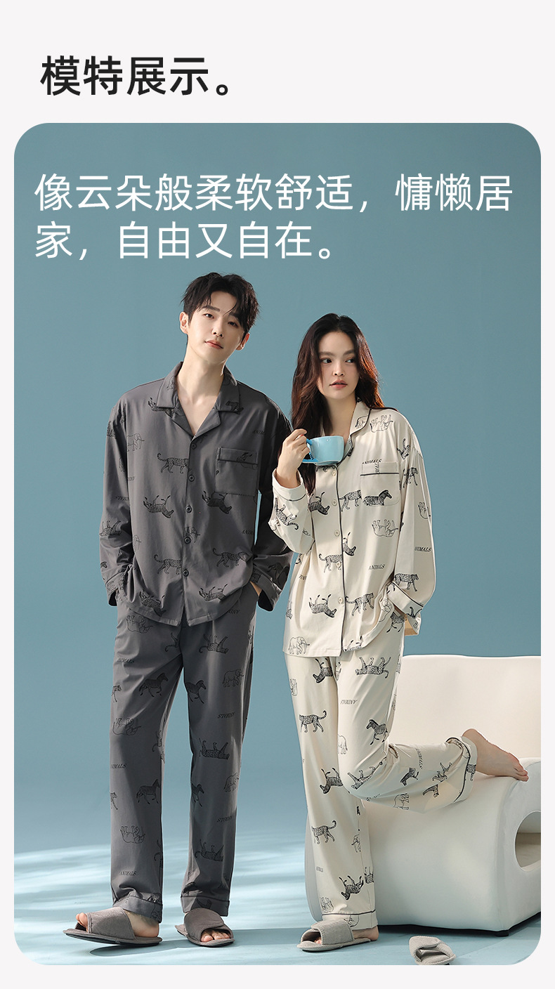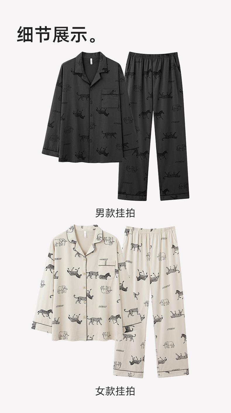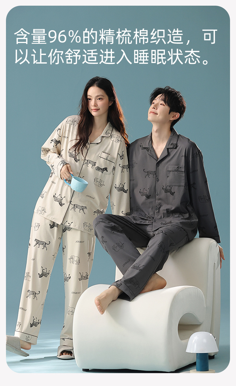 A类纯棉情侣睡衣女秋冬季动物高级男士家居服套装