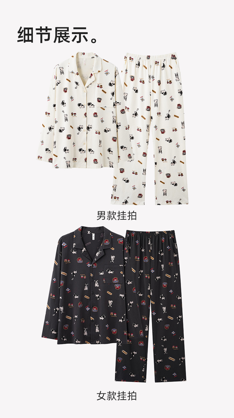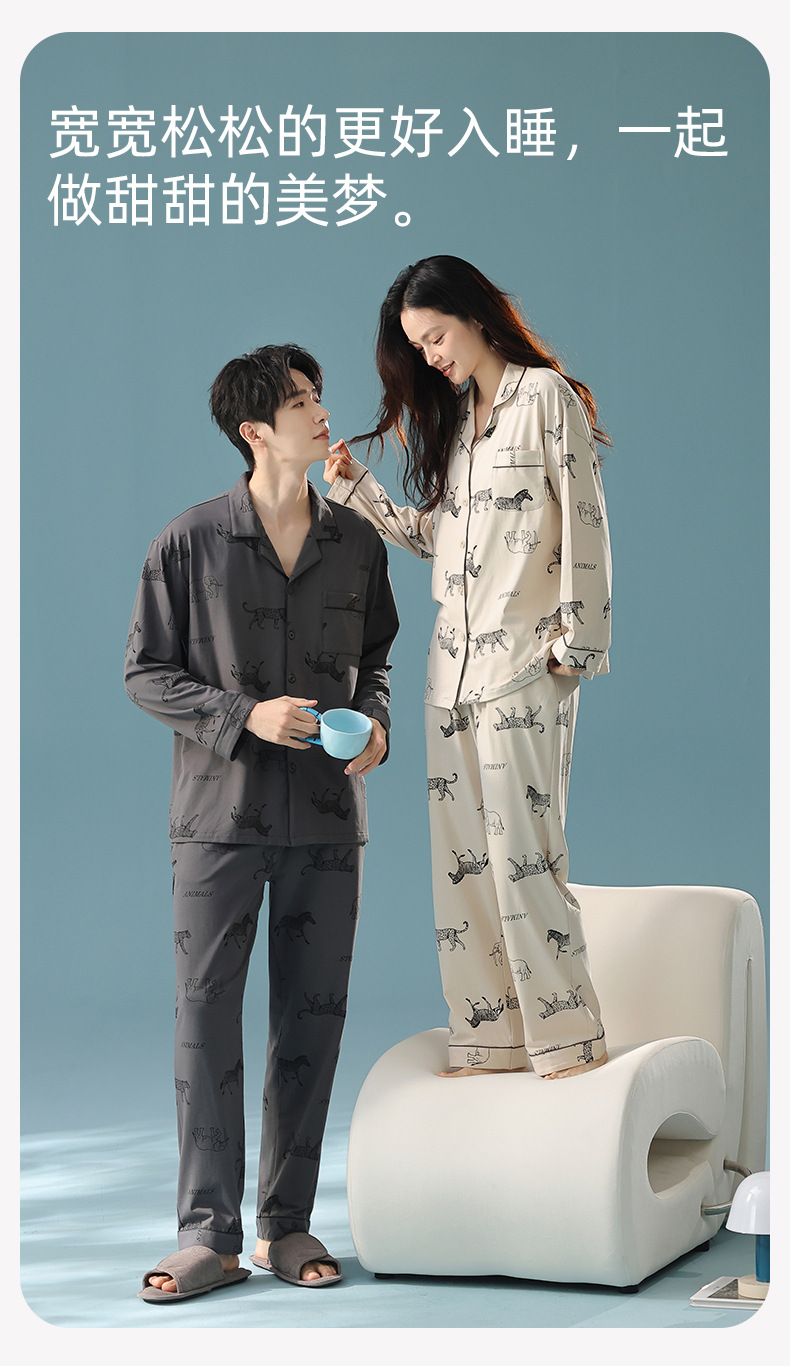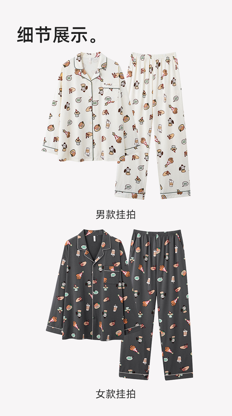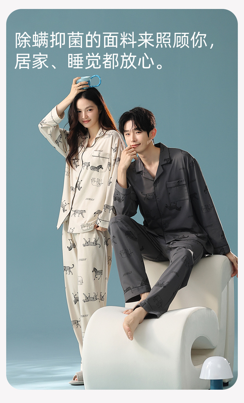 A类纯棉情侣睡衣女秋冬季动物高级男士家居服套装