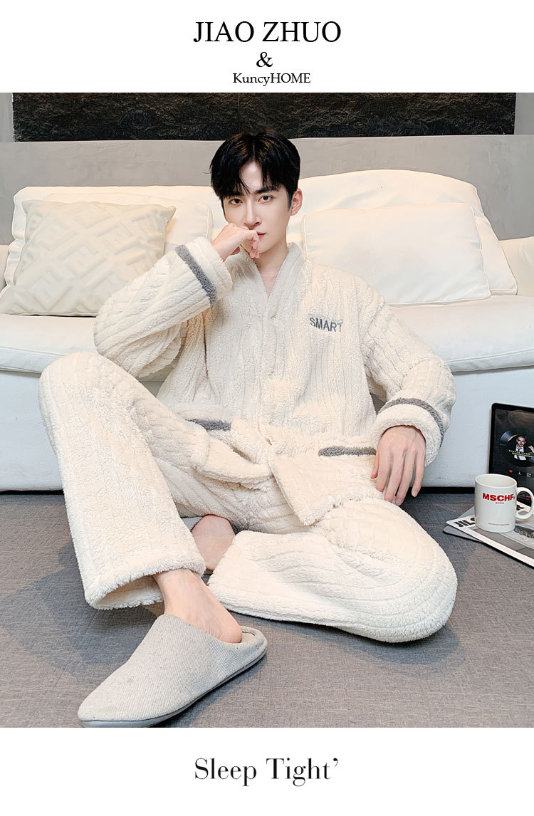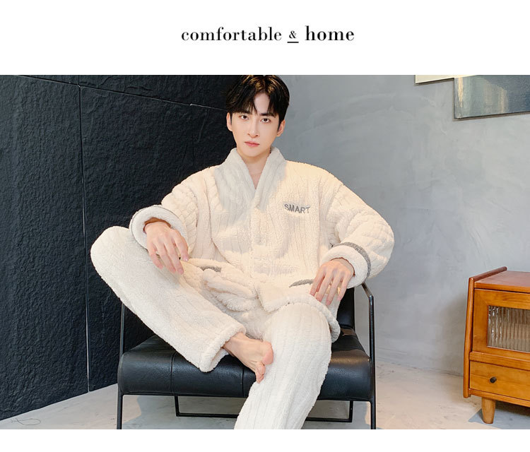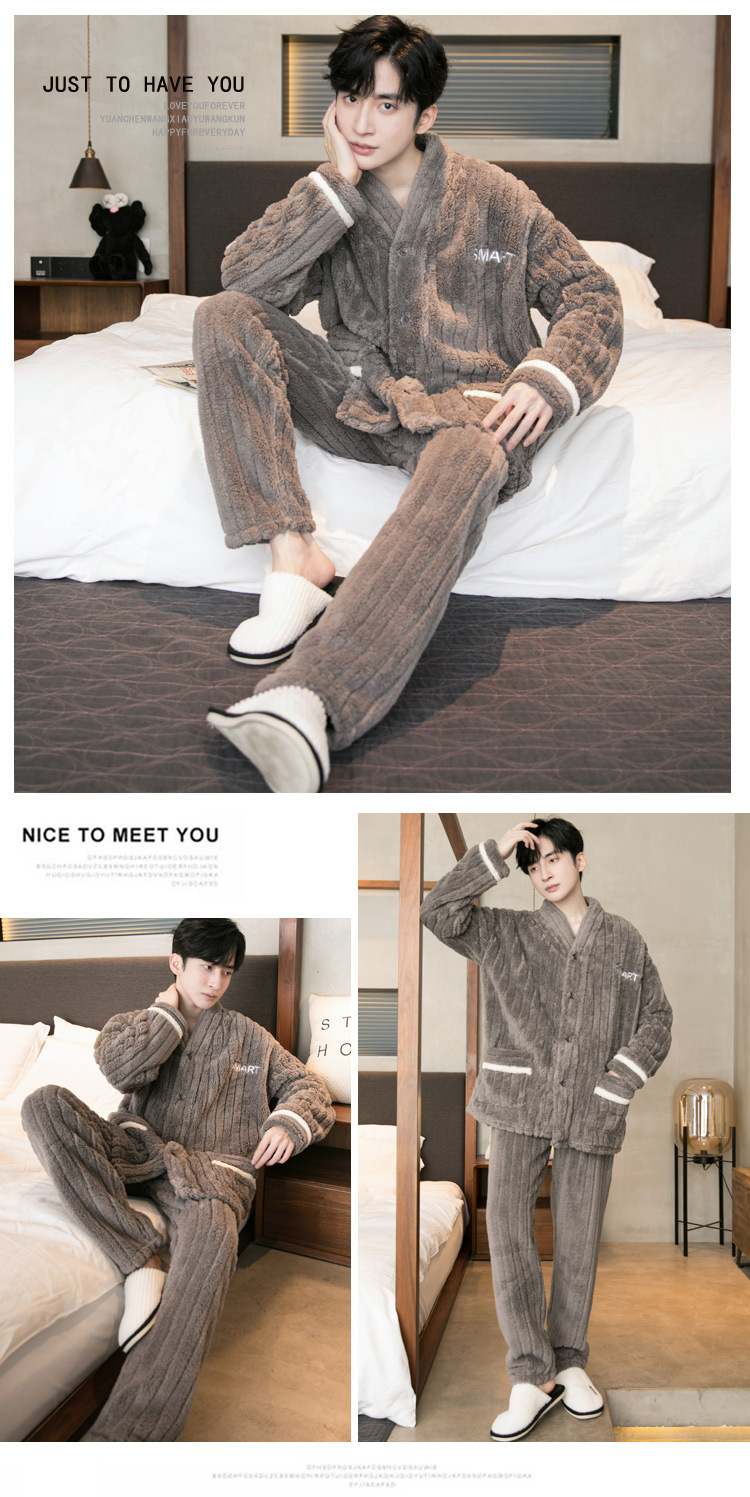 秋冬季珊瑚绒睡衣男士加厚加绒法兰绒保暖大码青年家居服新款套装