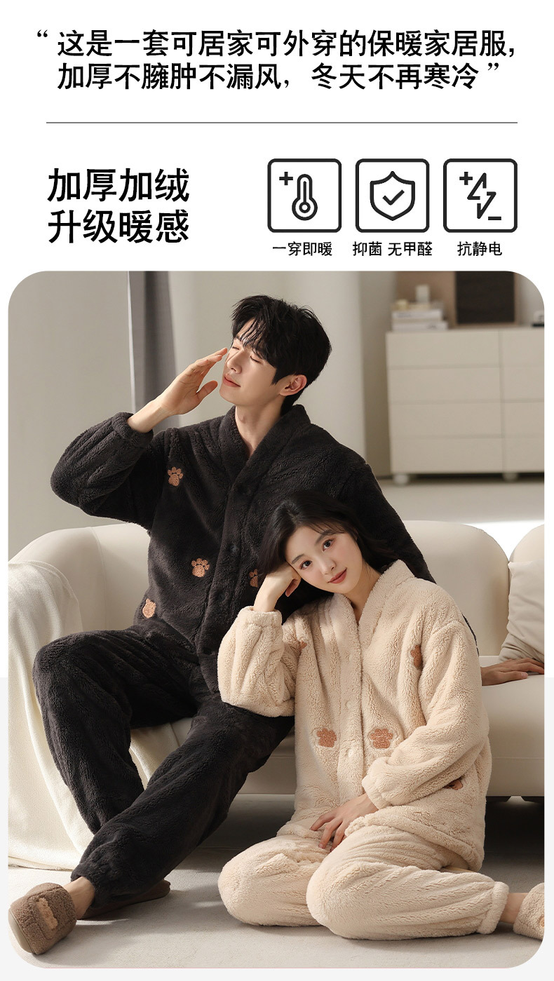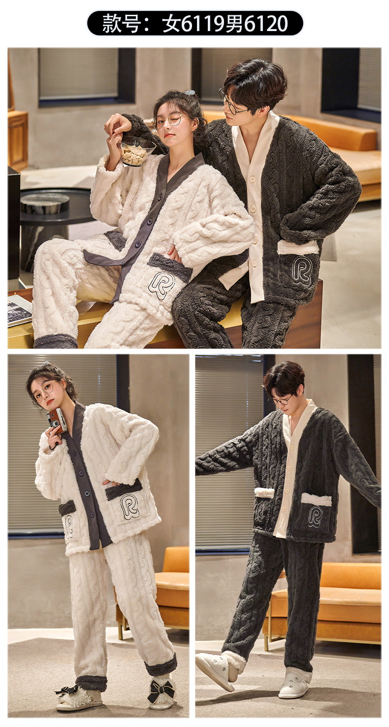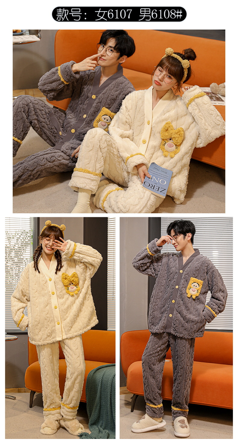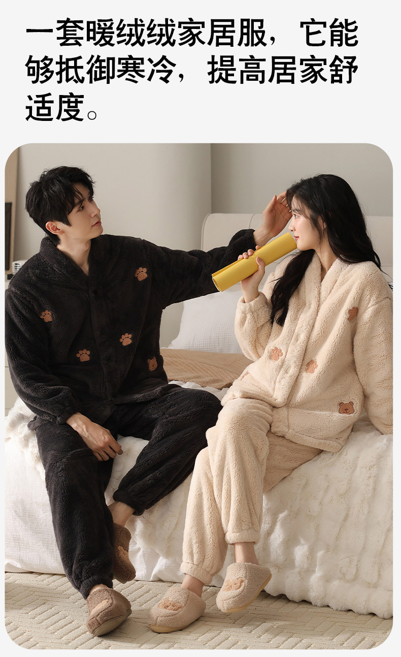 情侣睡衣秋冬季珊瑚绒一男一女加绒加厚法兰绒冬款开衫家居服套装