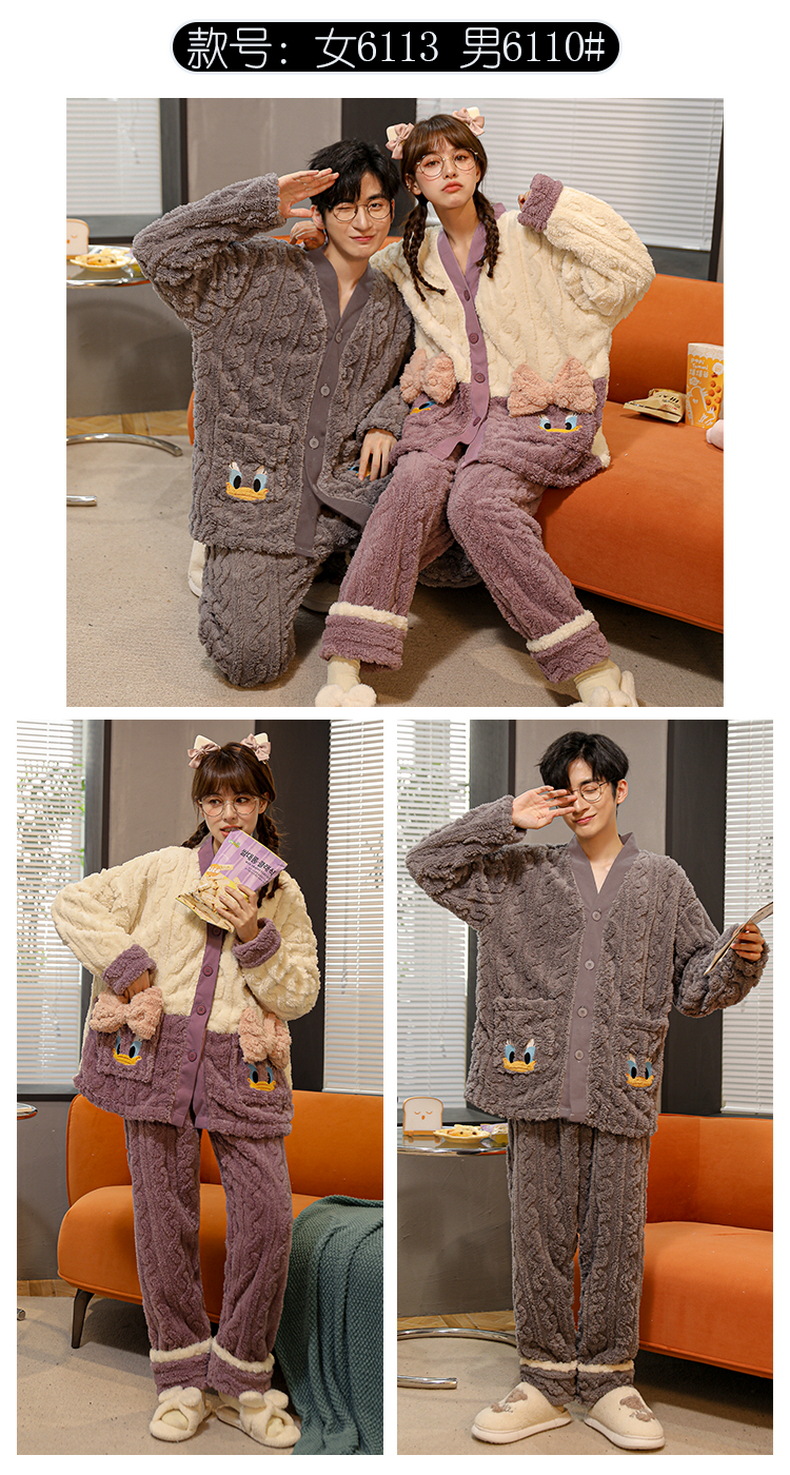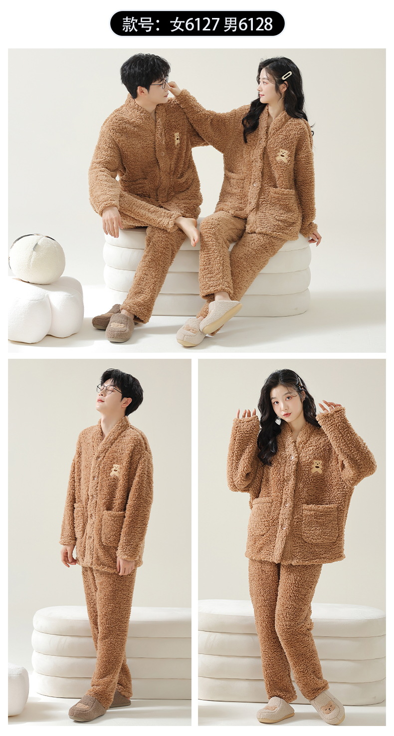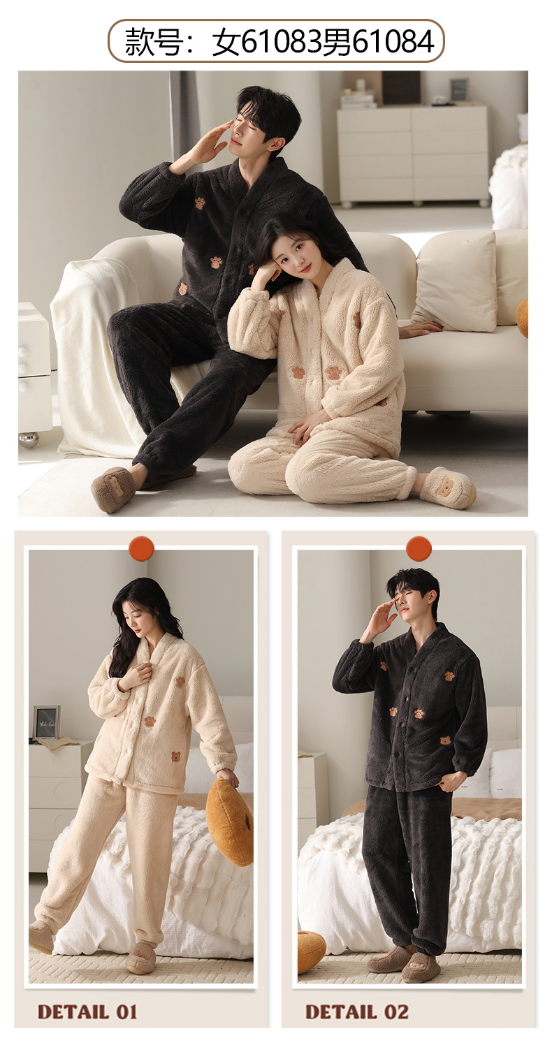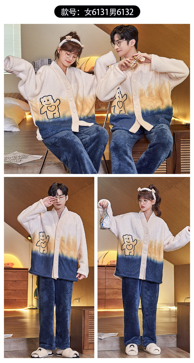 情侣睡衣秋冬季珊瑚绒一男一女加绒加厚法兰绒冬款开衫家居服套装