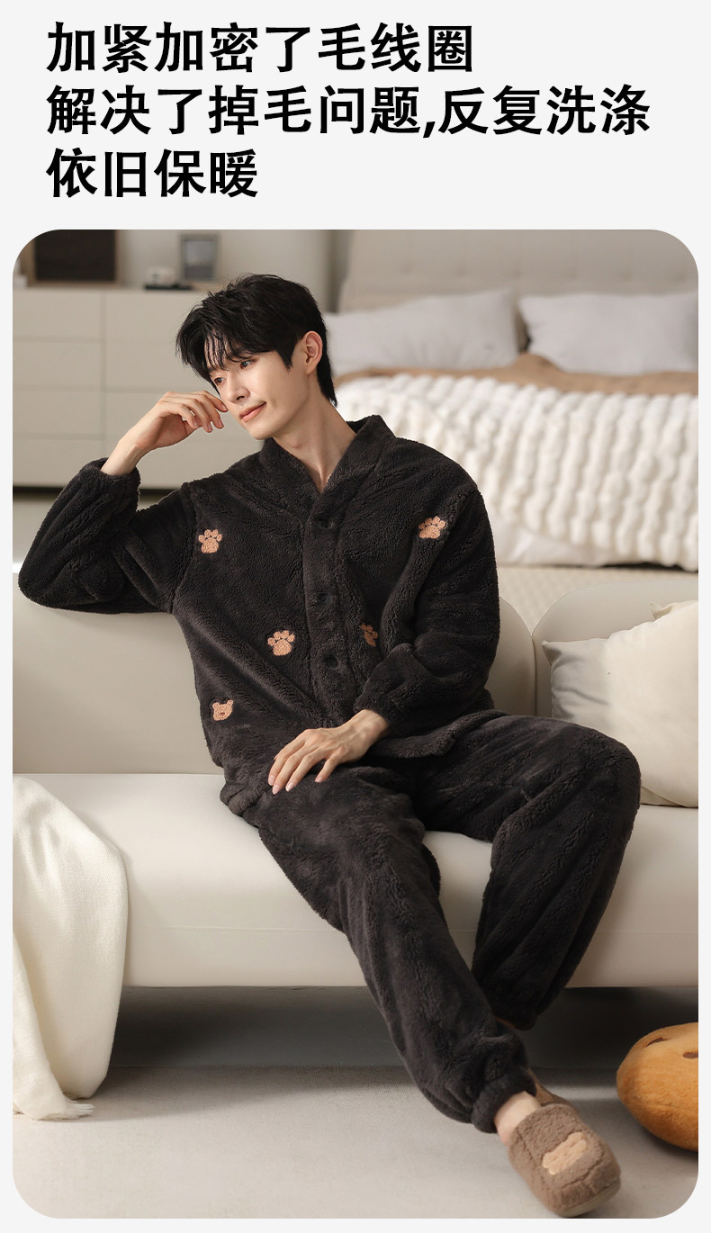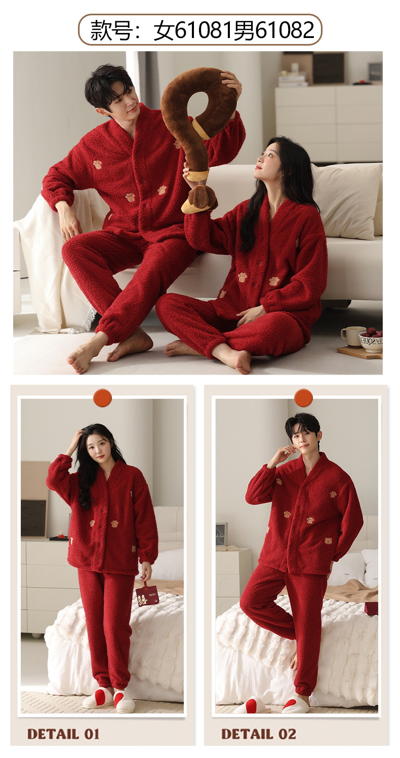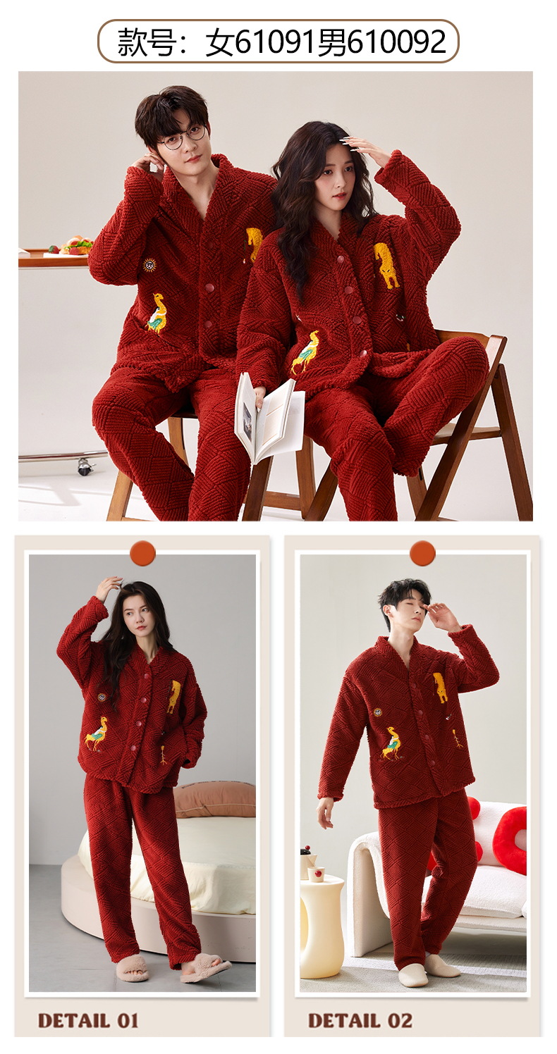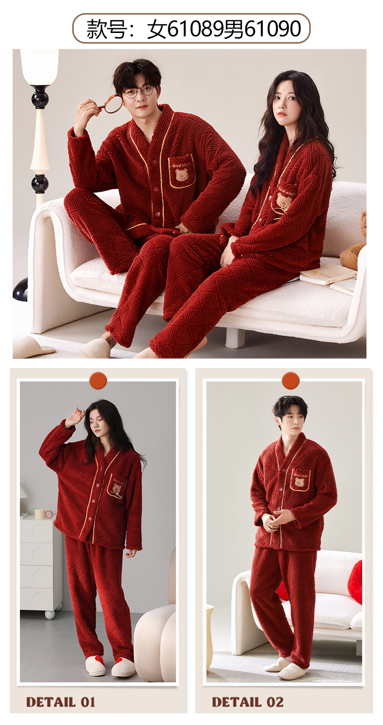 情侣睡衣秋冬季珊瑚绒一男一女加绒加厚法兰绒冬款开衫家居服套装