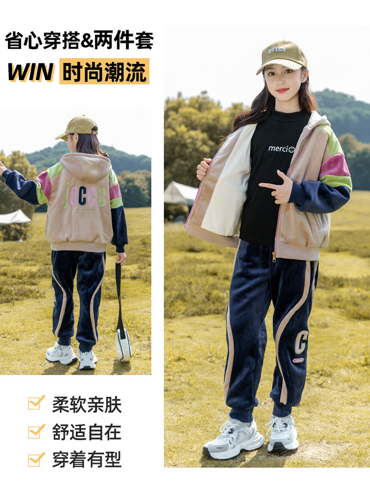 童装女童冬装套装2025新款儿童秋冬季加绒加厚女孩运动卫衣套装