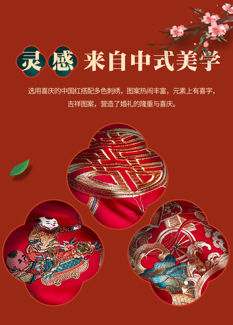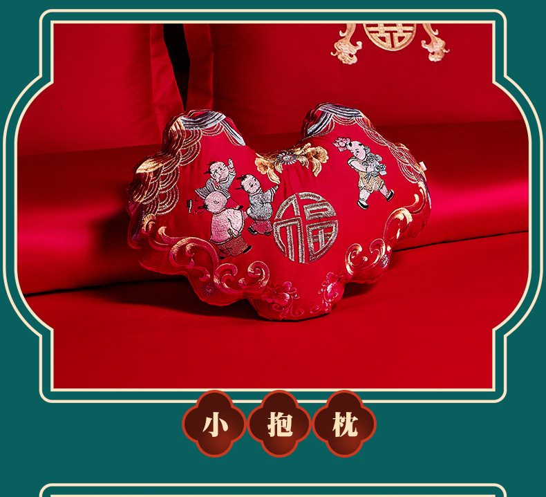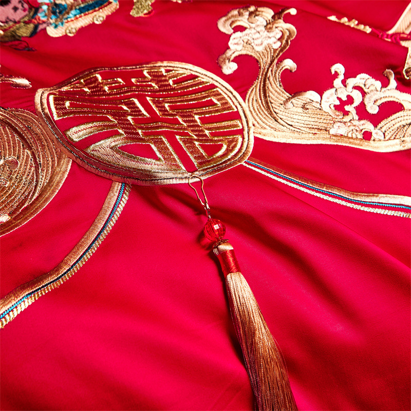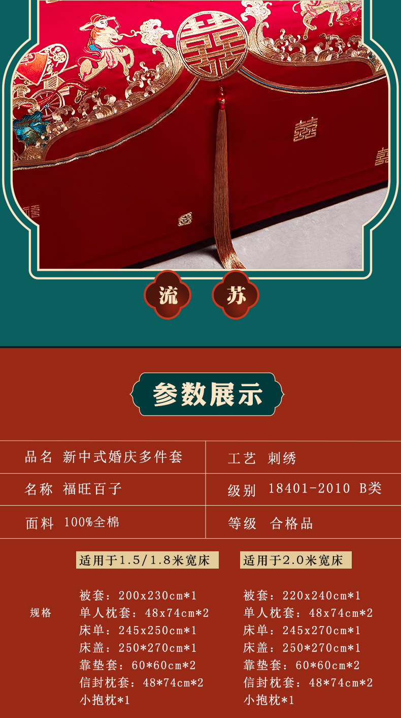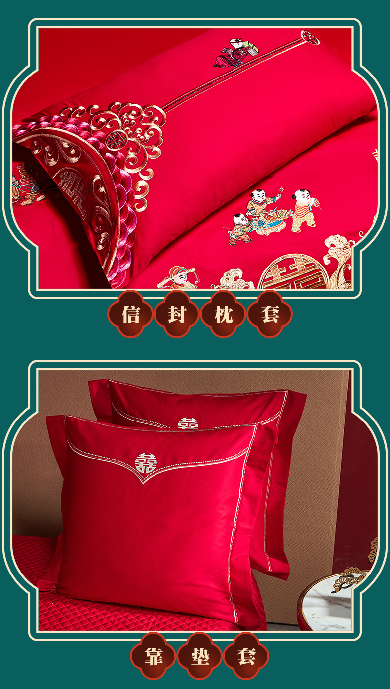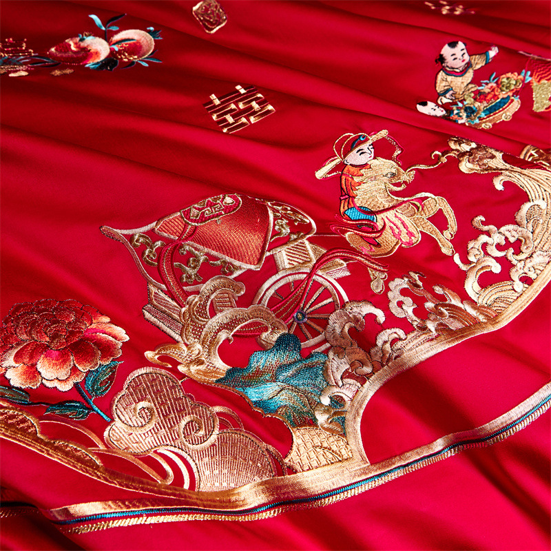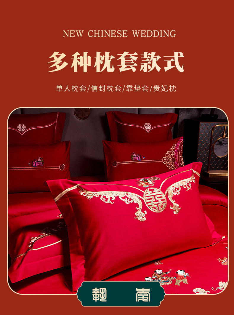 全棉长绒棉婚庆纯棉刺绣四件套婚嫁大红色喜被结婚床上用品十件套