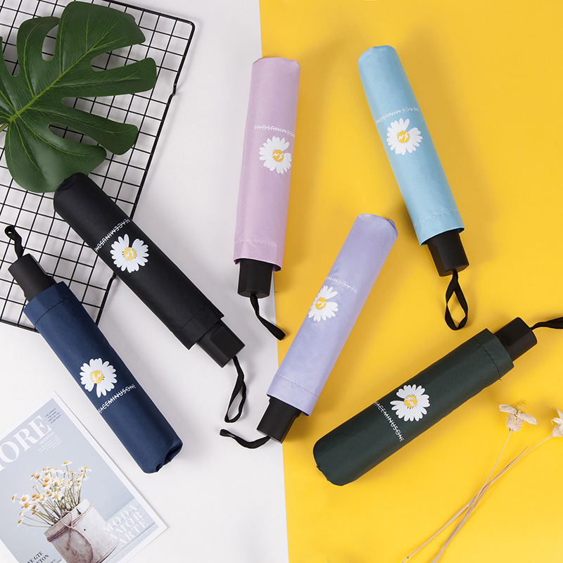 新款清新8k黑胶小雏菊男女晴雨两用折叠学生太阳伞雨伞广告logo