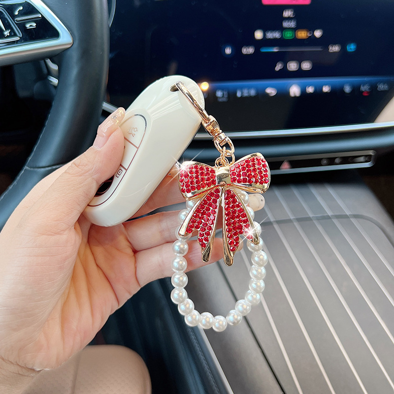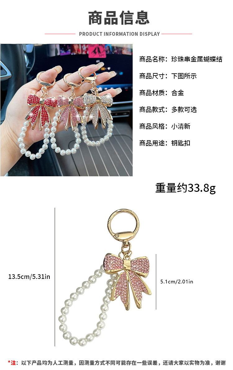 镶钻珍珠蝴蝶结汽车钥匙扣金属包包挂件女士钥匙链圈创意跨境礼品