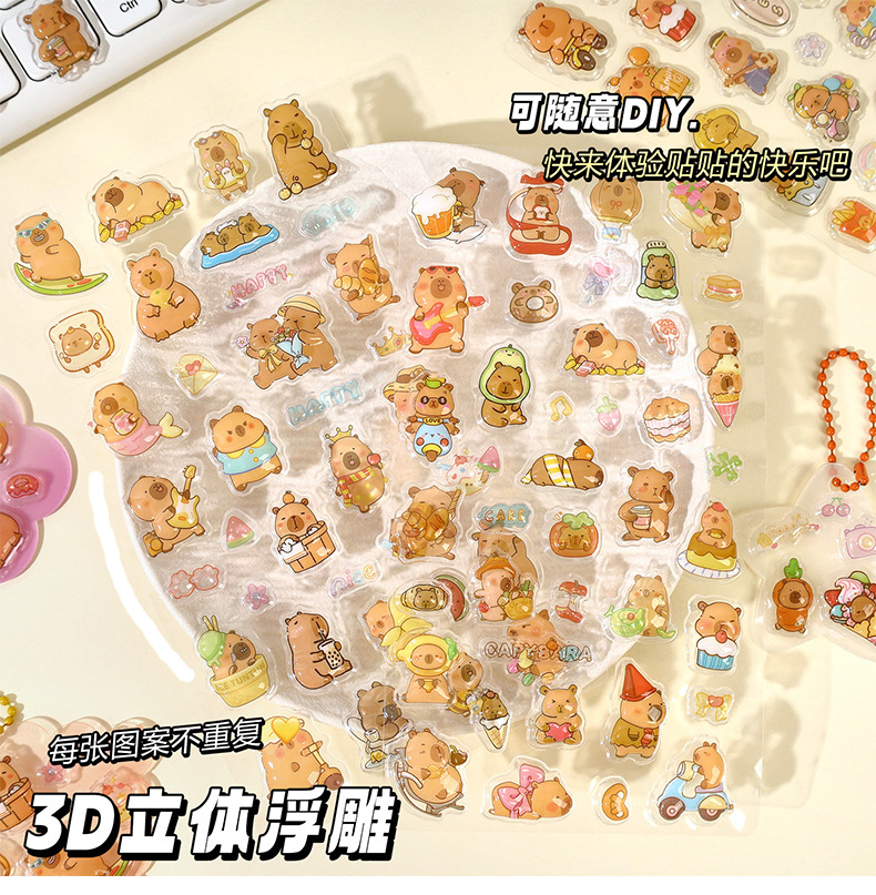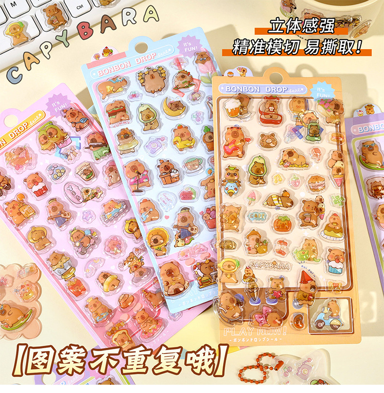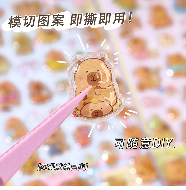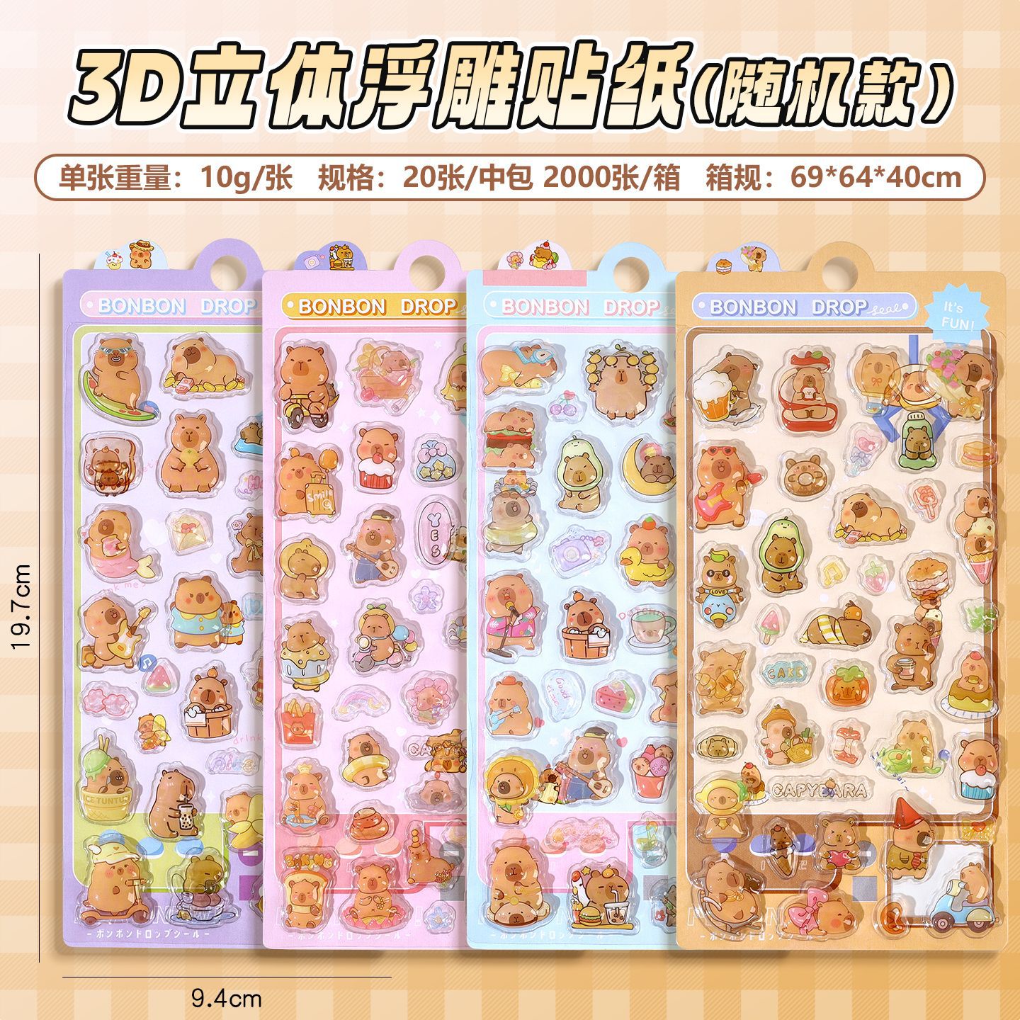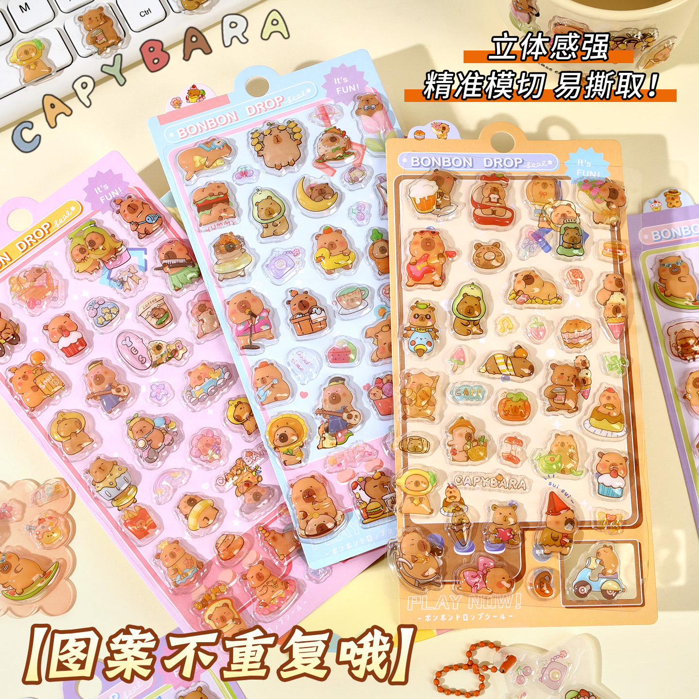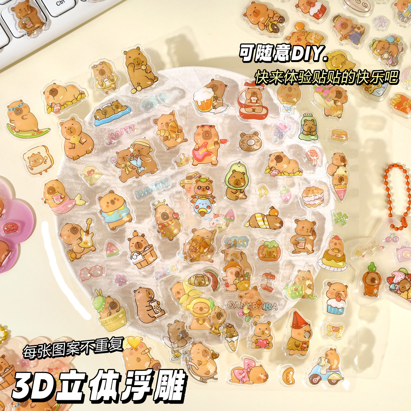 卡皮巴拉立体浮雕贴纸儿童3D可爱水晶泡泡贴卡通趣味装饰贴画批发
