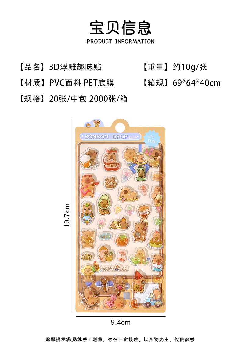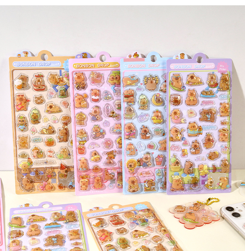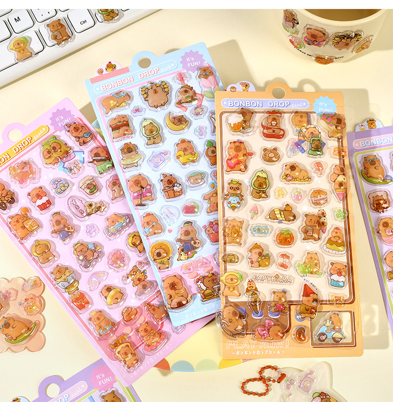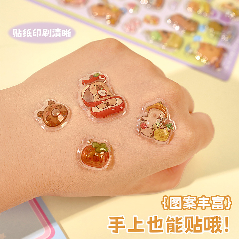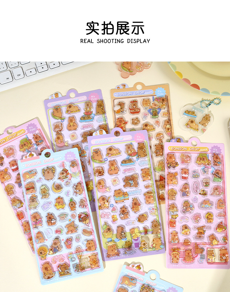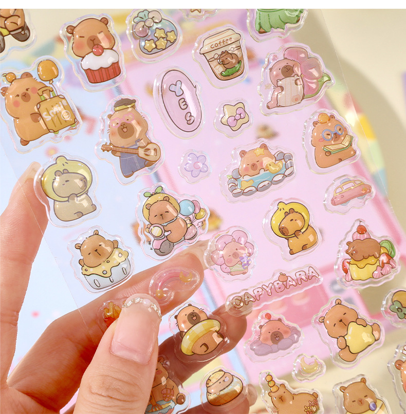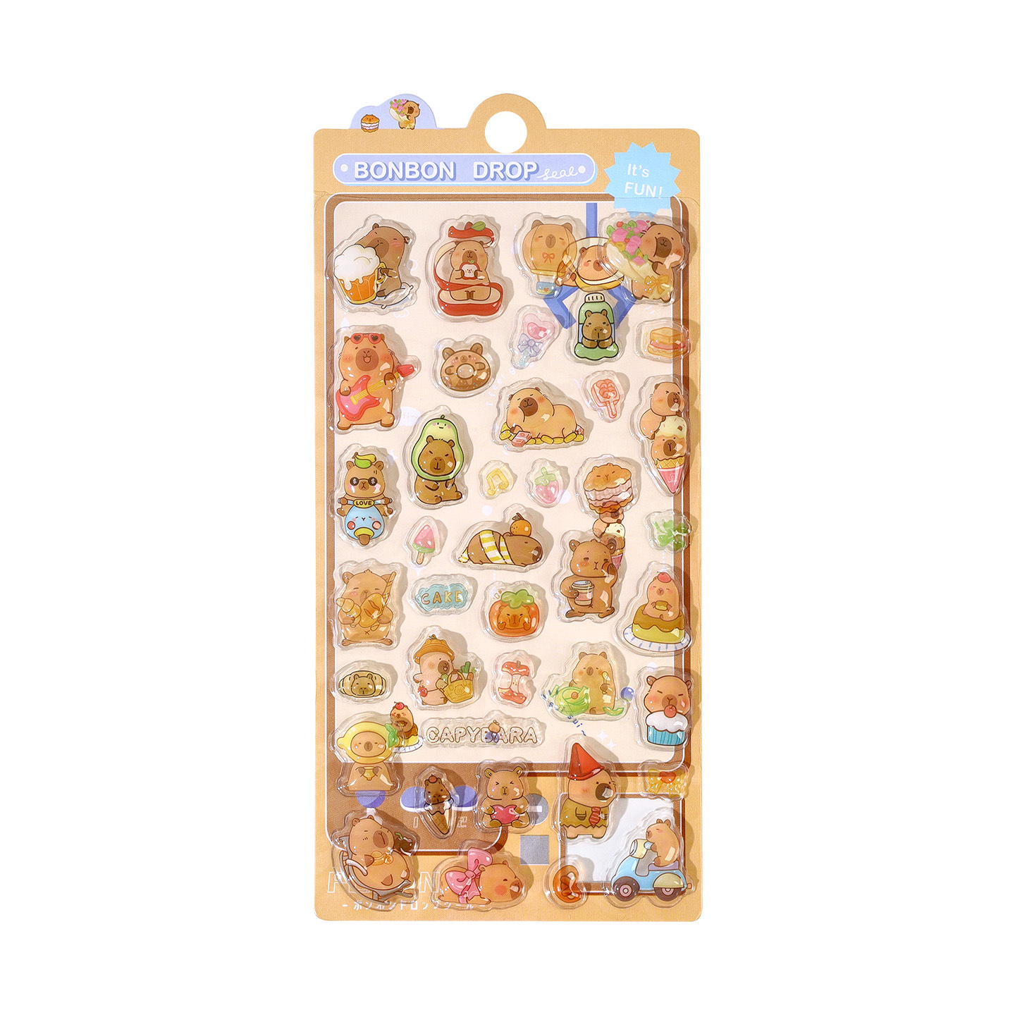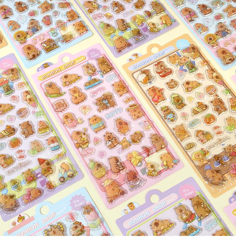 卡皮巴拉立体浮雕贴纸儿童3D可爱水晶泡泡贴卡通趣味装饰贴画批发
