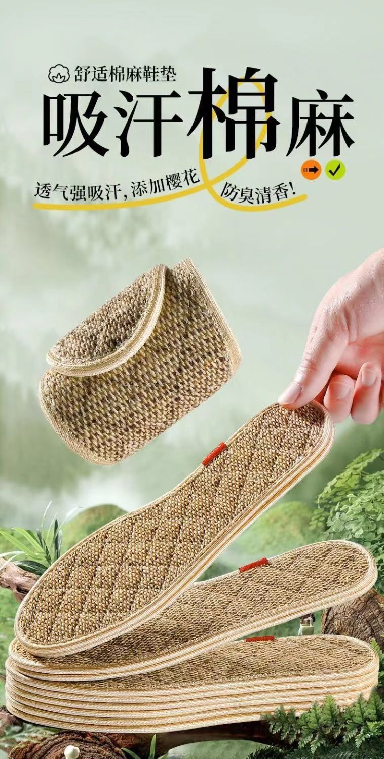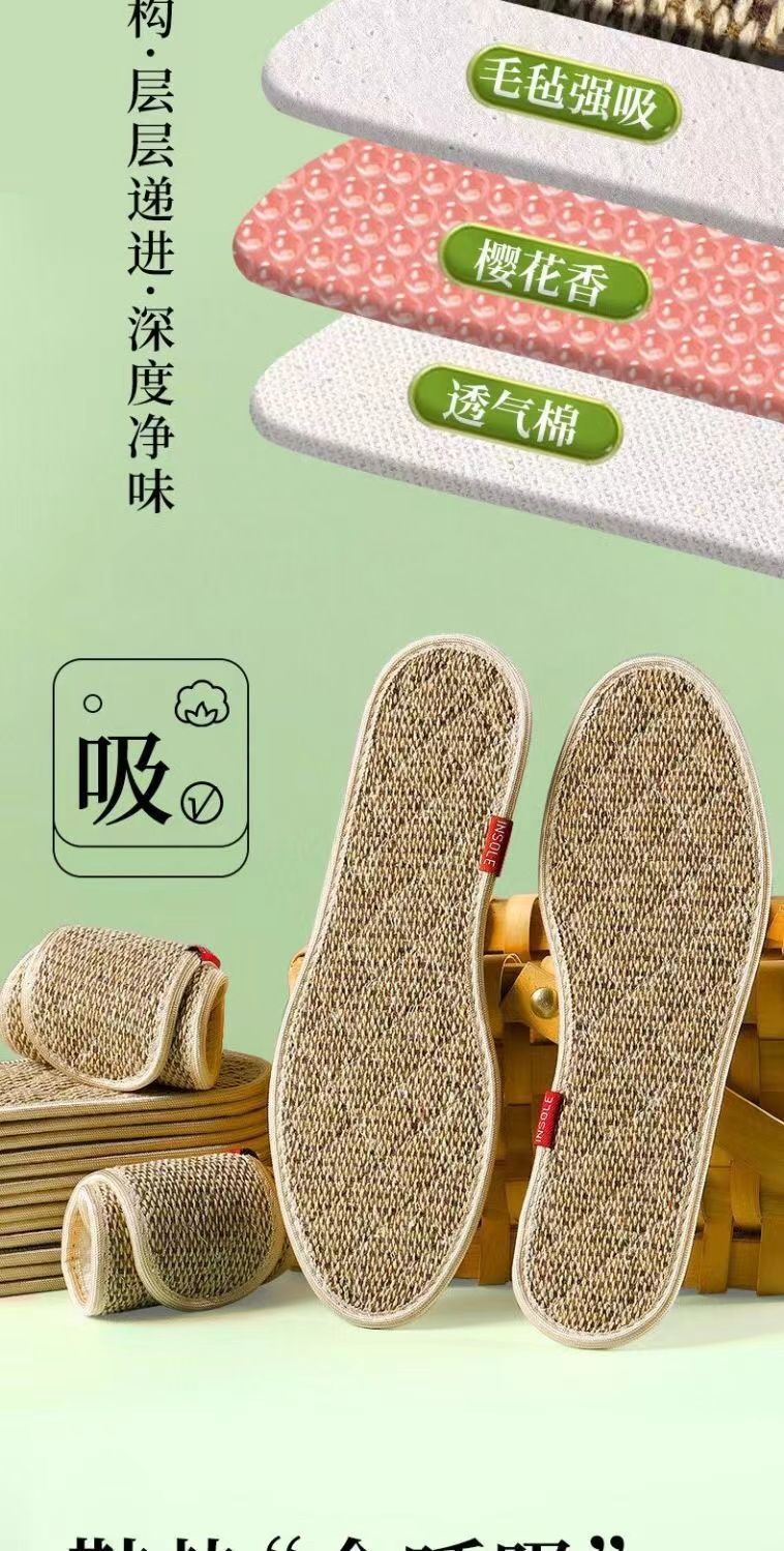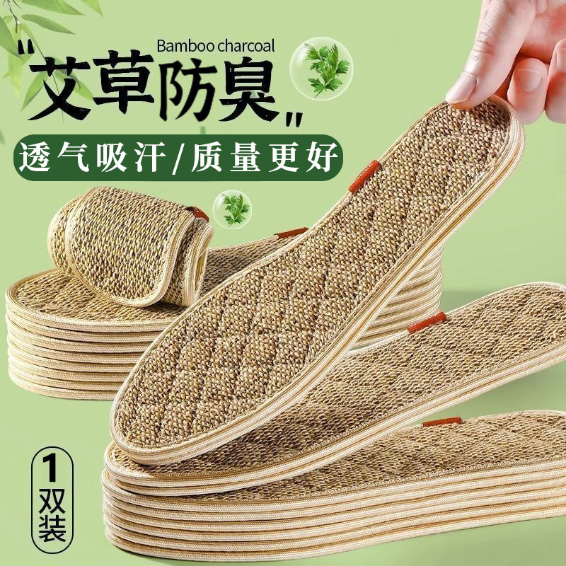 鞋垫男防臭吸汗鞋垫夏季女款艾草鞋垫不粘腻舒适干爽透气棉麻鞋垫
