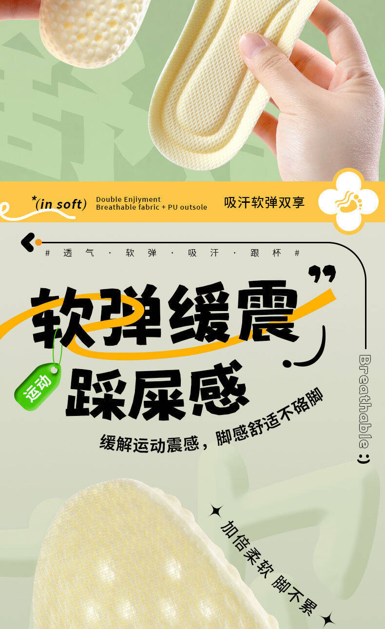踩屎感鞋垫男女吸汗透气减震运动加厚加软防痛久站不累脚军训鞋垫