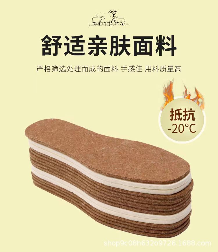 工厂货源羊毛毡鞋垫6mm地摊驼绒鞋垫冬季加厚保暖男女鞋垫透气批