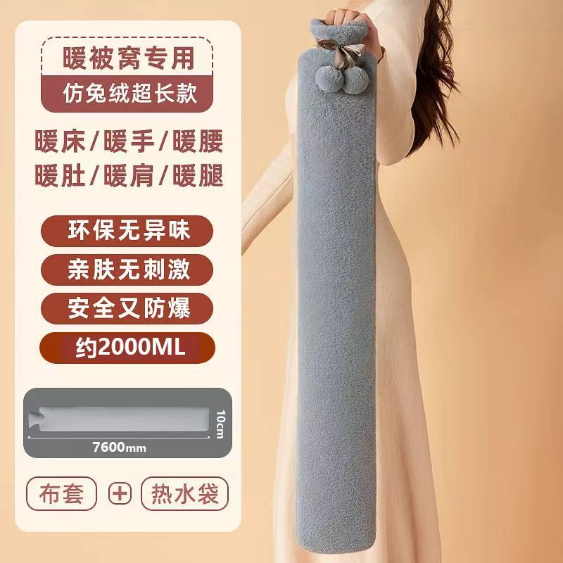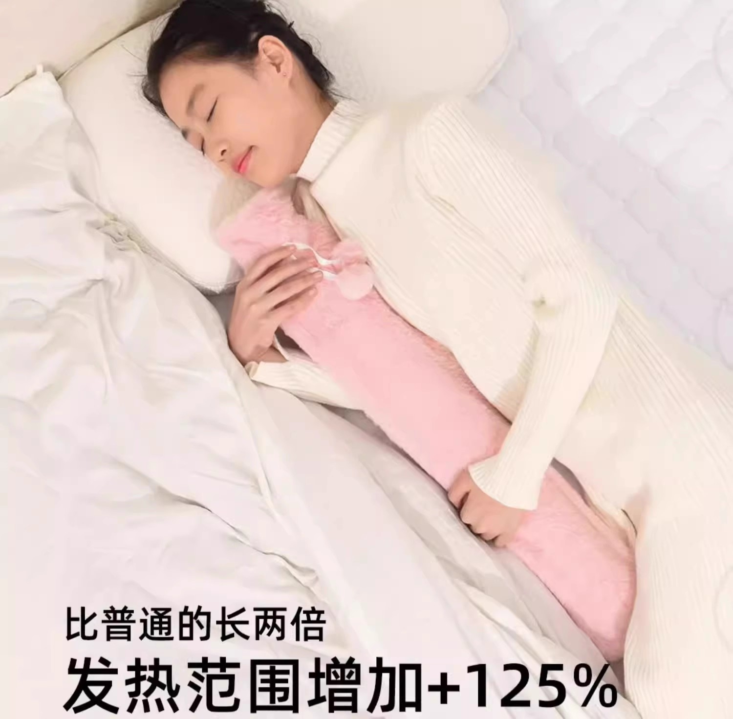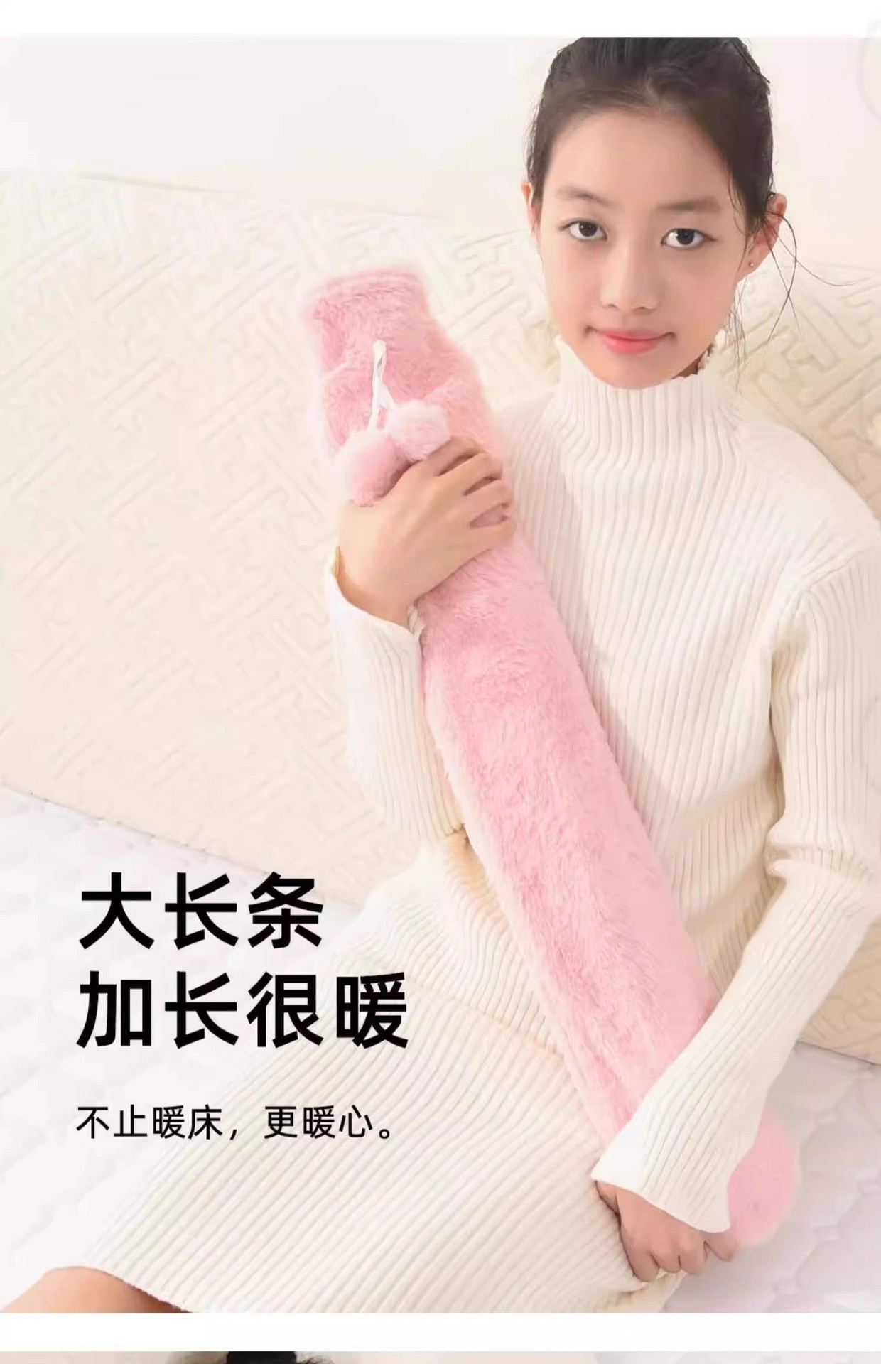 跨境PVC长条热水袋毛绒超长大号暖手水袋防爆敷肚子学生暖床暖身