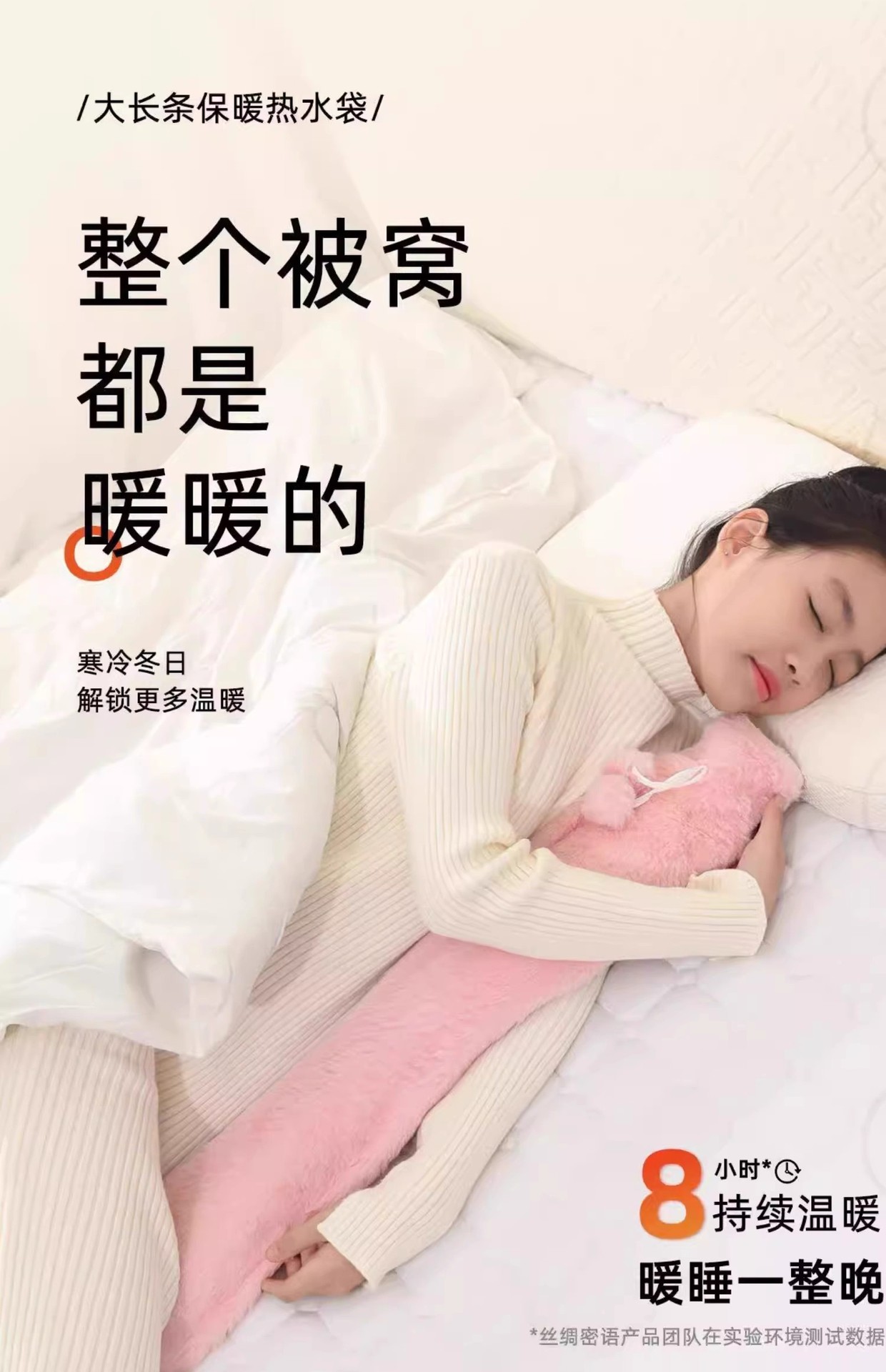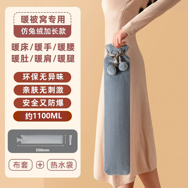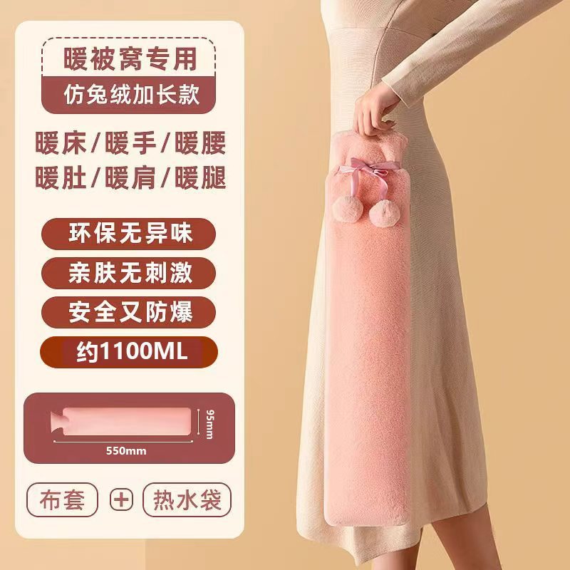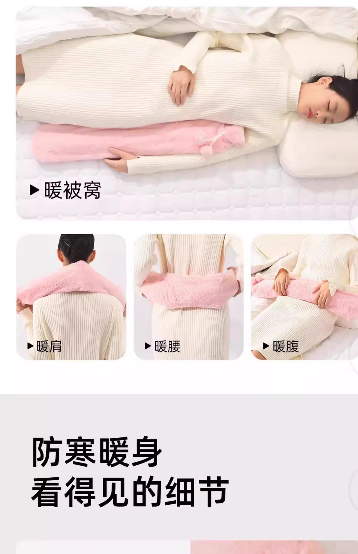 跨境PVC长条热水袋毛绒超长大号暖手水袋防爆敷肚子学生暖床暖身
