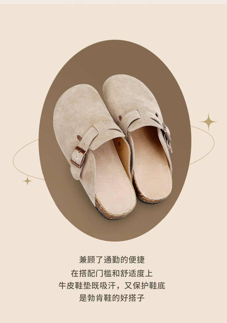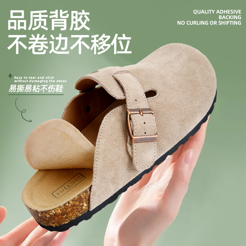 勃肯鞋鞋垫半拖女士包头凉鞋自粘防滑垫猪皮吸汗防臭赤脚夏季薄款