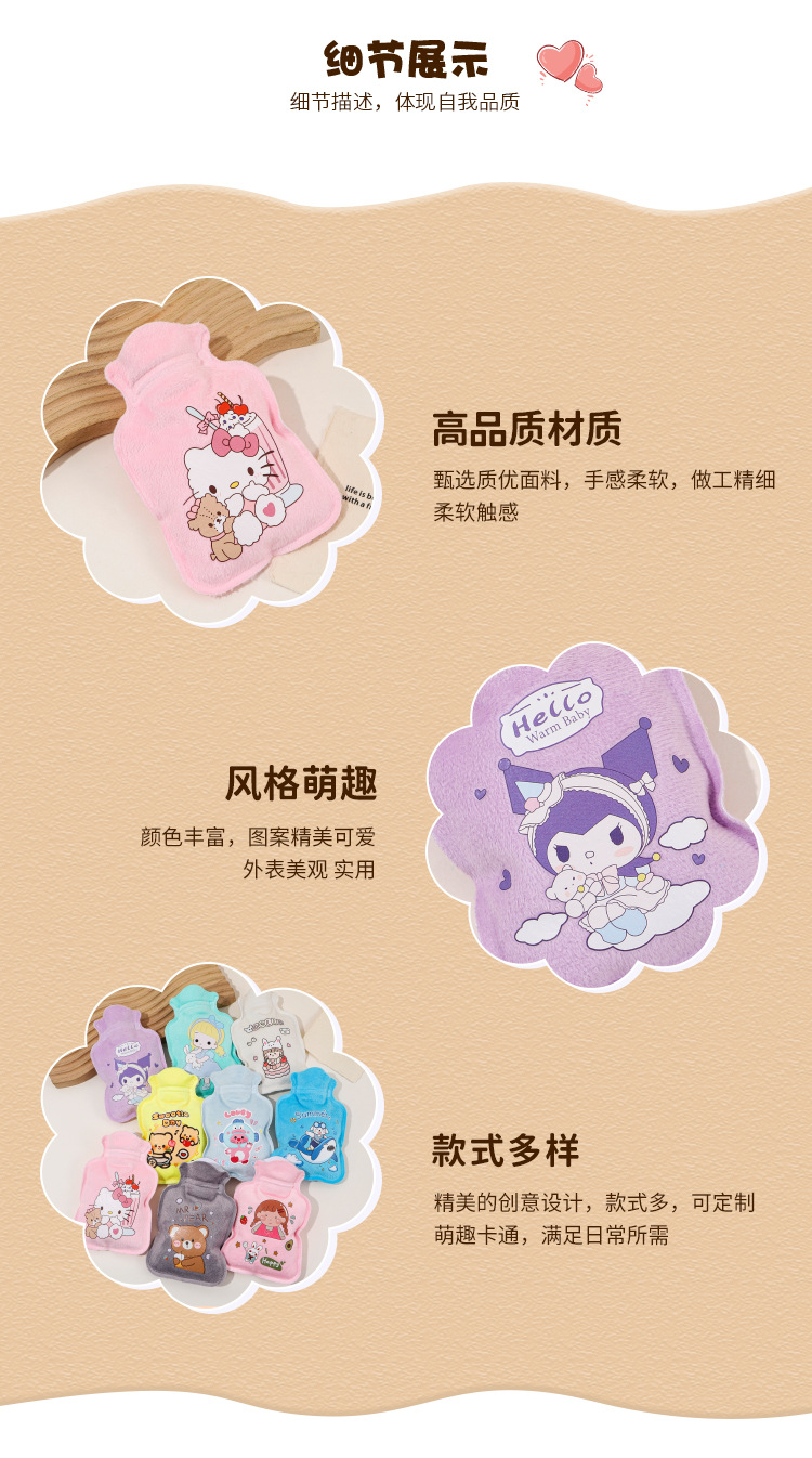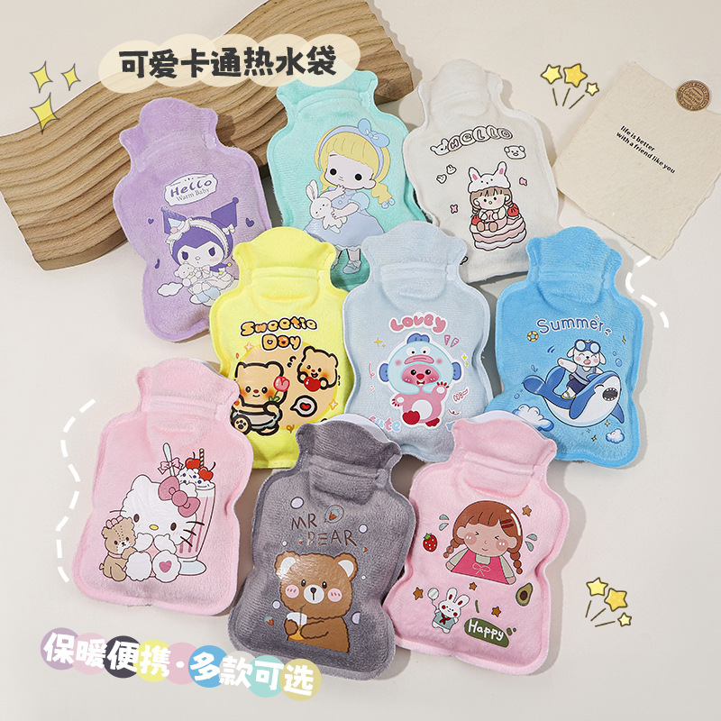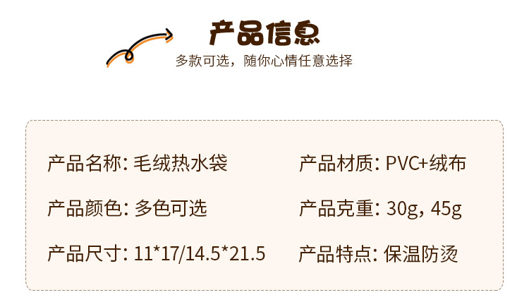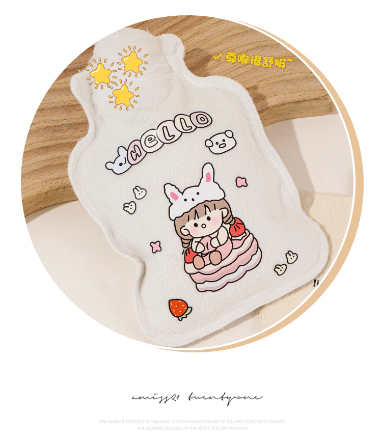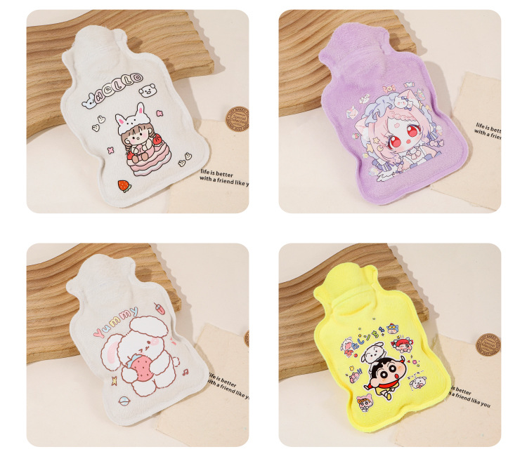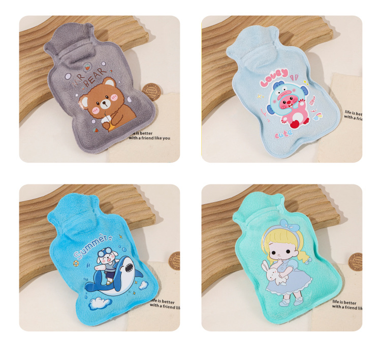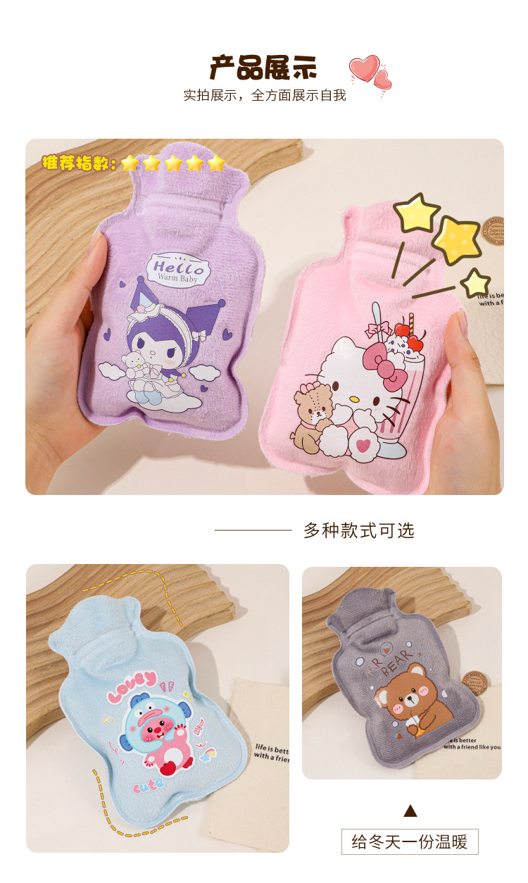 新款冬季毛绒热水袋卡通可爱防寒学生热水袋注水绒布宿舍暖宝宝