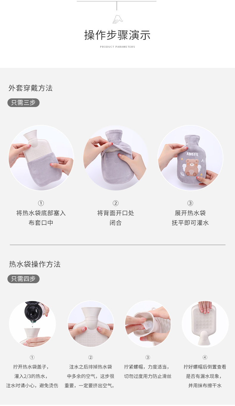 梦禾橡胶热水袋卡通注水袋可爱憨憨熊暖手袋女生暖肚子暖水袋批发