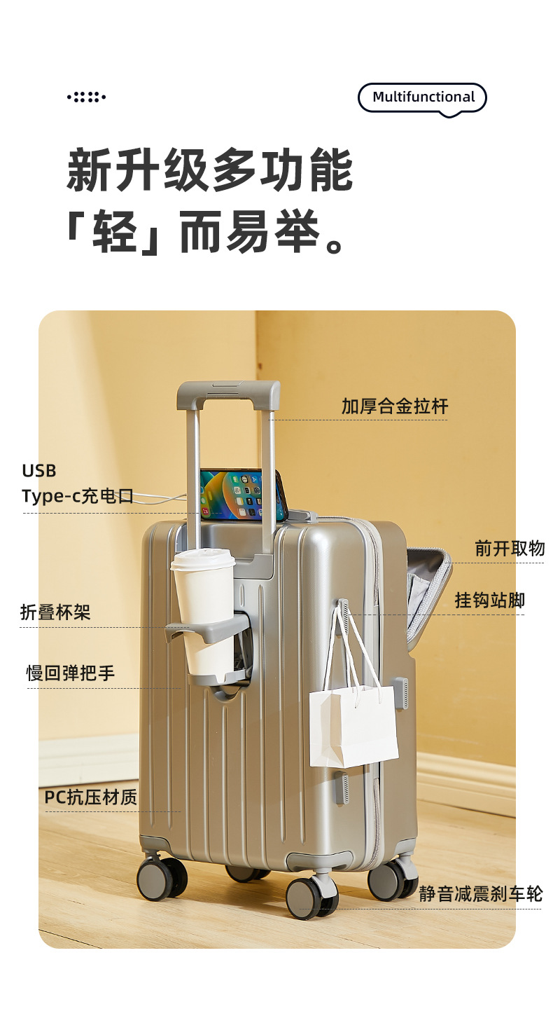 前开口新款24寸小型行李箱密码旅行箱子拉杆箱登机箱皮箱包可