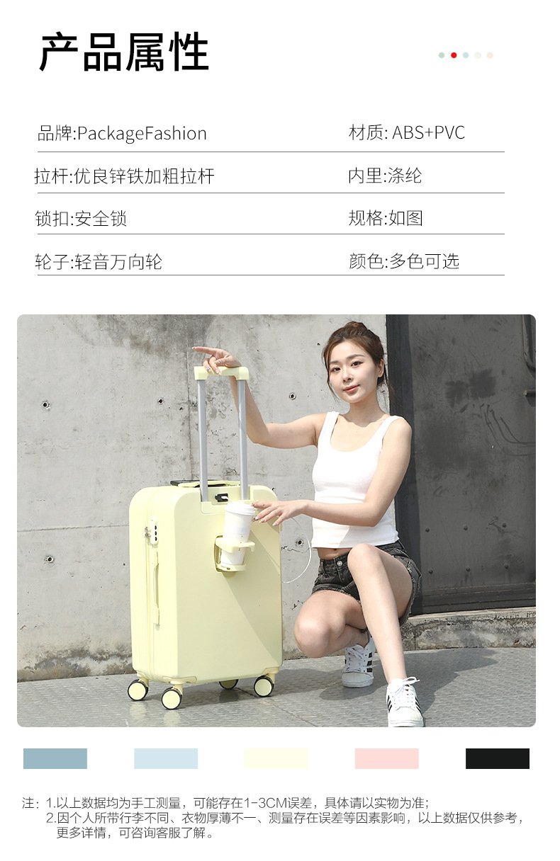 行李箱杯架款网红20寸24万向轮密码箱26耐用结实旅行箱拉杆箱
