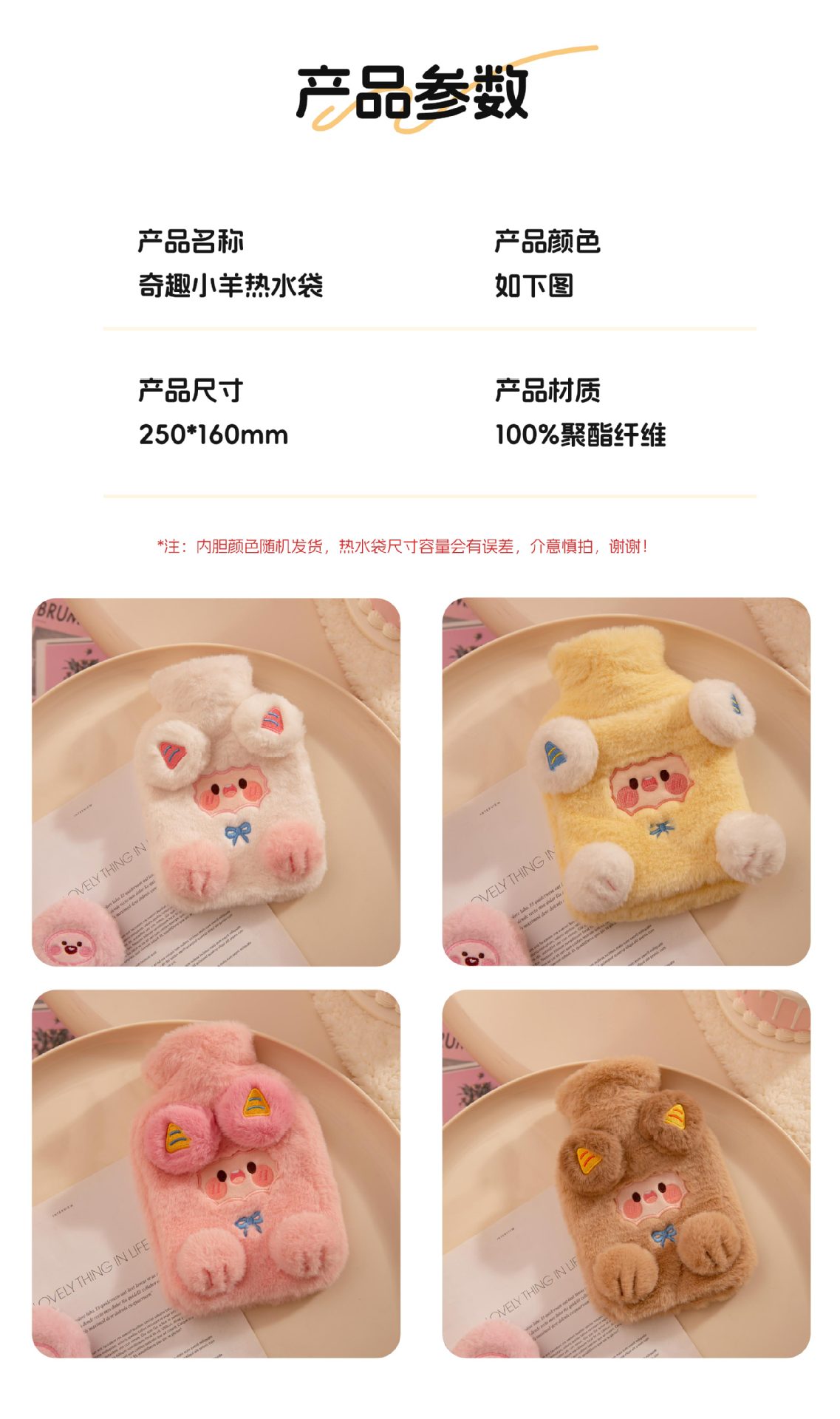 2025秋冬注水暖水袋可爱少女心可拆洗毛绒热水袋灌水暖宝暖手暖肚
