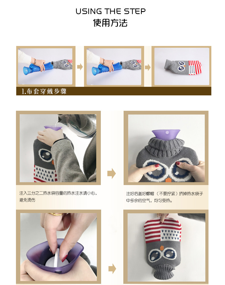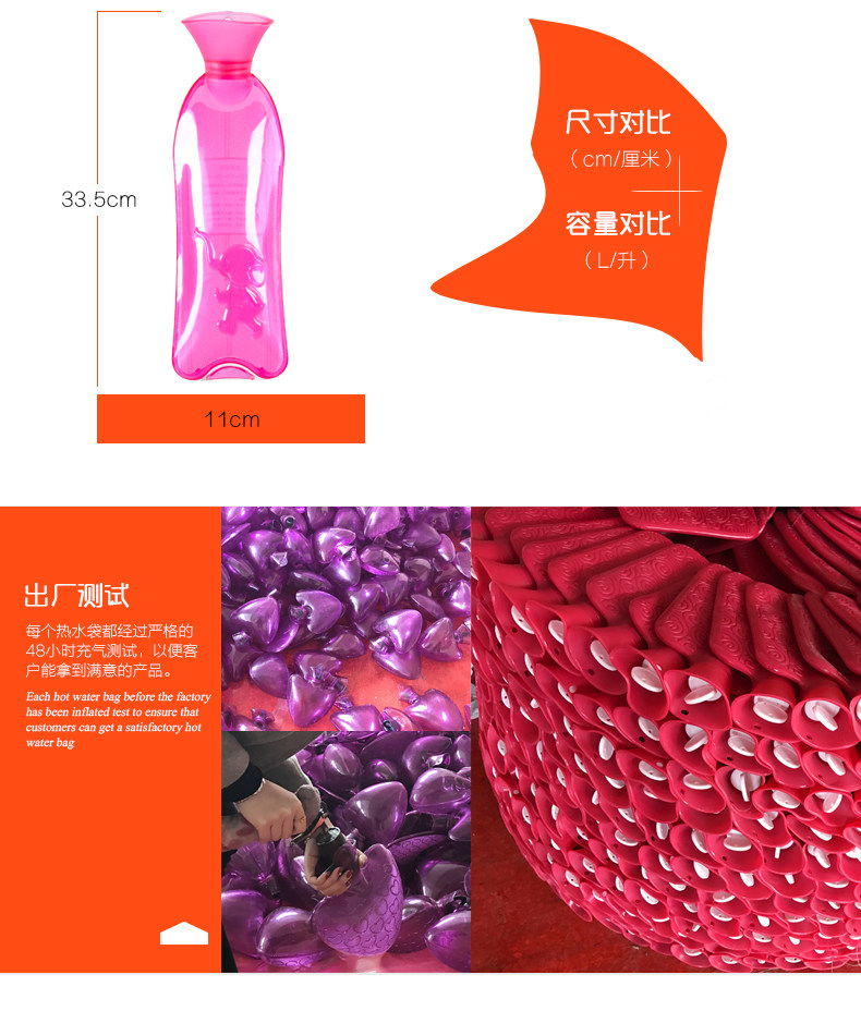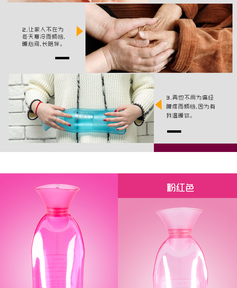 HONT宏特加厚PVC注水热水袋 长条可爱灌水暖水袋防爆暖手宝暖腰宝