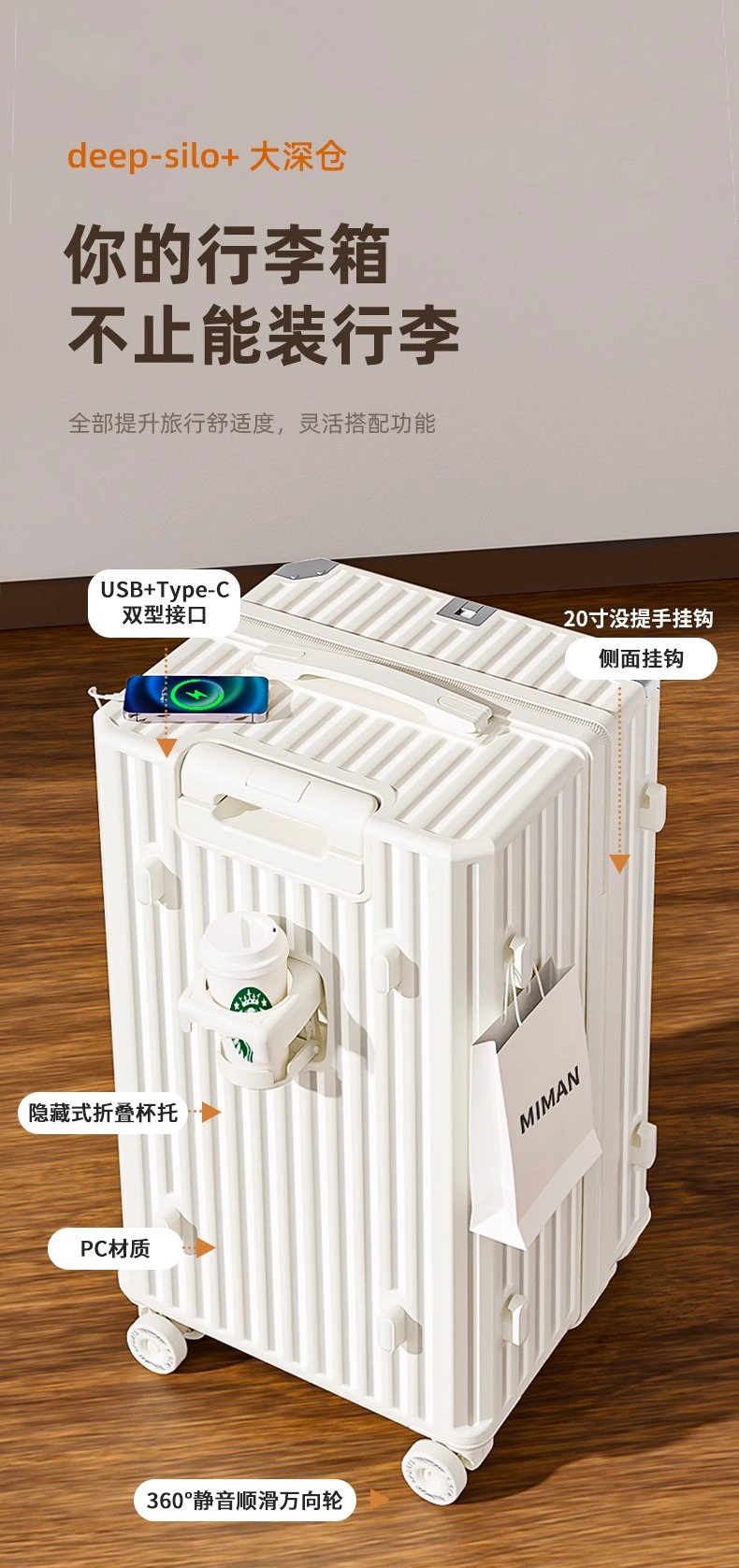 | 20-inch boarding bag [front hook + cup holder + usb-c pairs charging port]](20寸登机箱【前置挂钩+杯架+USB-C双充电口】) | USD $21.1 | 197999 piece available |