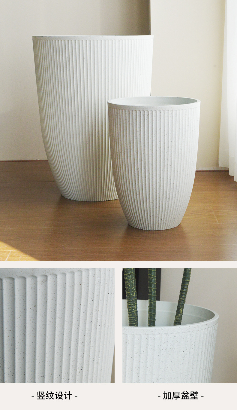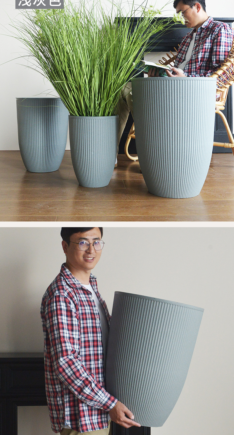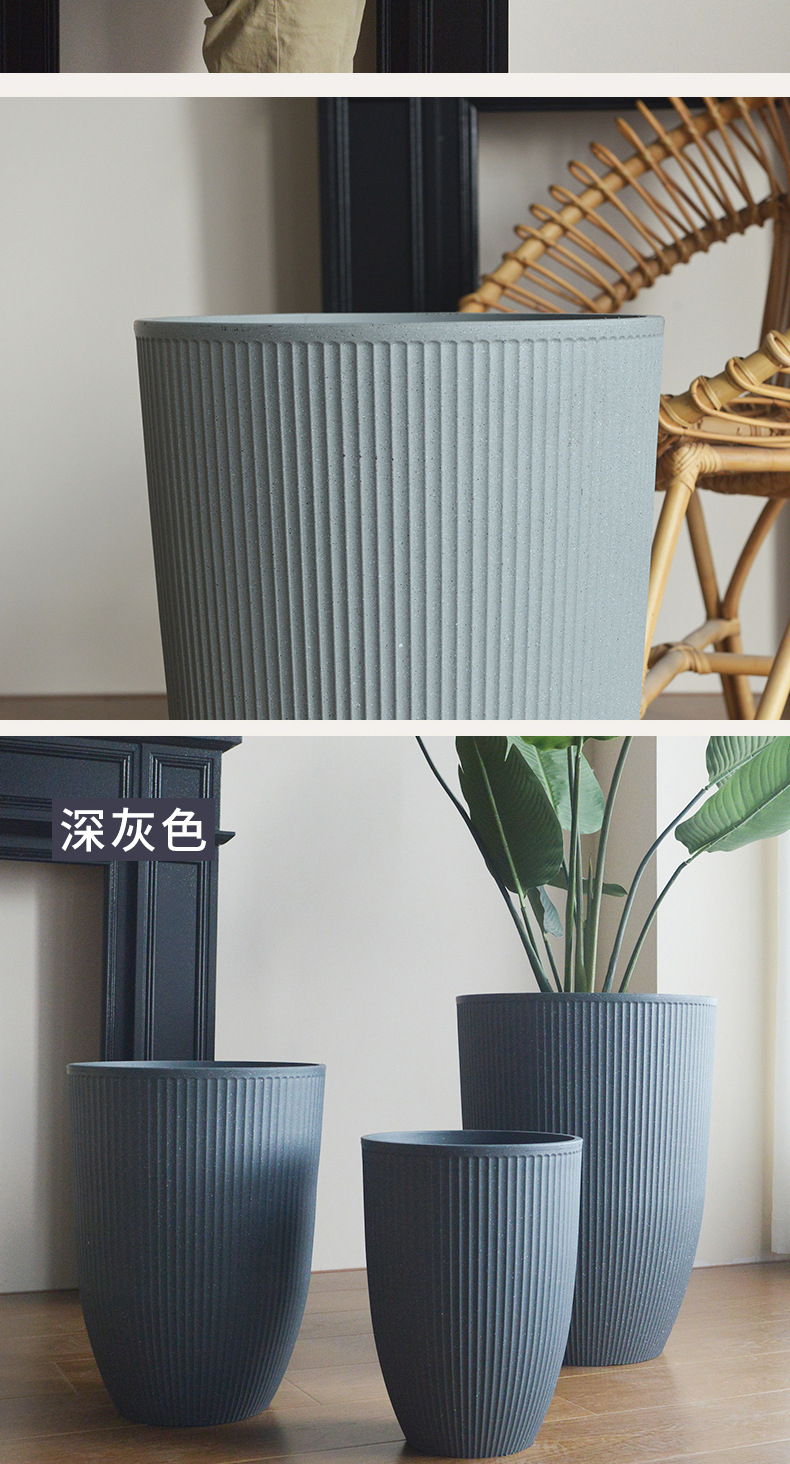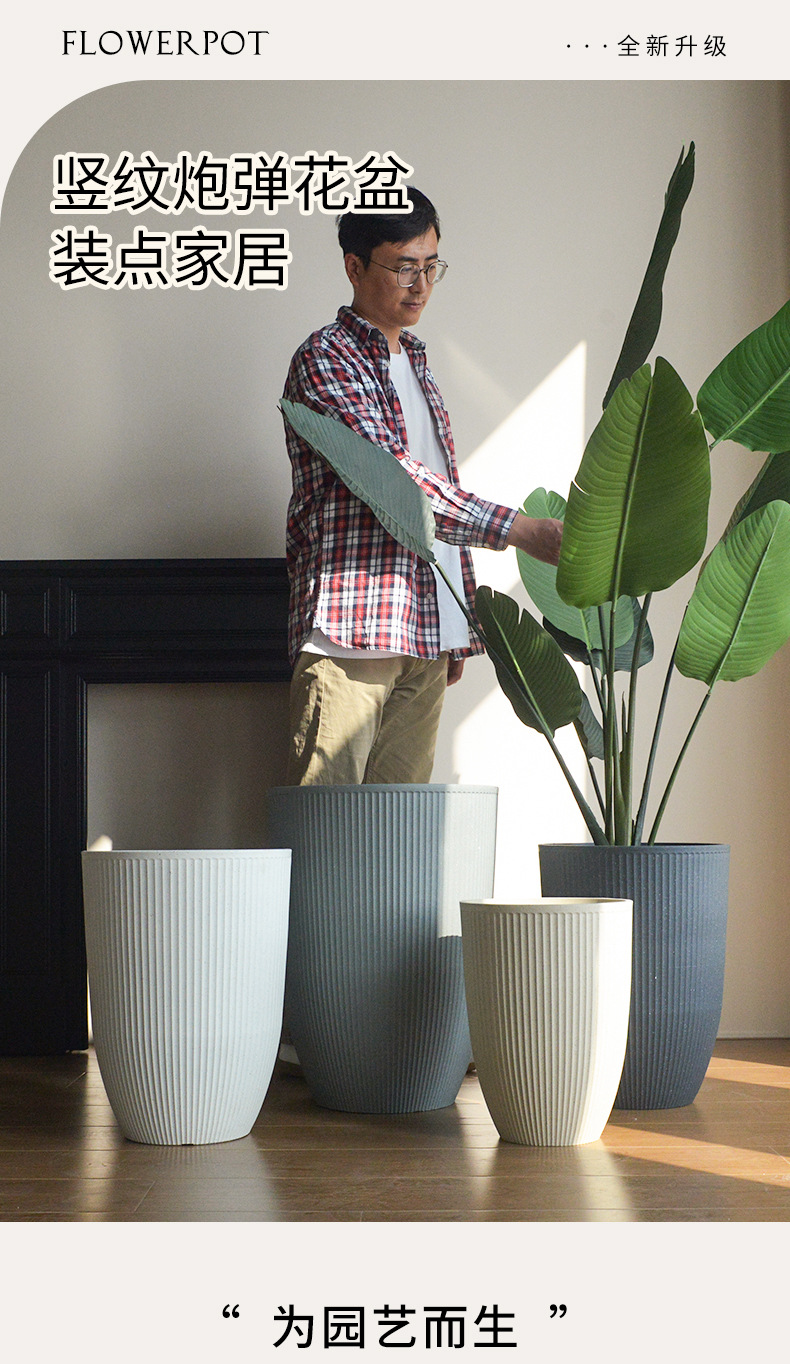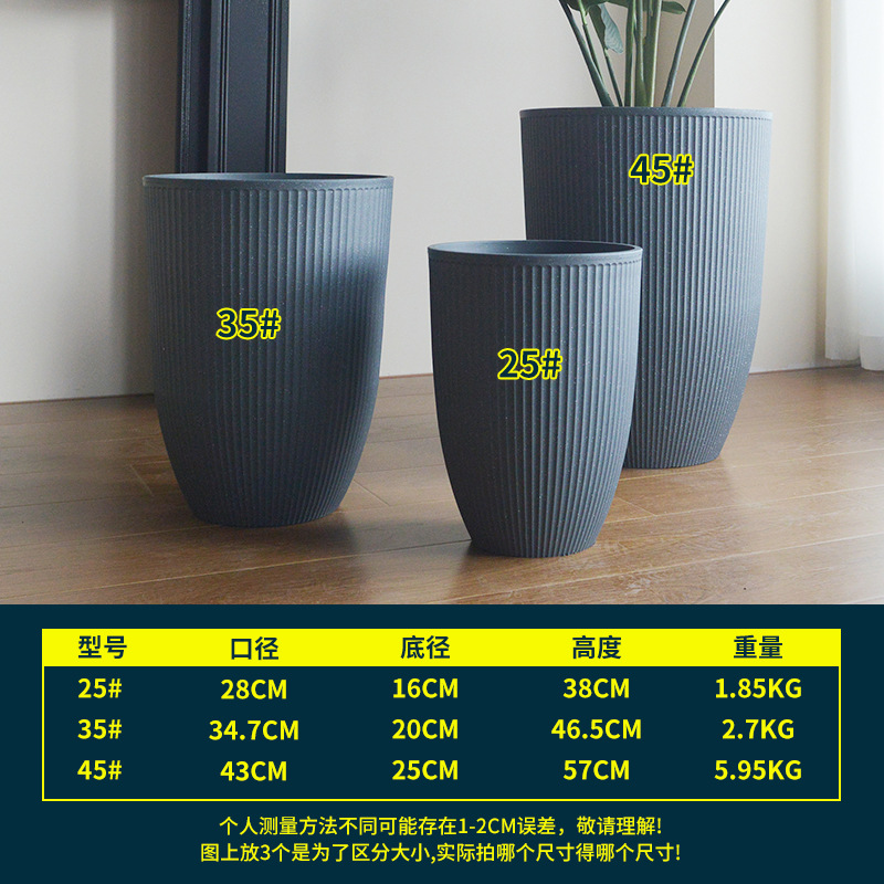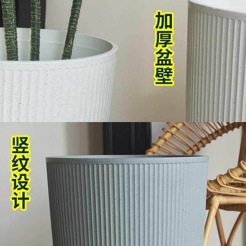 竖纹塑料圆形高筒花盆加厚树脂客厅卧室花盆柠檬树量天尺多肉花盆