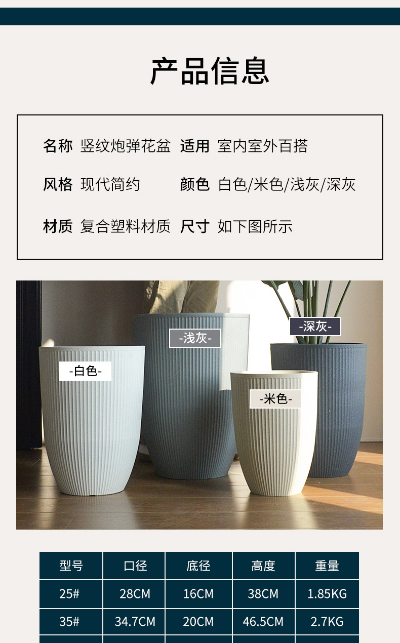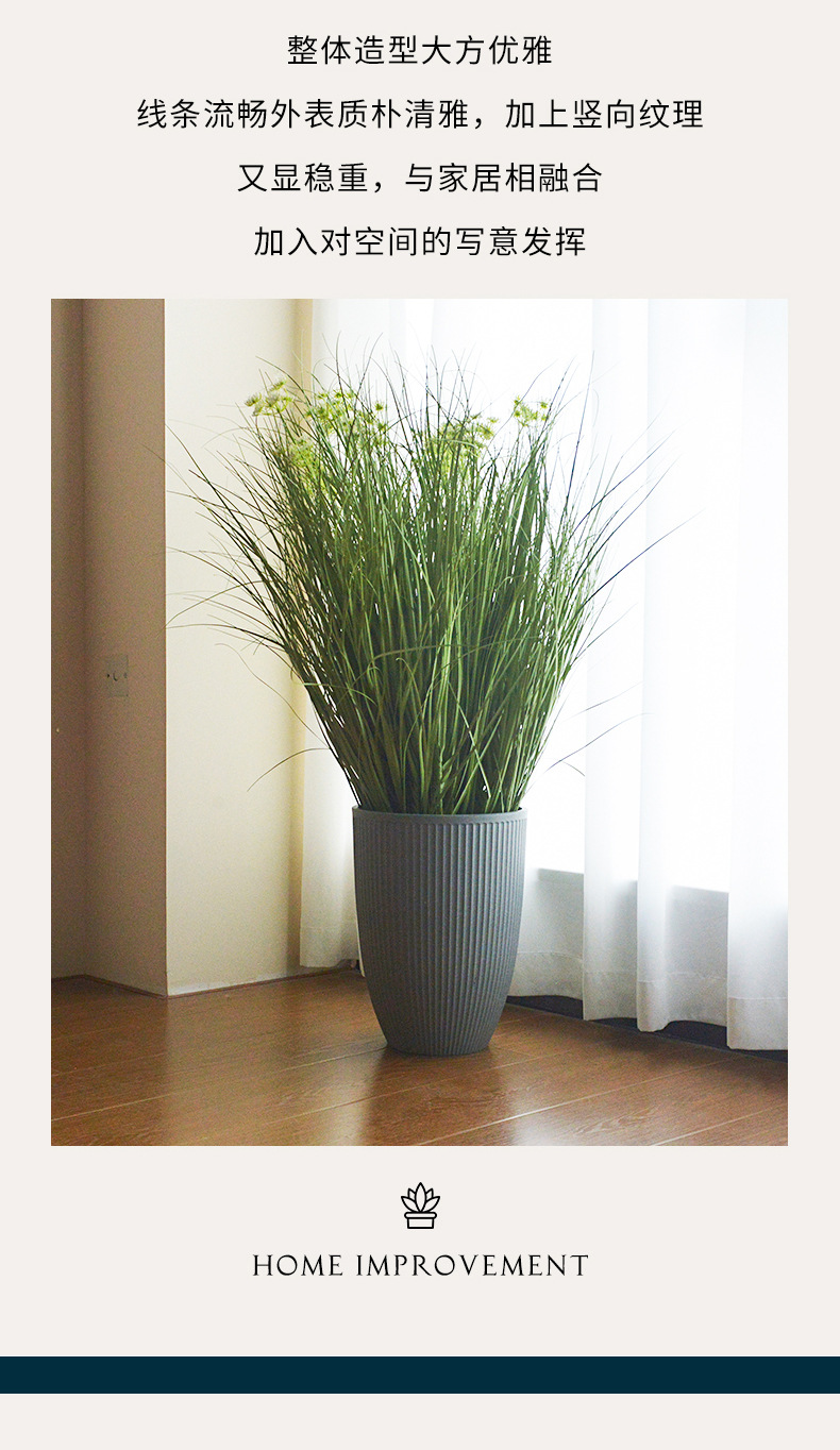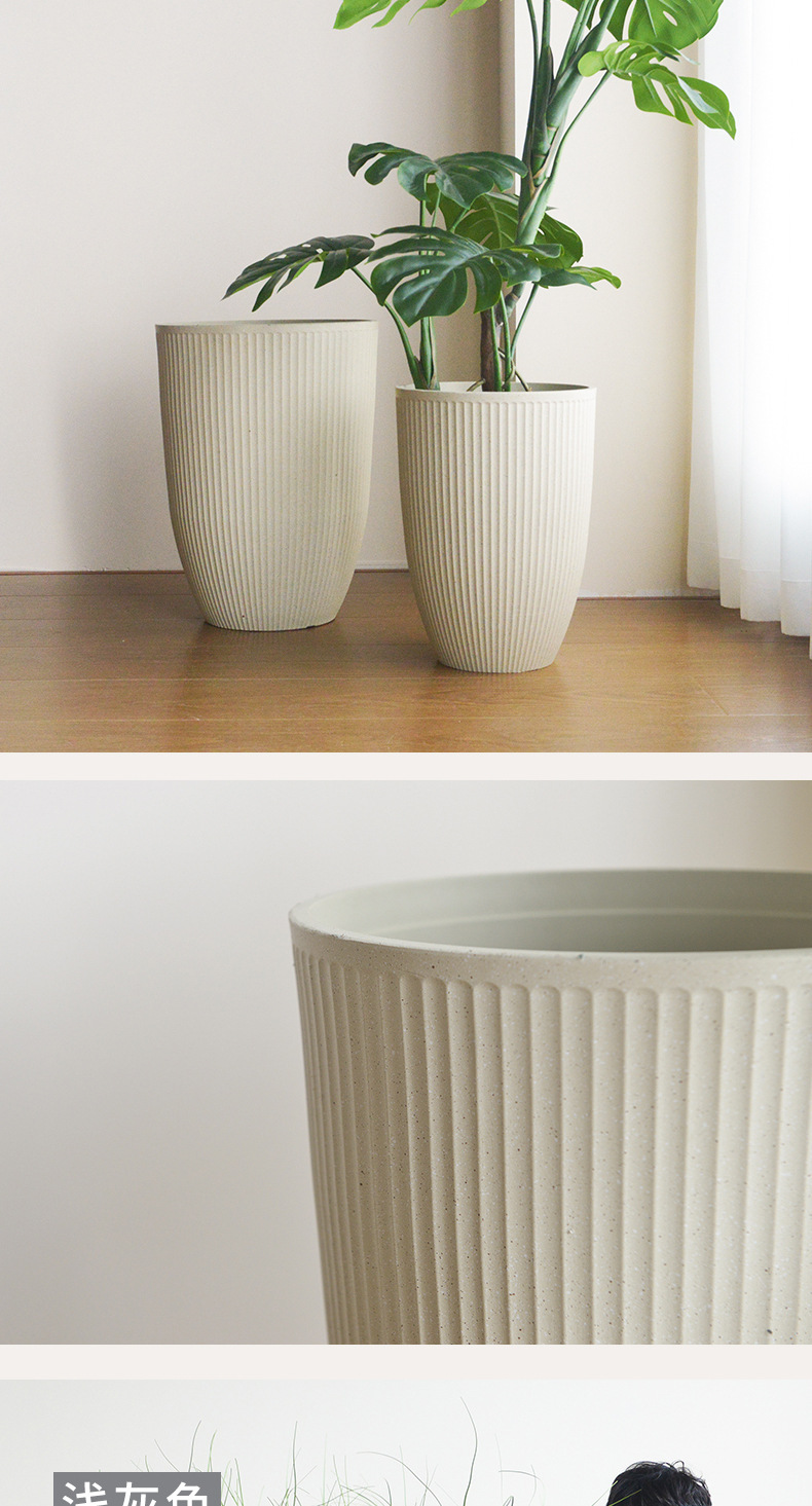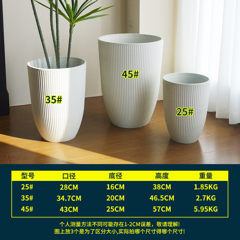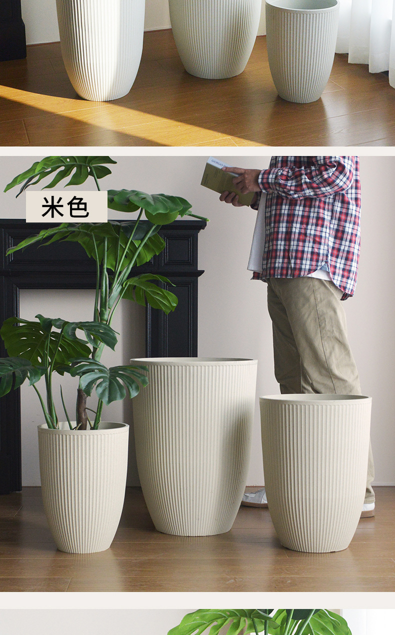 竖纹塑料圆形高筒花盆加厚树脂客厅卧室花盆柠檬树量天尺多肉花盆