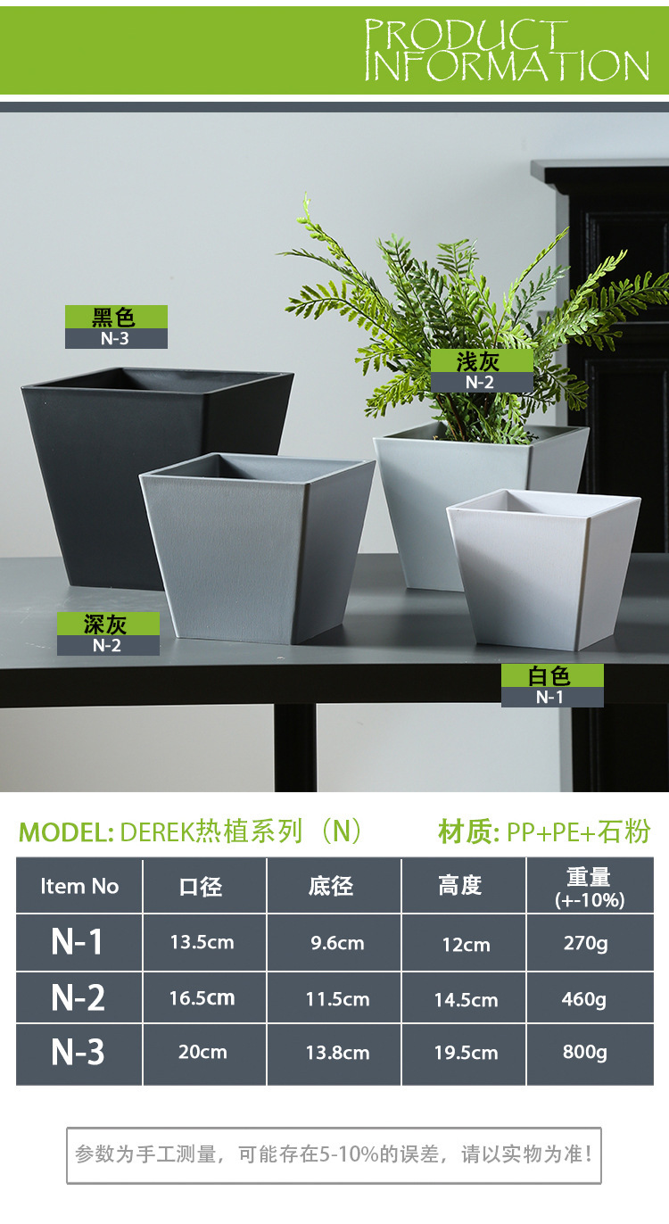 创意正方塑料花盆工厂直销客厅桌面多肉发财树绿植装饰盆光面加厚