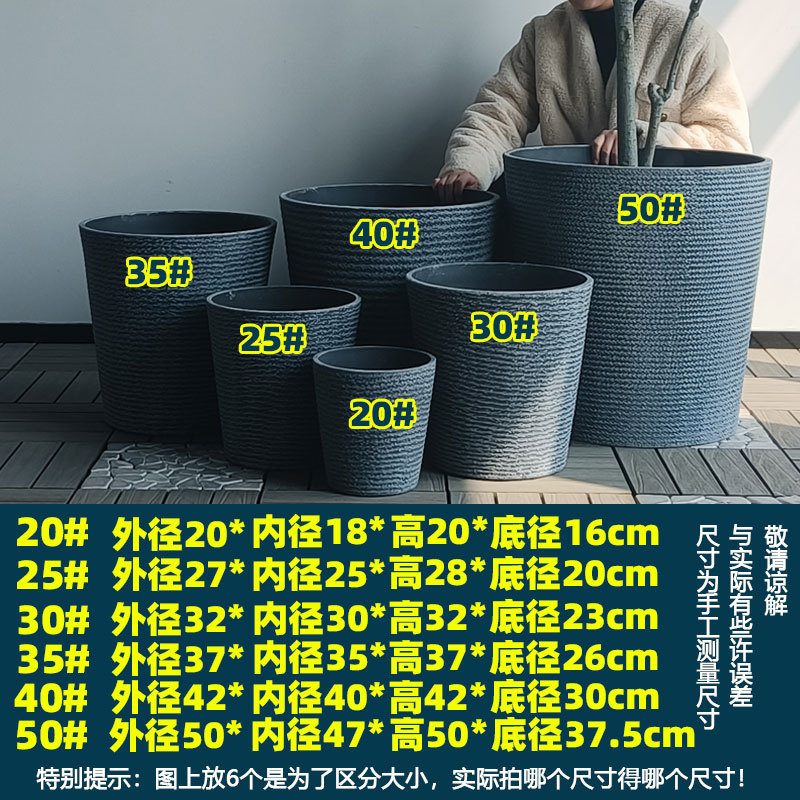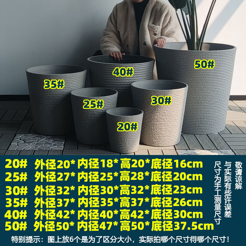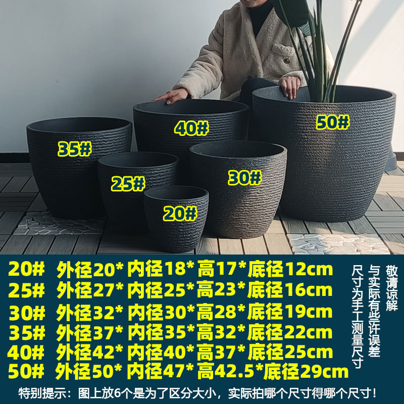 加厚塑料树脂花盆北欧简约特大仿陶瓷石客厅阳台种树高桶花盆厂家