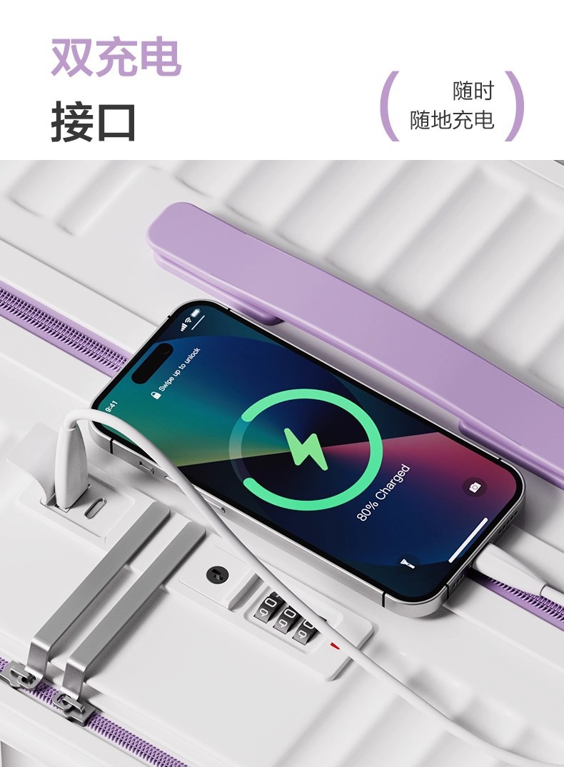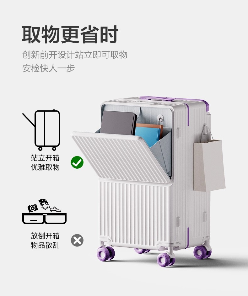 三七分宽拉杆行李箱大容量防保拉箱前开口旅行箱多功能减震拉杆箱