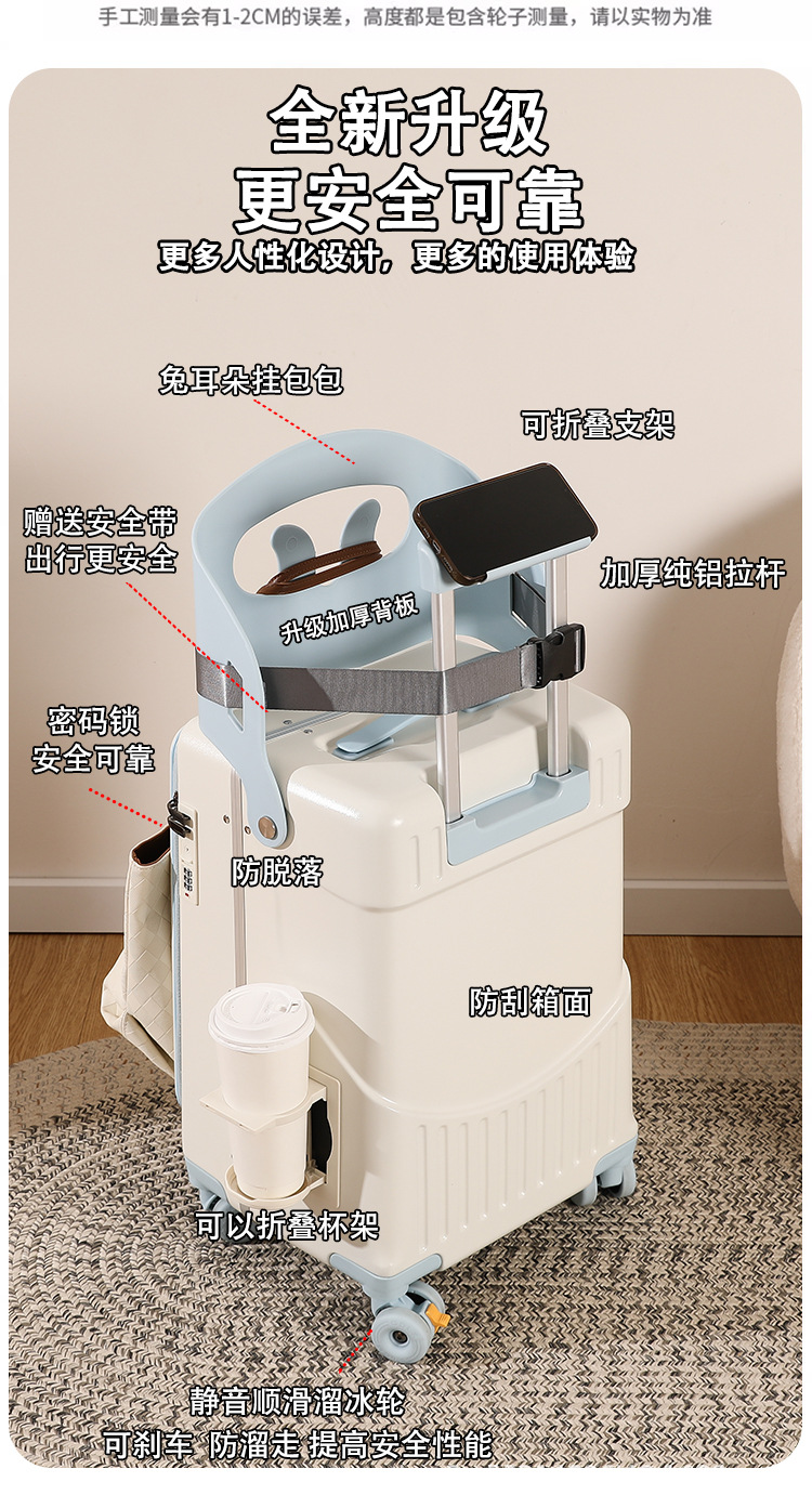 行李箱儿童可坐20寸登机懒人带娃神器前开口遛娃旅行箱座椅拉杆箱