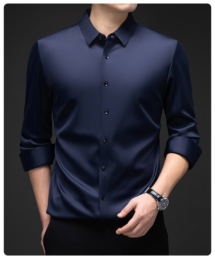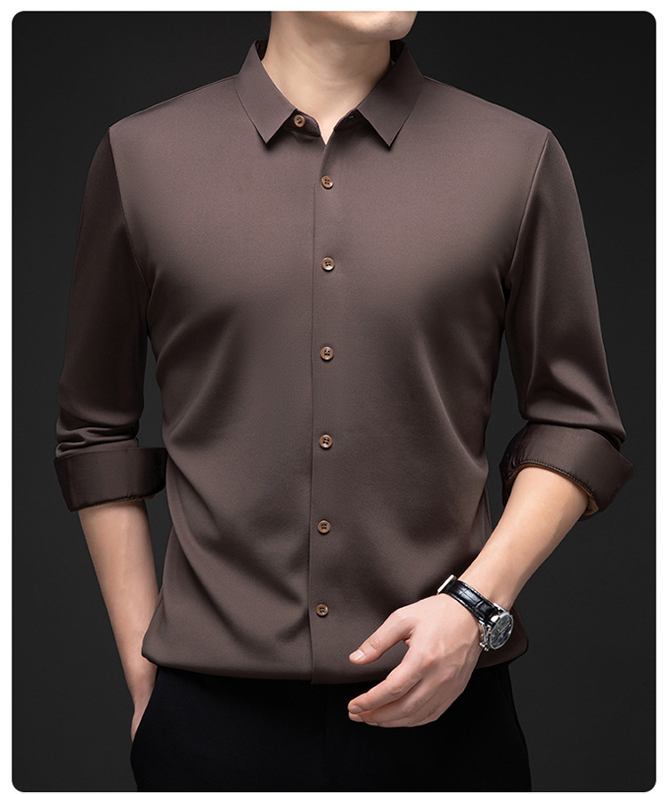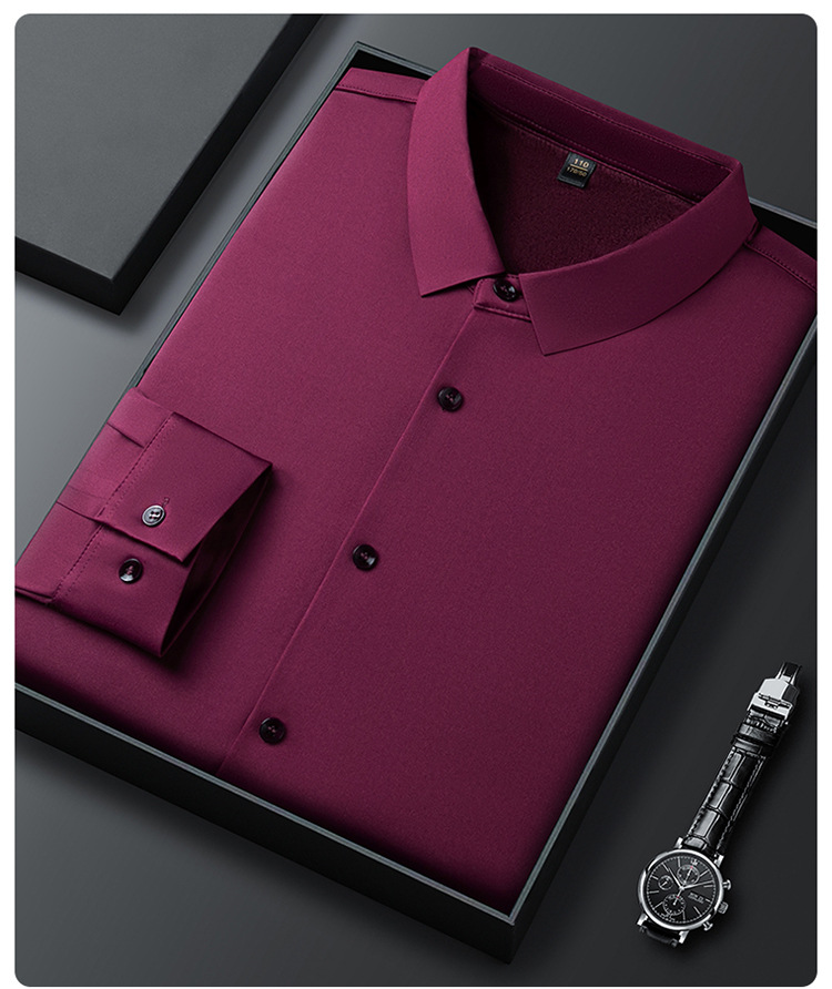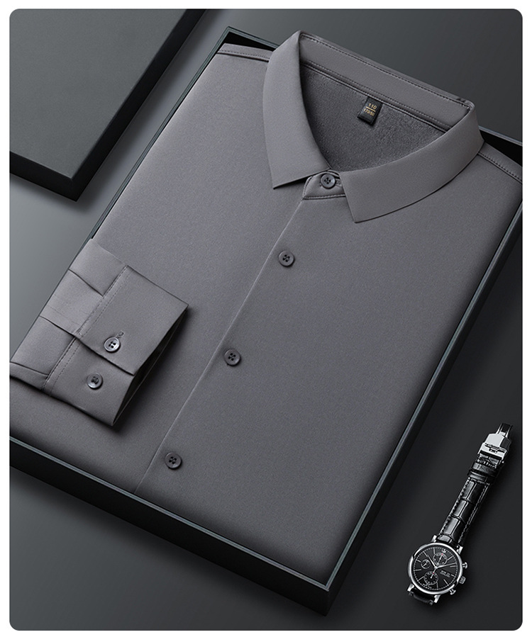 2025新款秋冬加绒衬衫男长袖商务休闲免烫抗皱高弹保暖衬衣内搭男