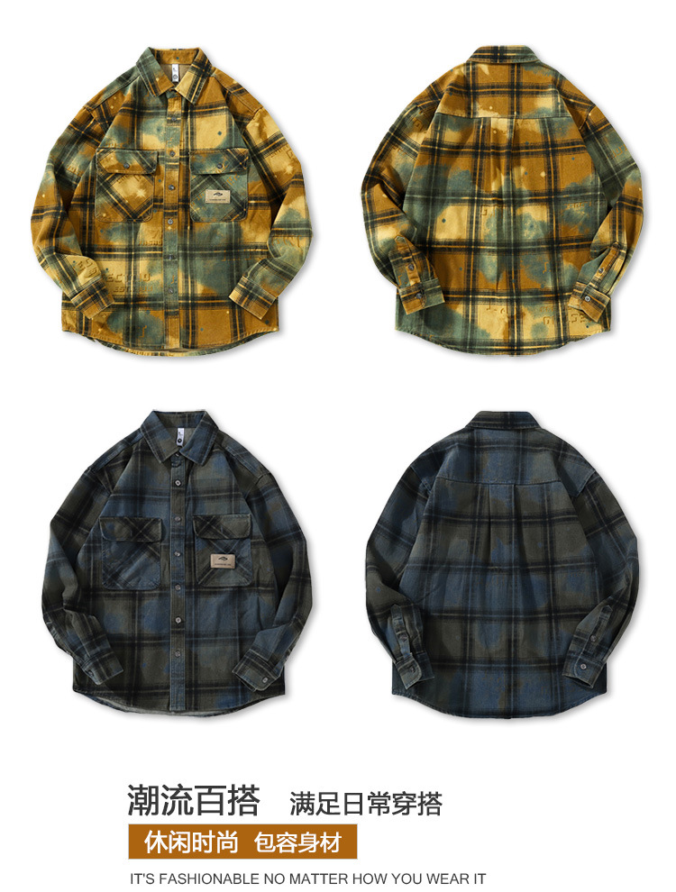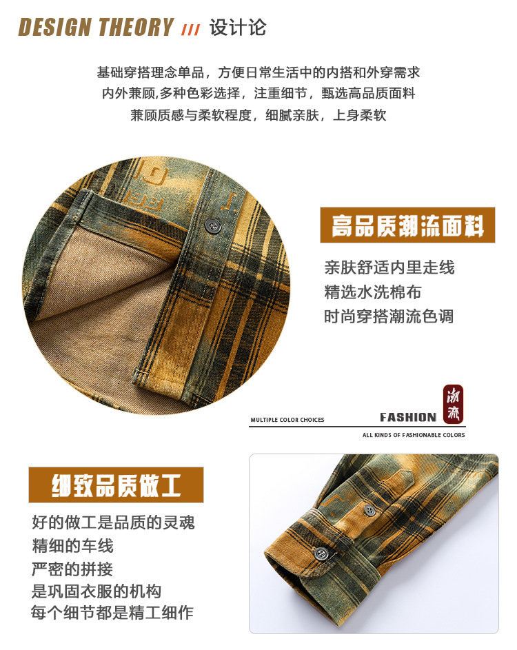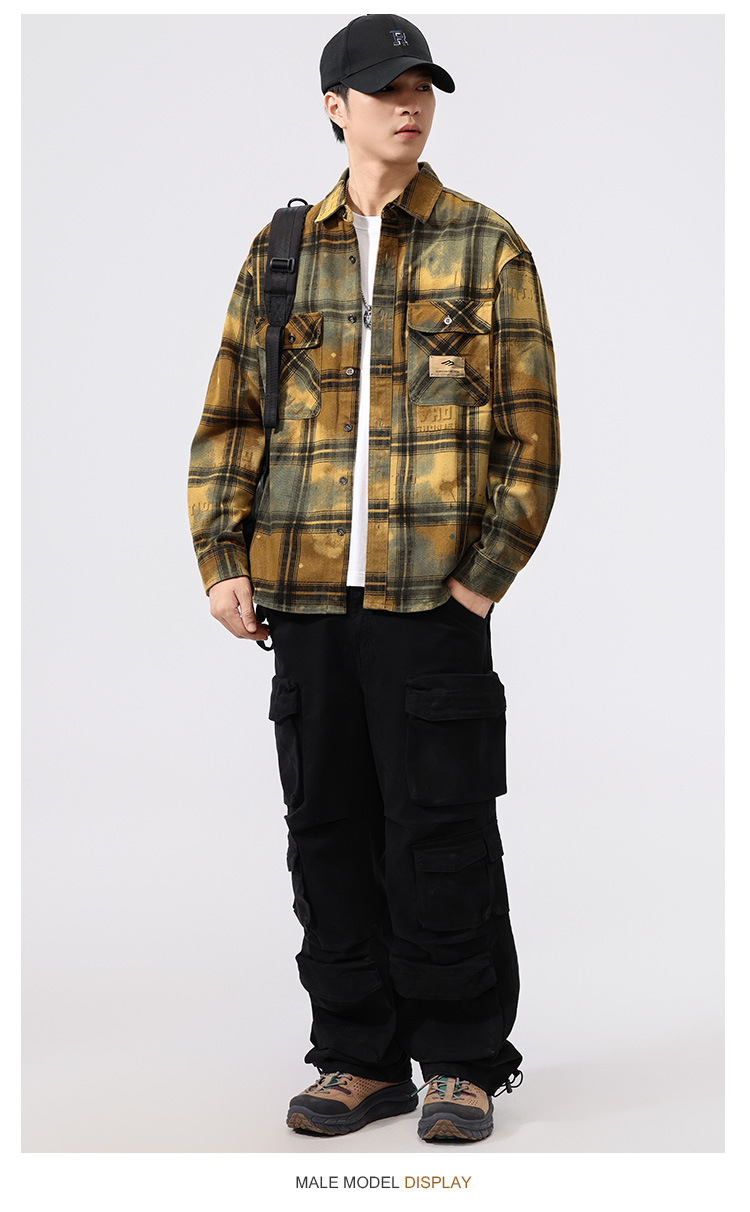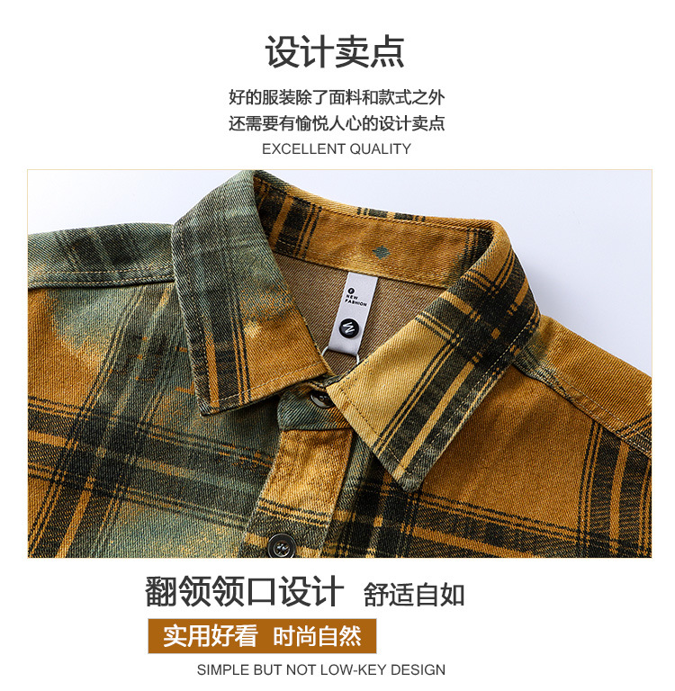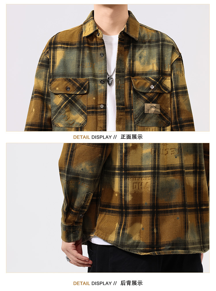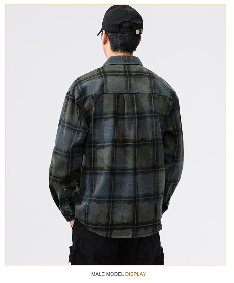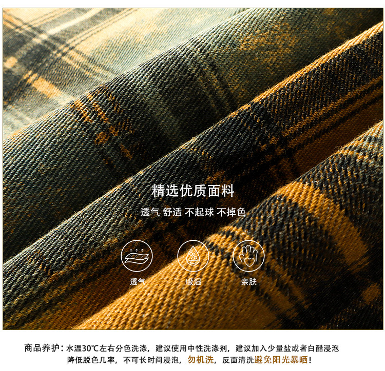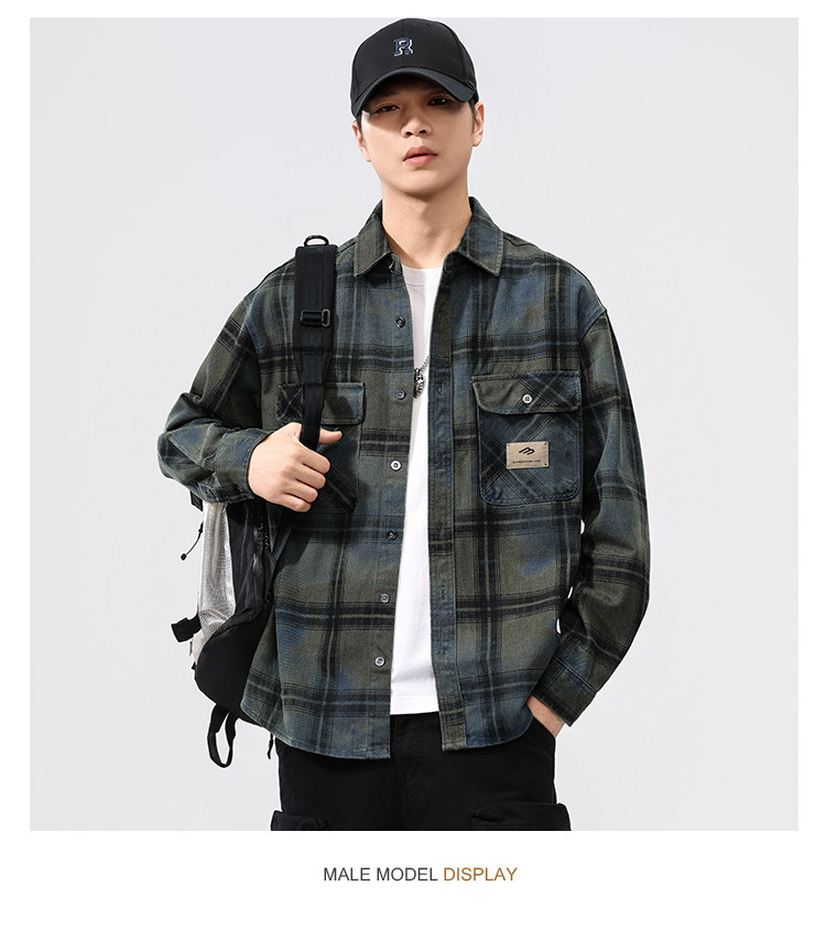 春秋季复古美式格子衬衫男士长袖外套休闲百搭大码工装衬衫式夹克
