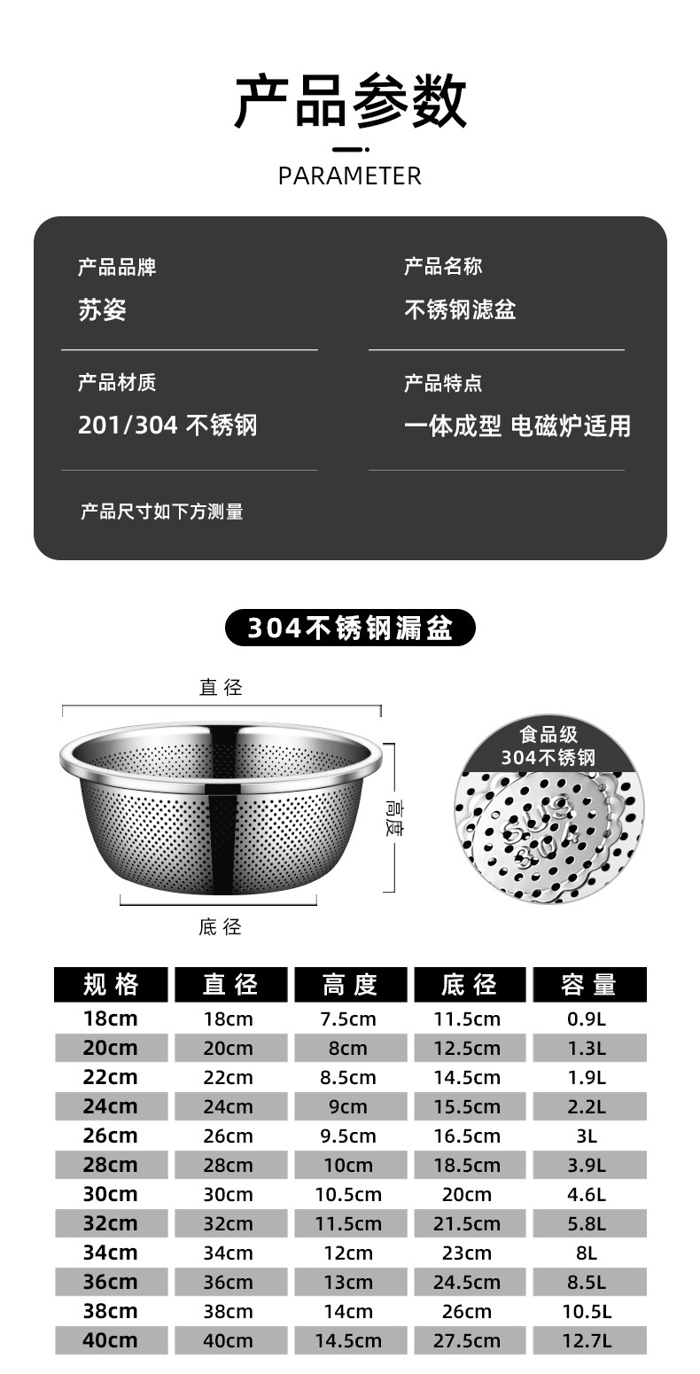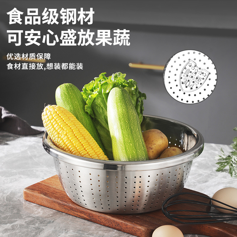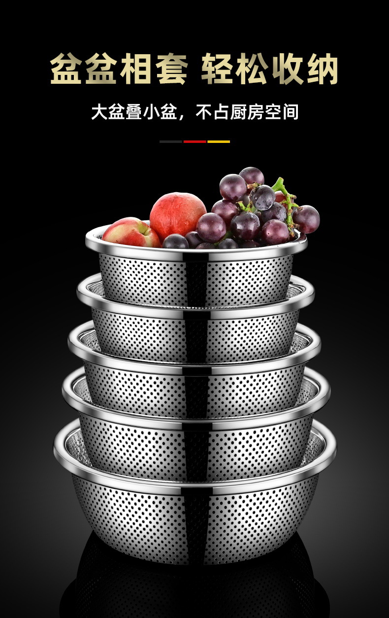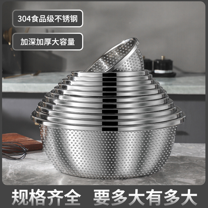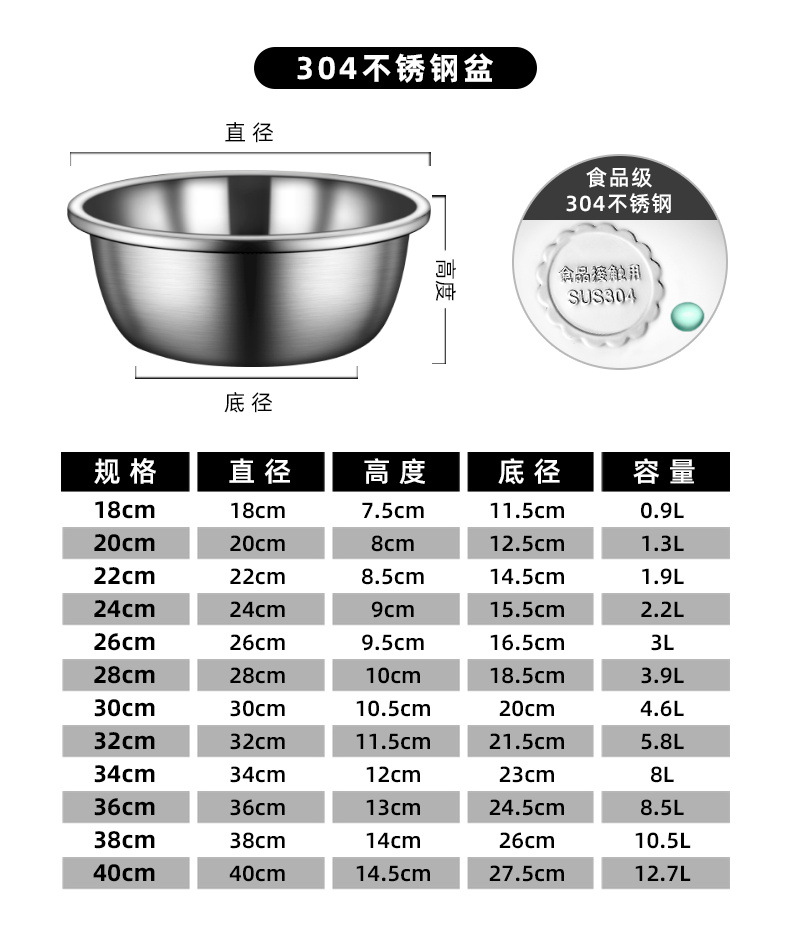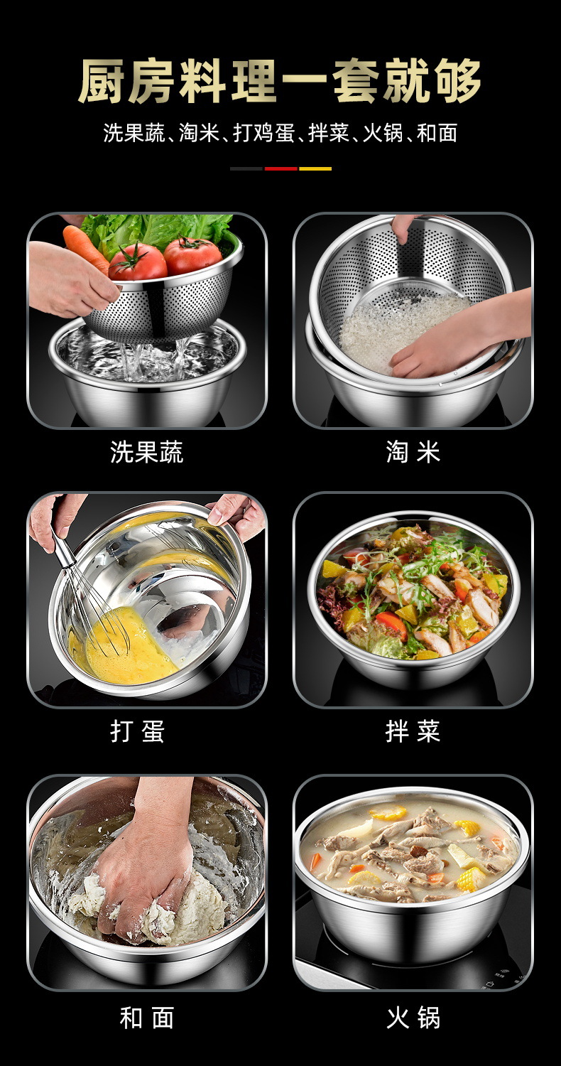 食品级304不锈钢盆料理盆打蛋盆和面盆洗菜盆沥水篮家用汤盆
