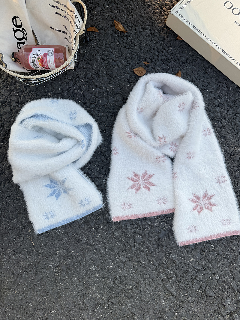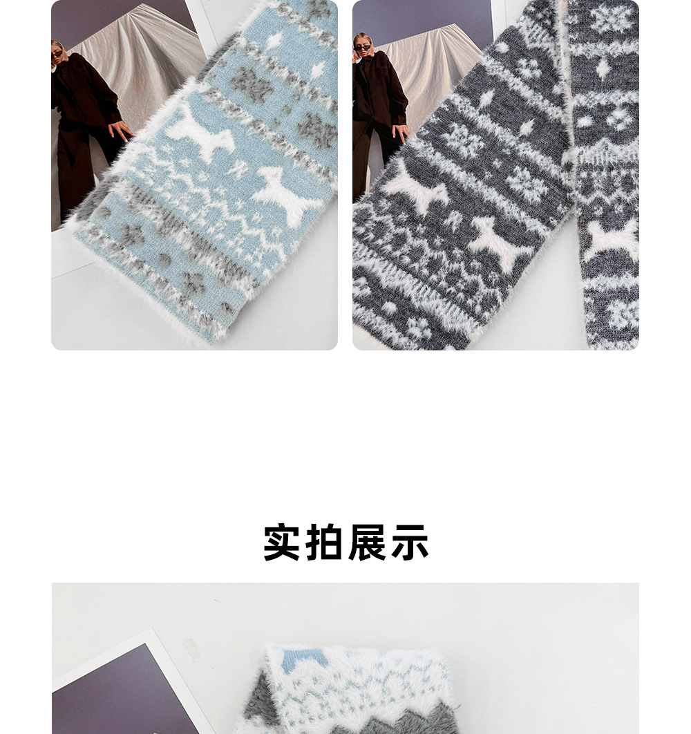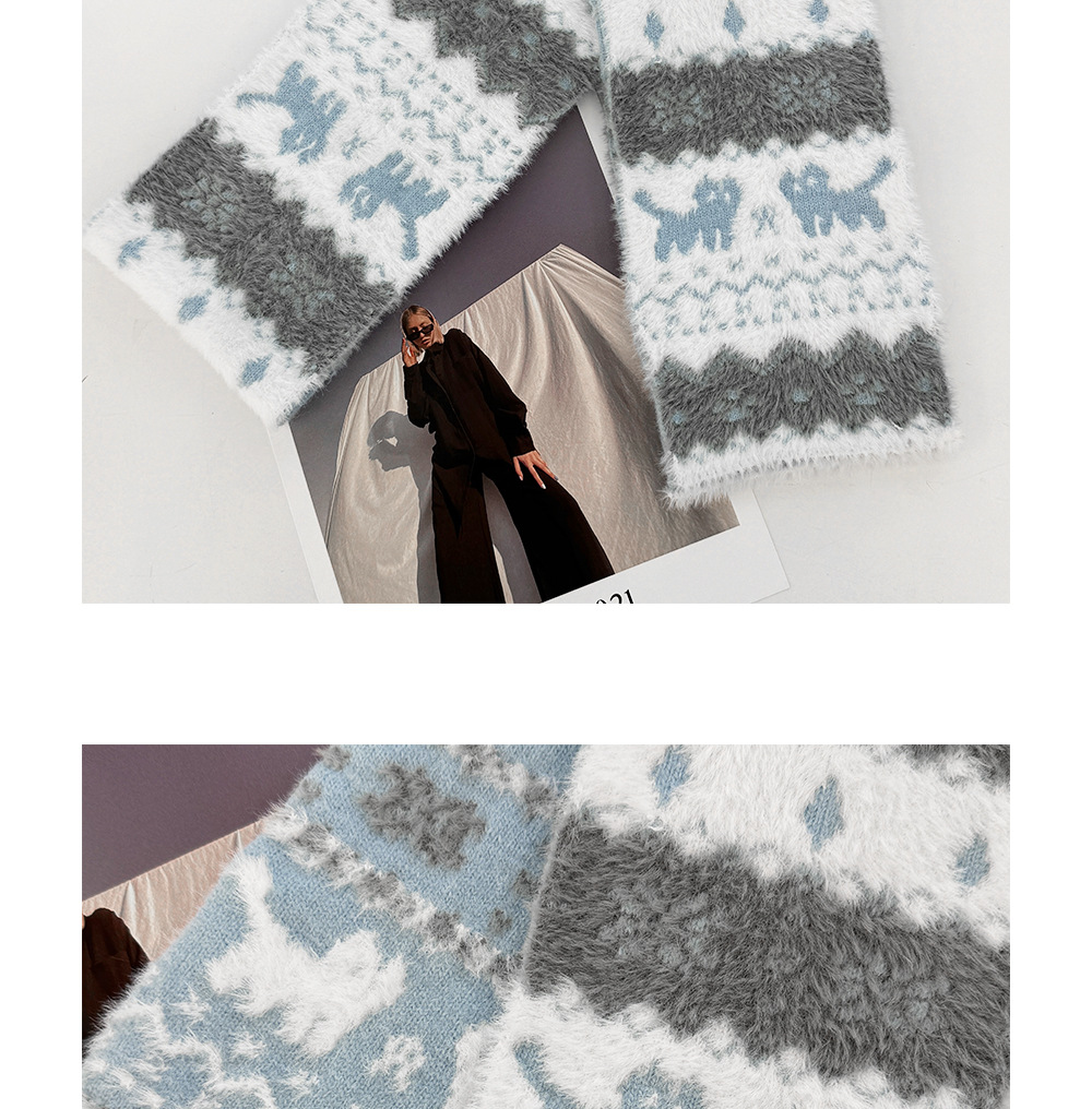 费尔岛风可爱猫咪双面针织围巾女秋冬保暖复古百搭围脖防风防寒