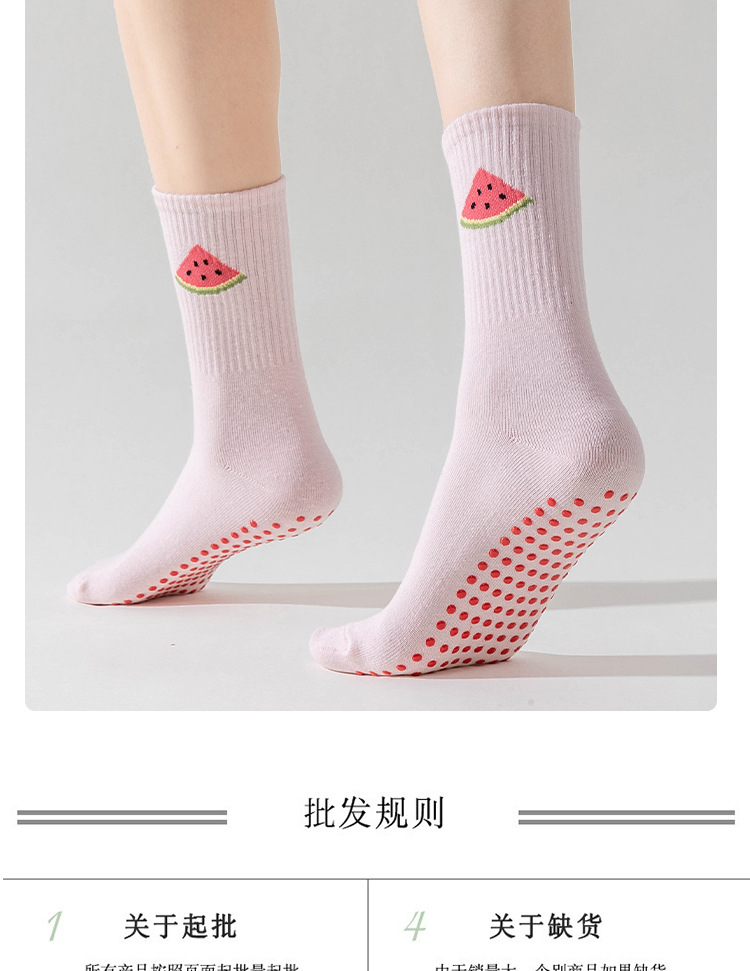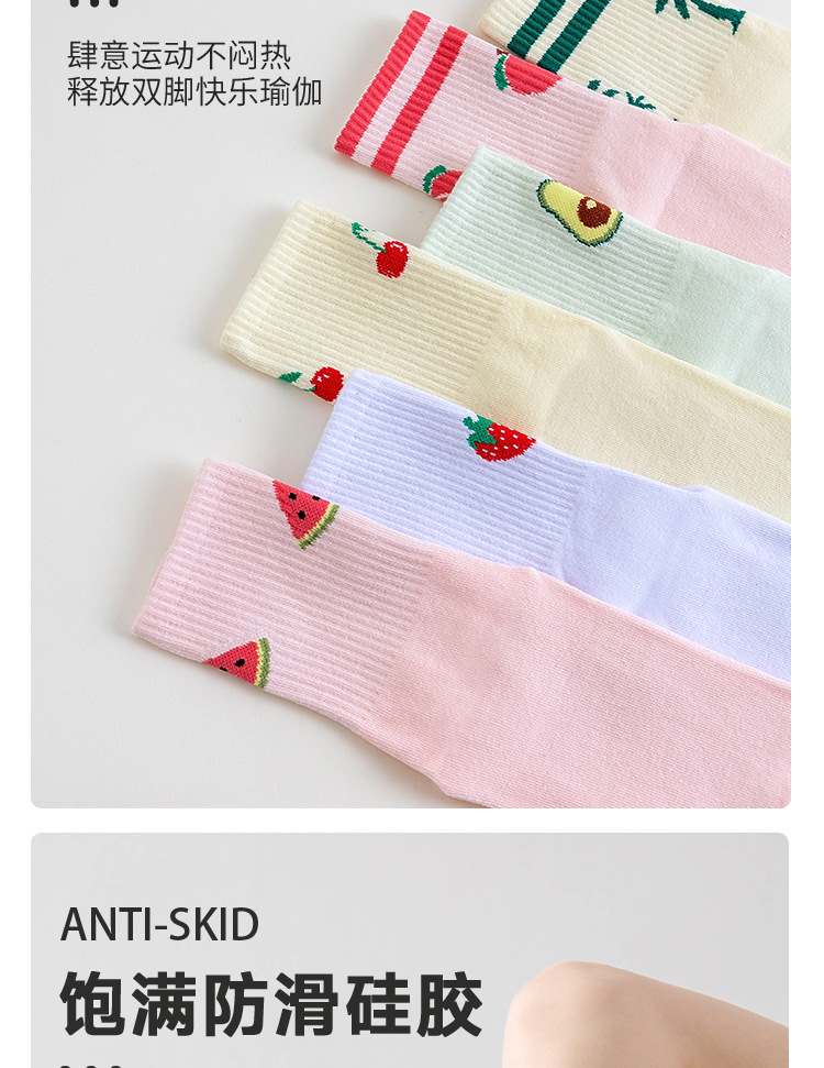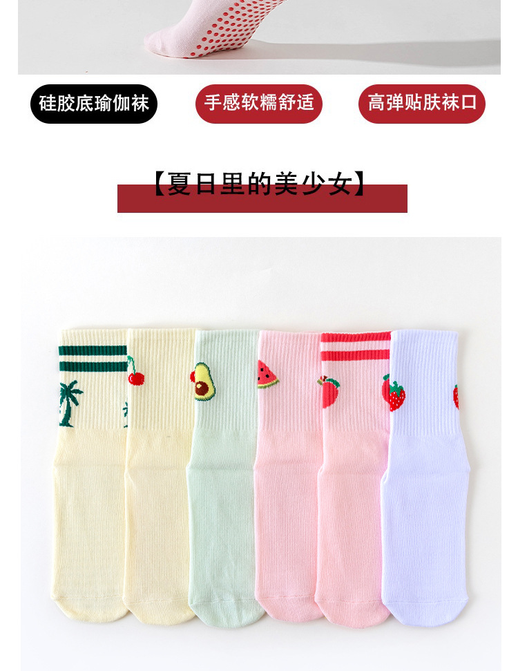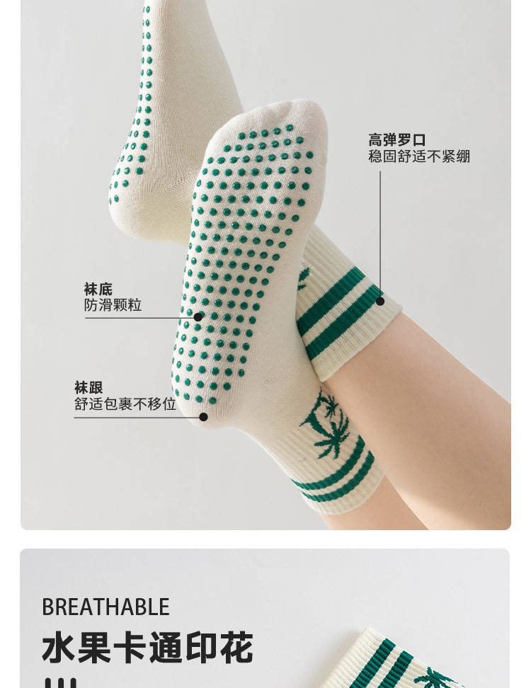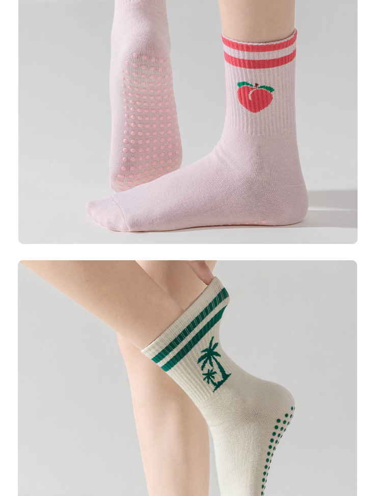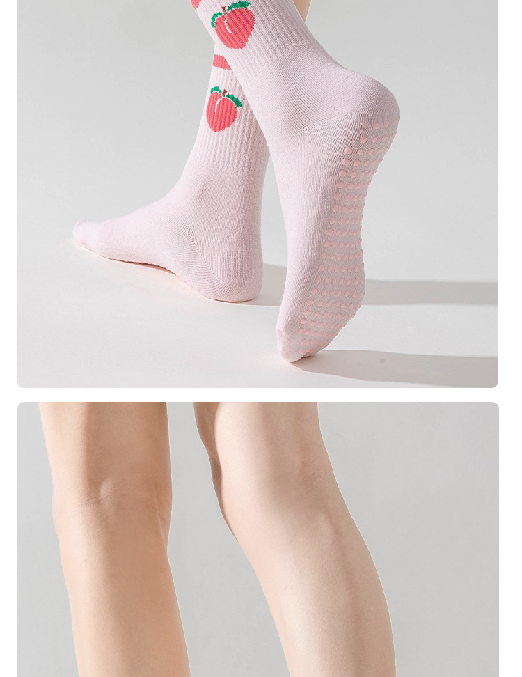 卡通瑜伽袜子女白色中筒袜网红樱桃专业防滑健身普拉提运动地板袜