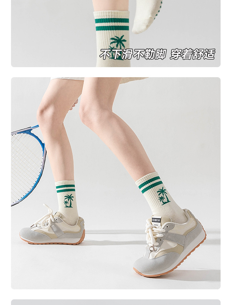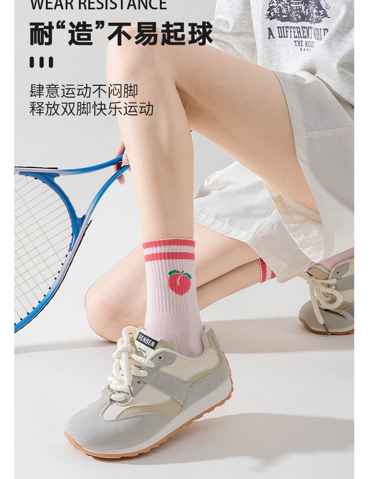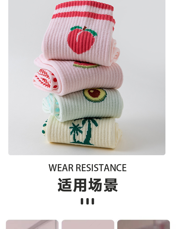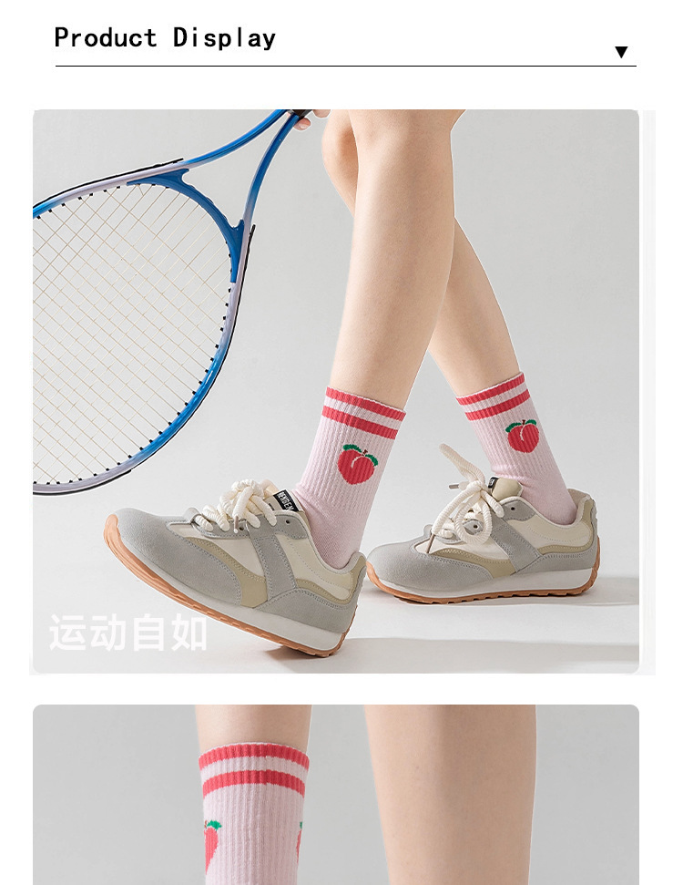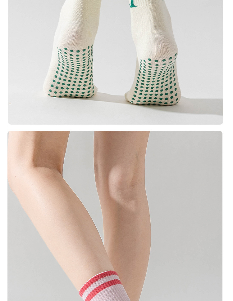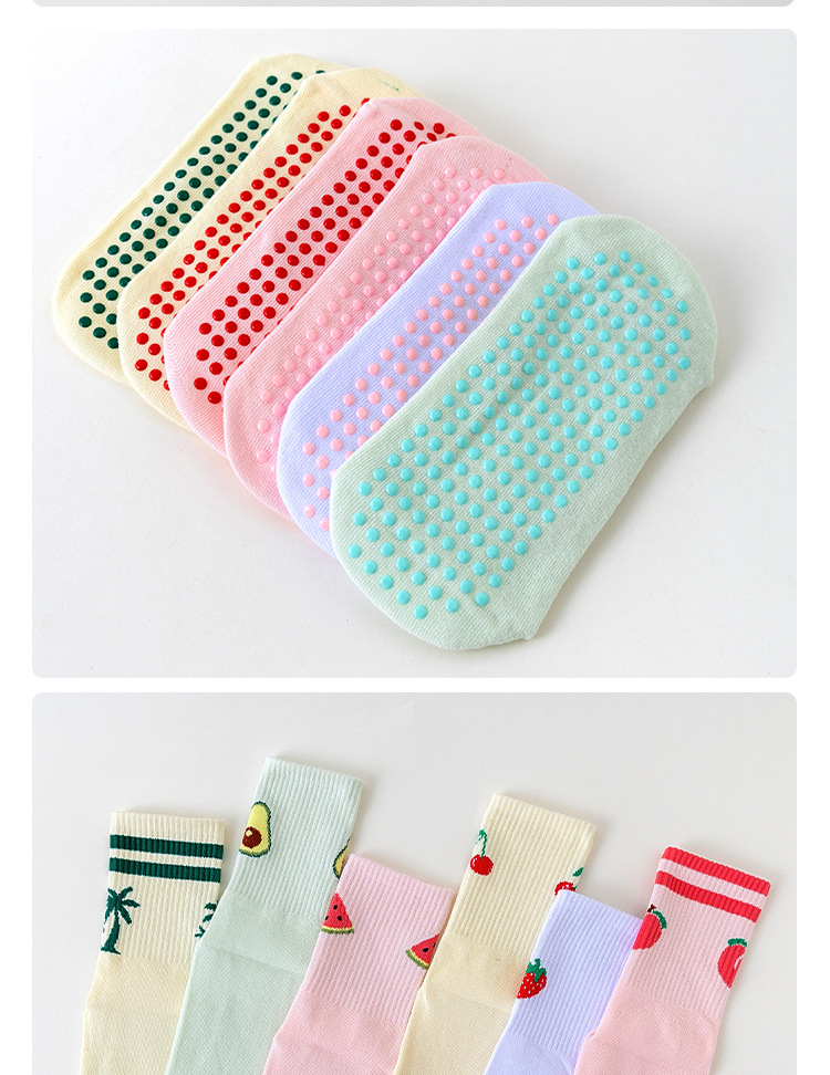 卡通瑜伽袜子女白色中筒袜网红樱桃专业防滑健身普拉提运动地板袜