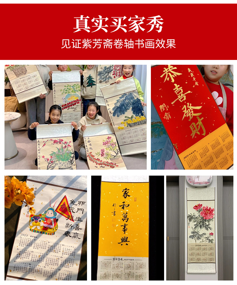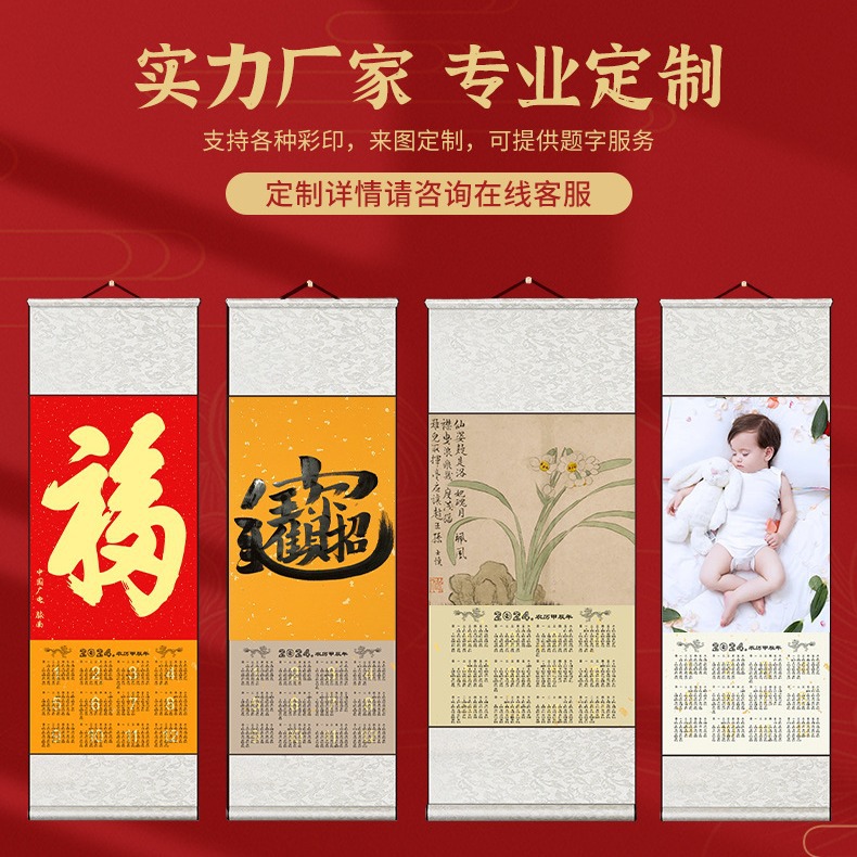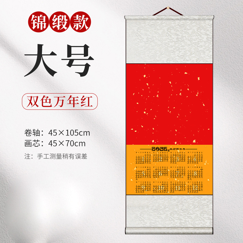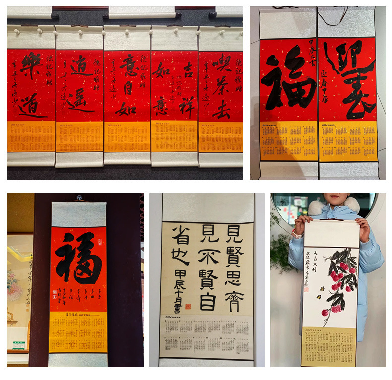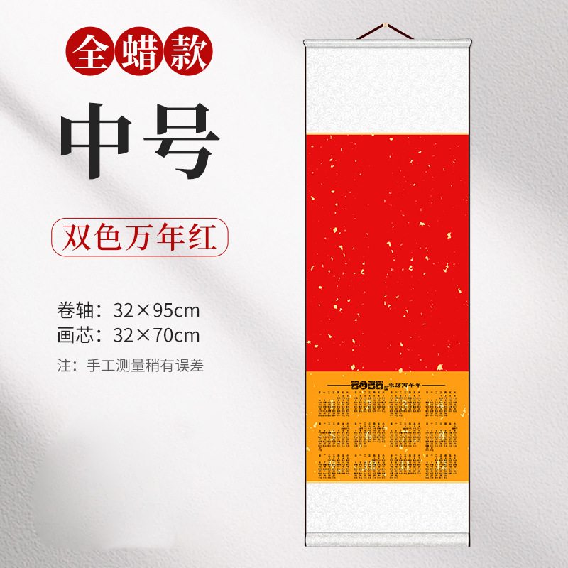 2026年日历宣纸挂轴厂家直销挂历万年红蜡染空白卷轴创作福字套装