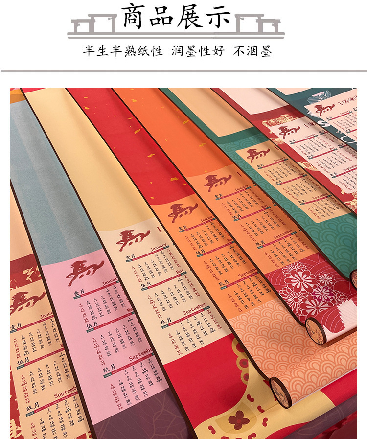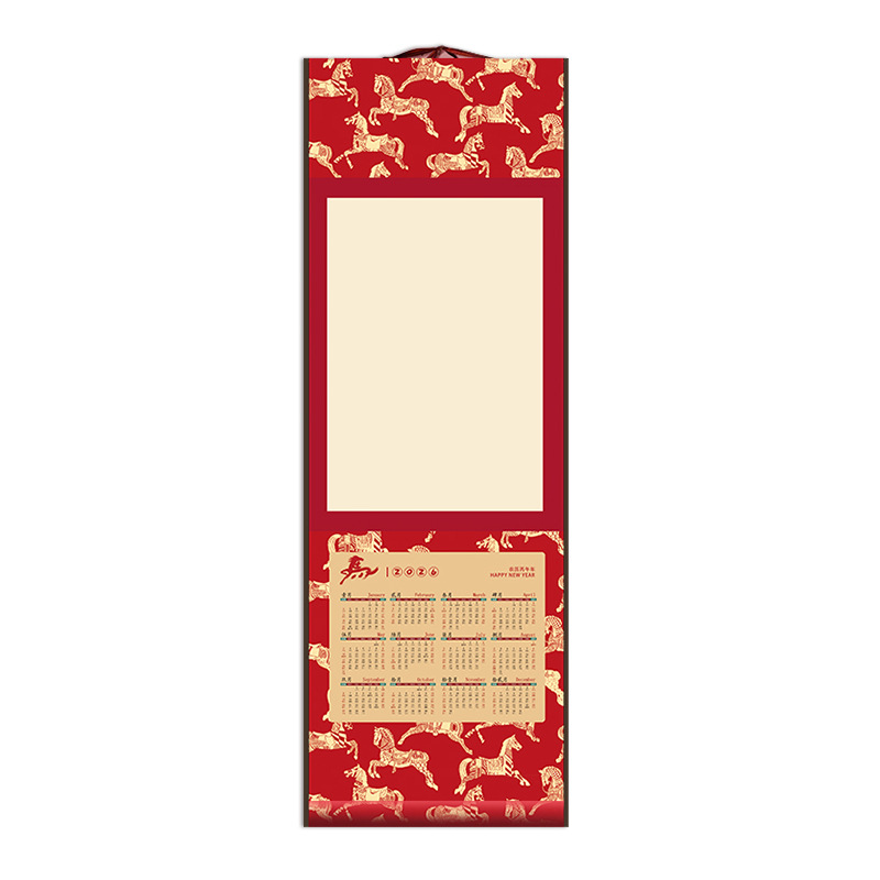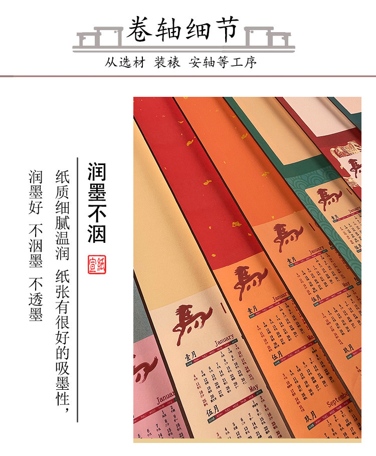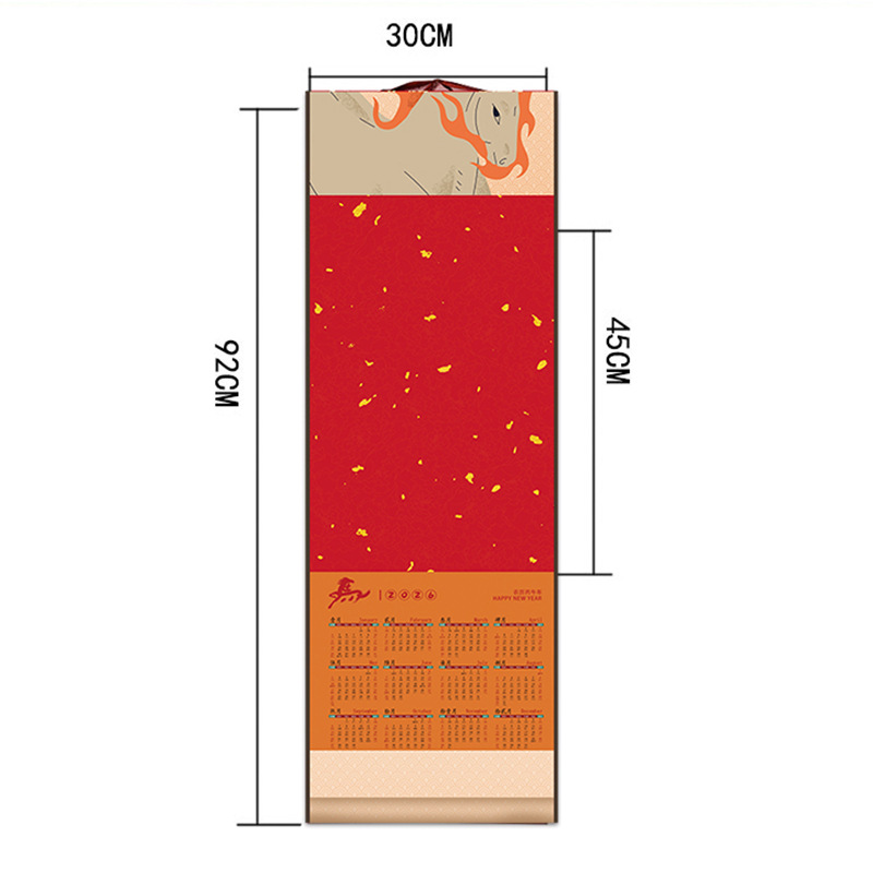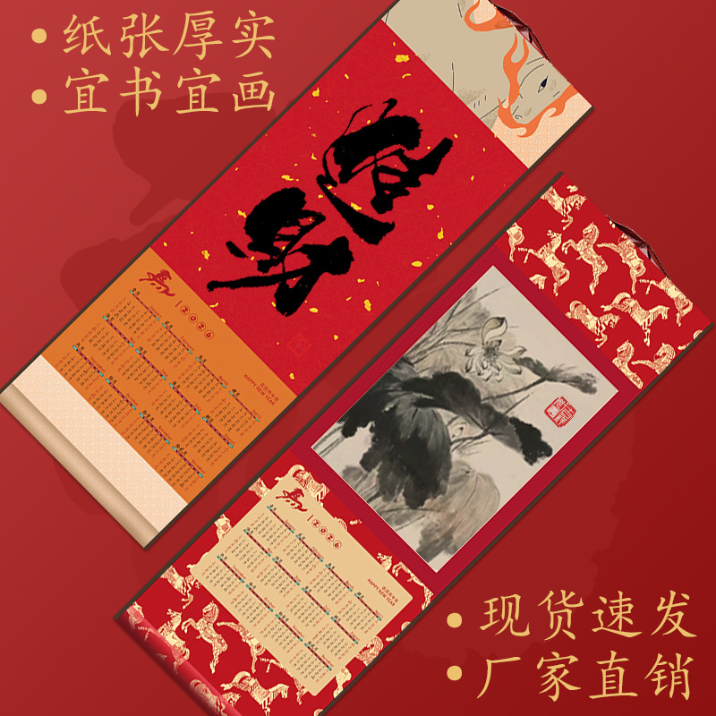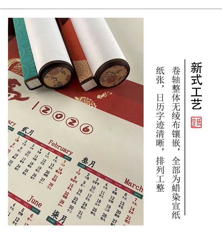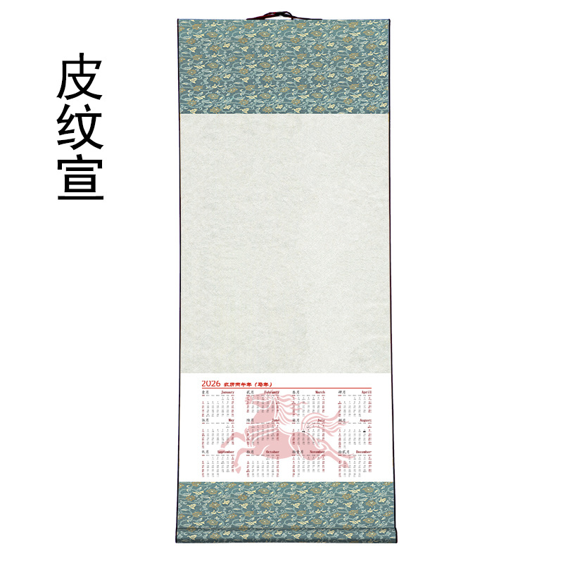新款2026年日历蜡染宣纸卷轴马年挂历中国风书法国画挂轴空白画轴