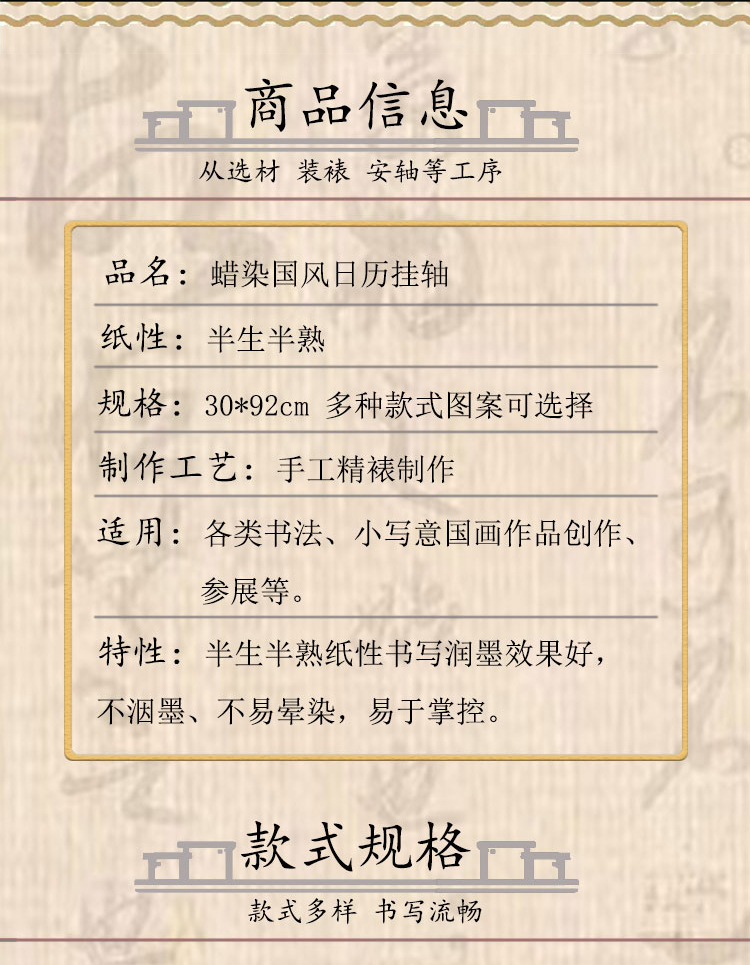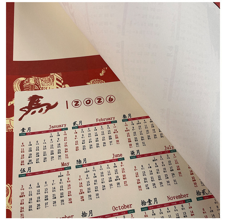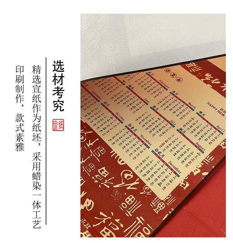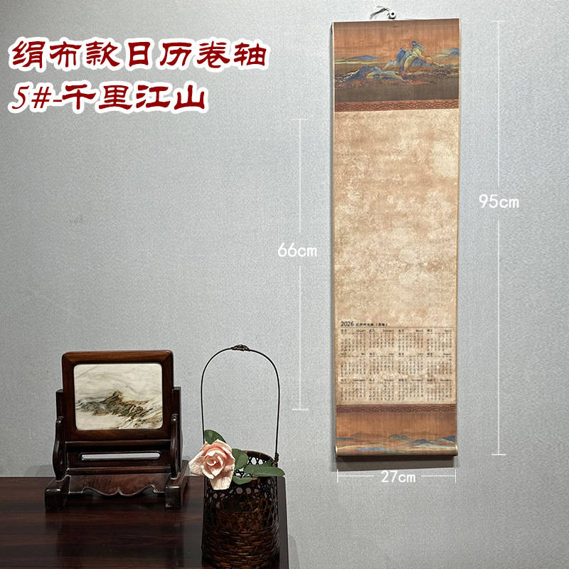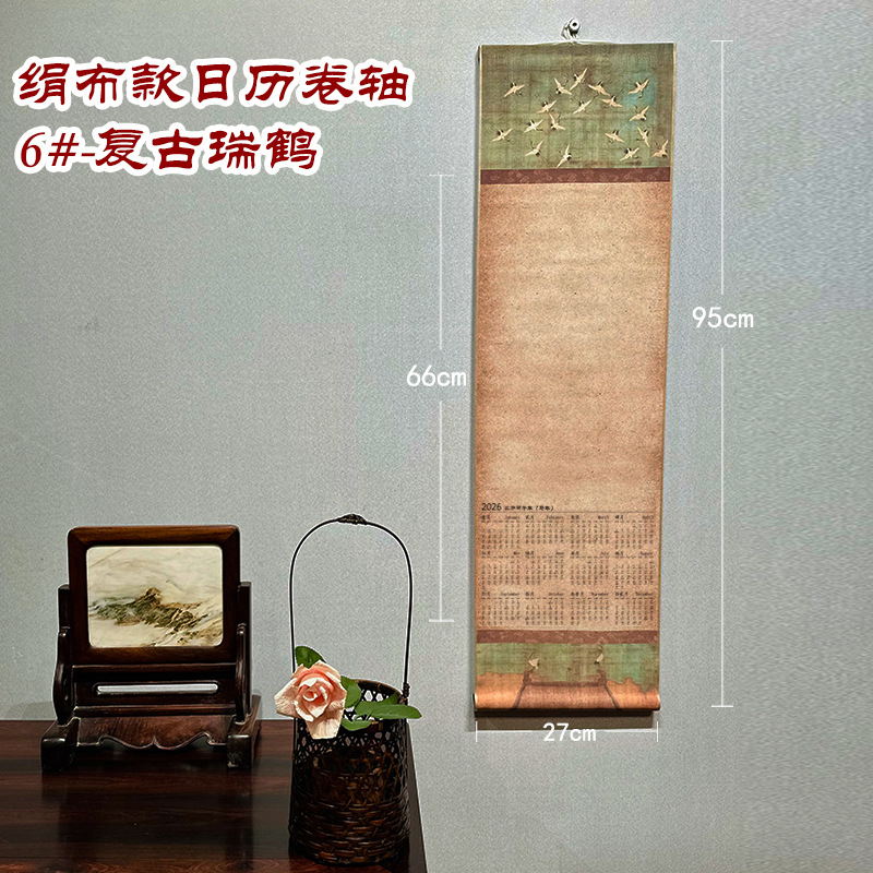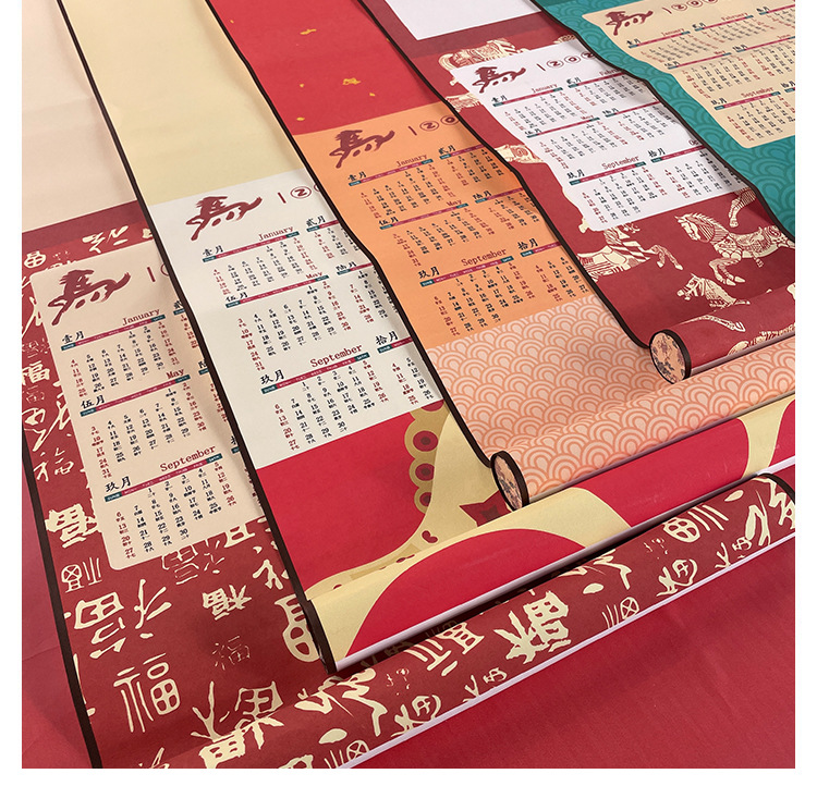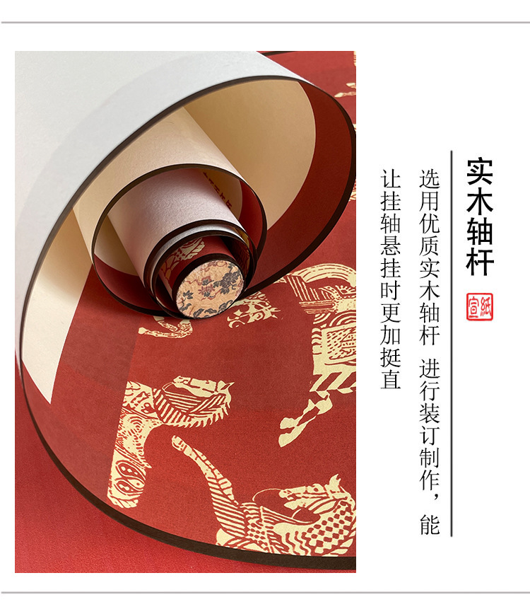 新款2026年日历蜡染宣纸卷轴马年挂历中国风书法国画挂轴空白画轴