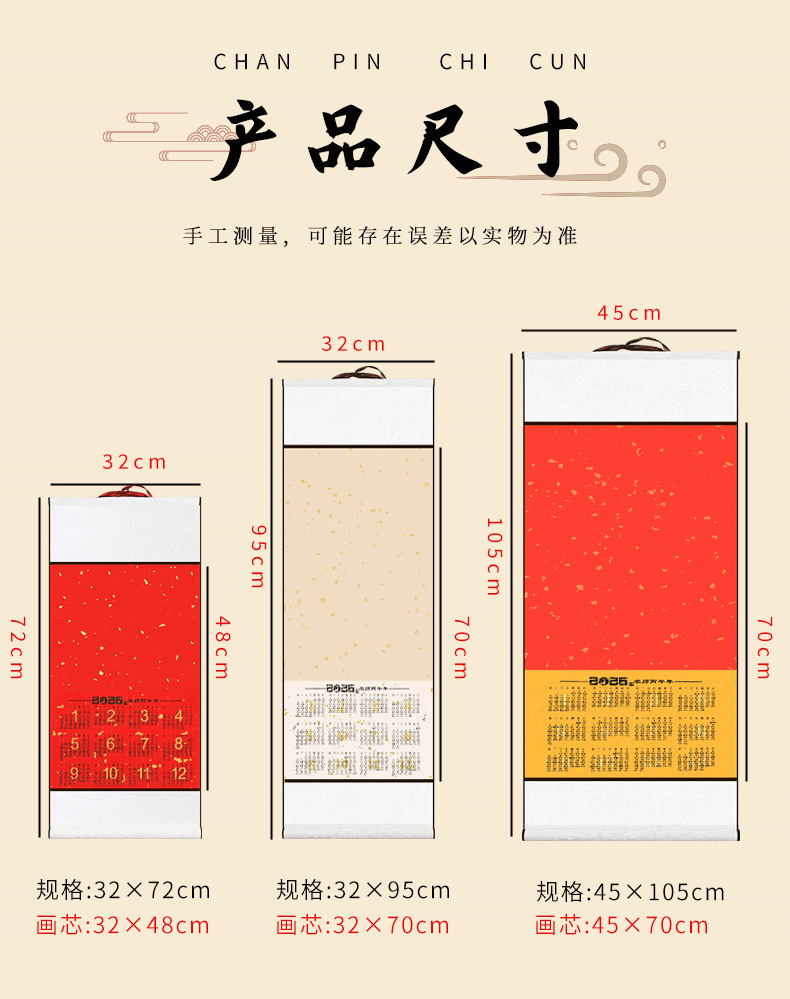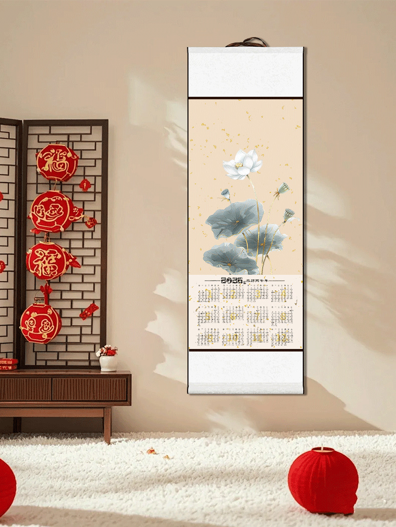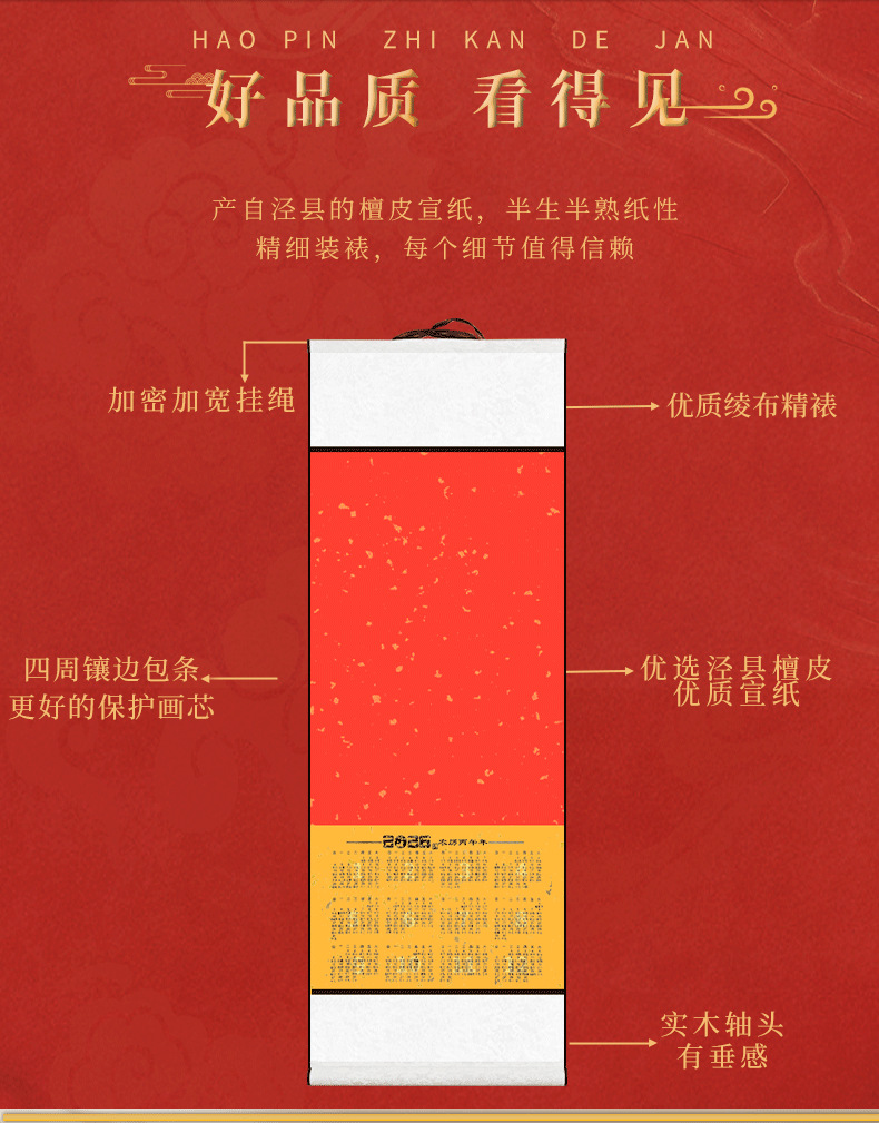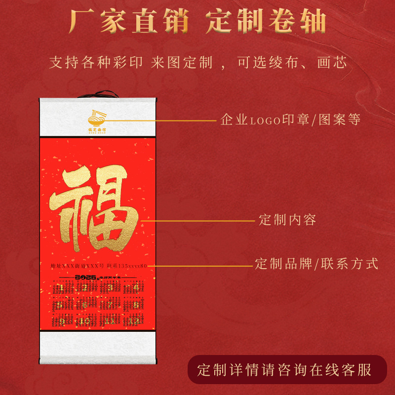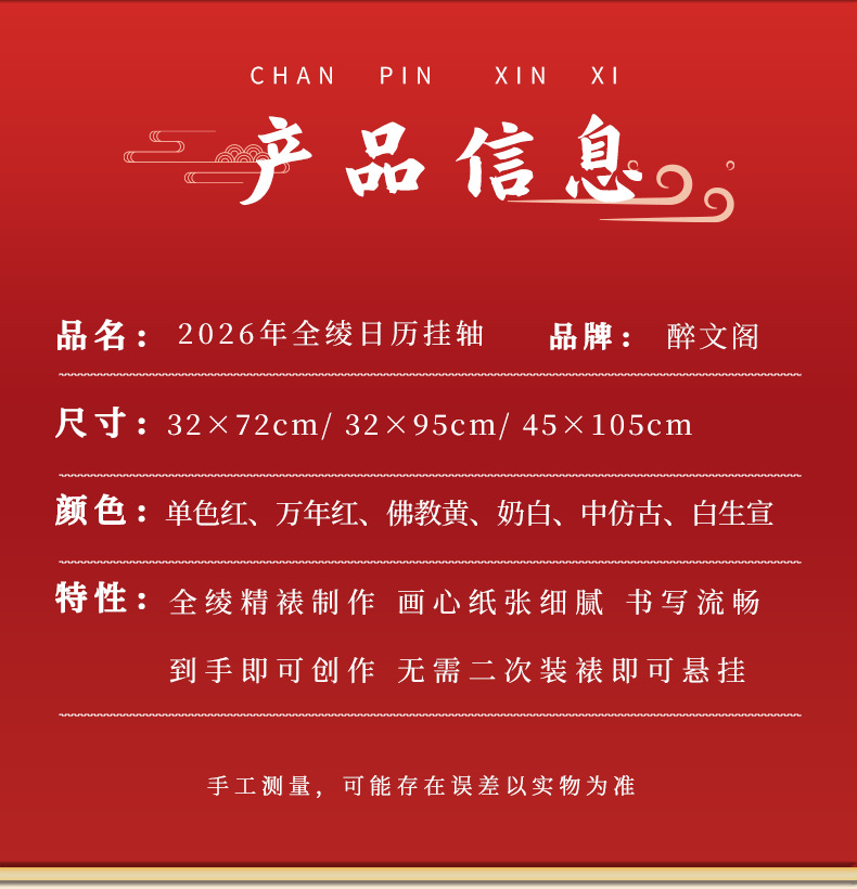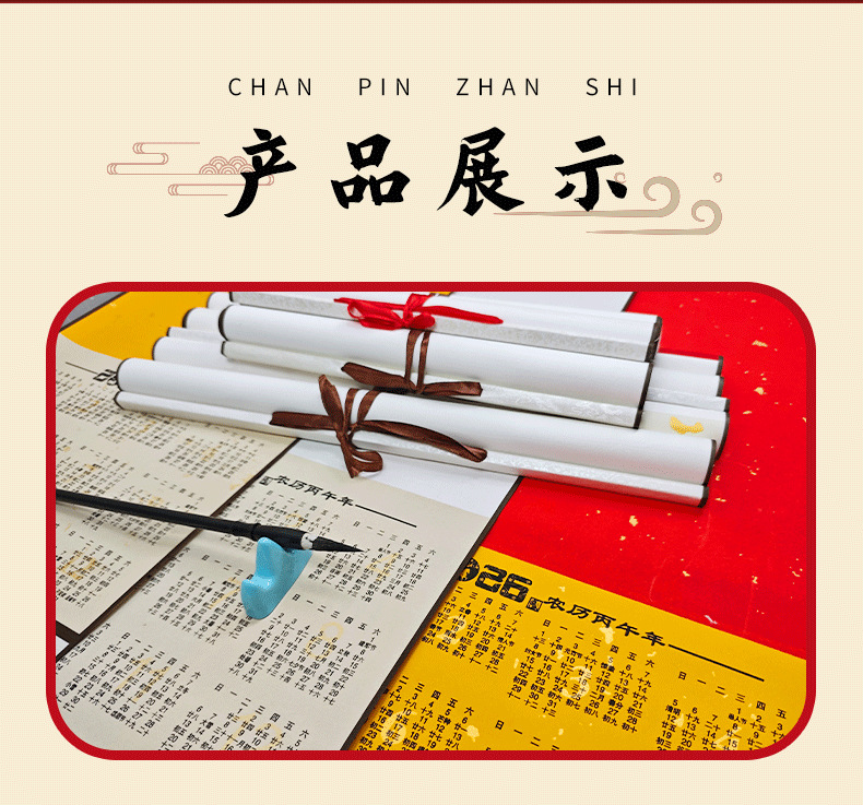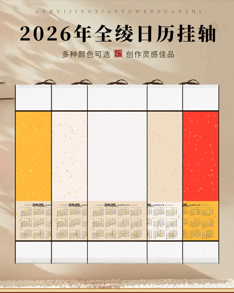 绫布款2026年宣纸空白挂历卷轴长卷国画书法伴手礼品挂轴蜡染宣纸