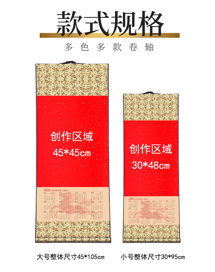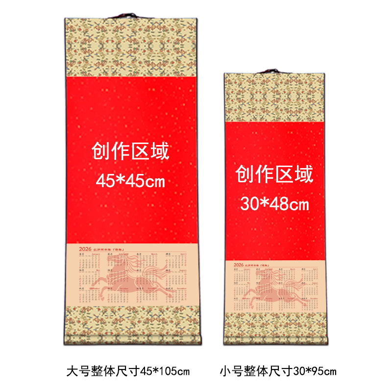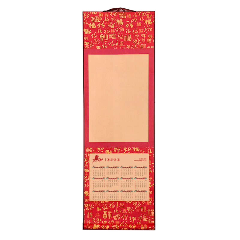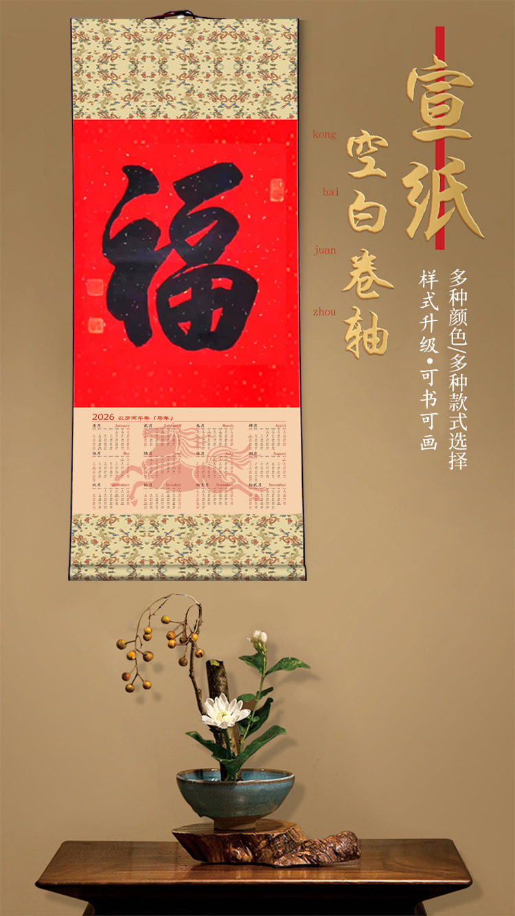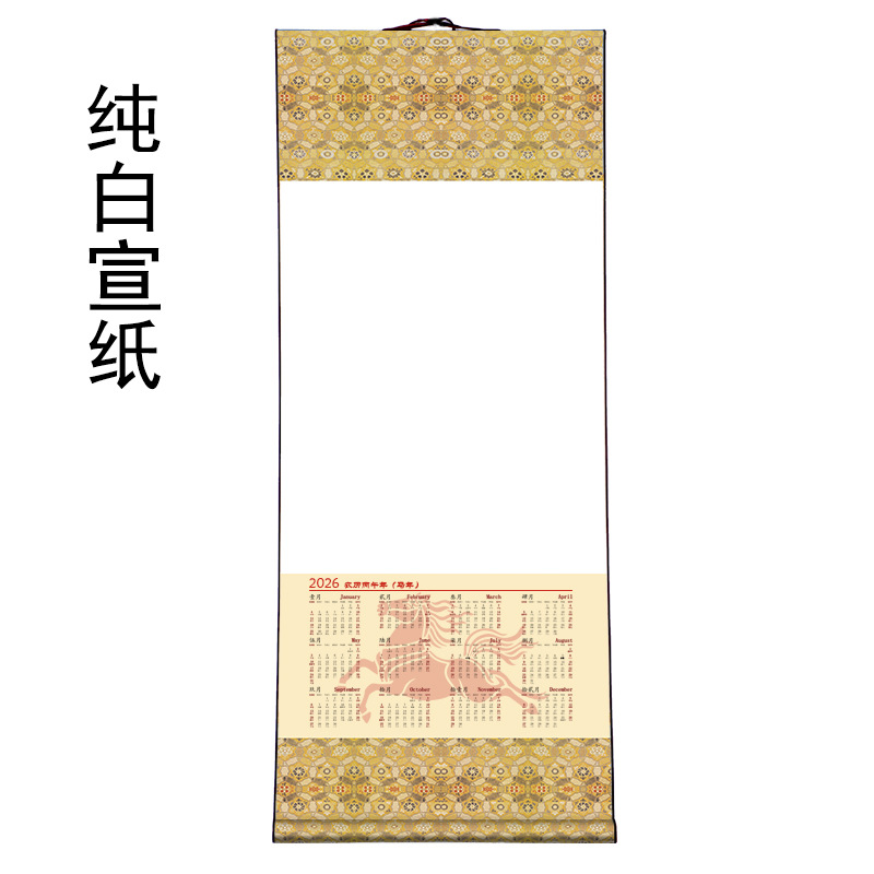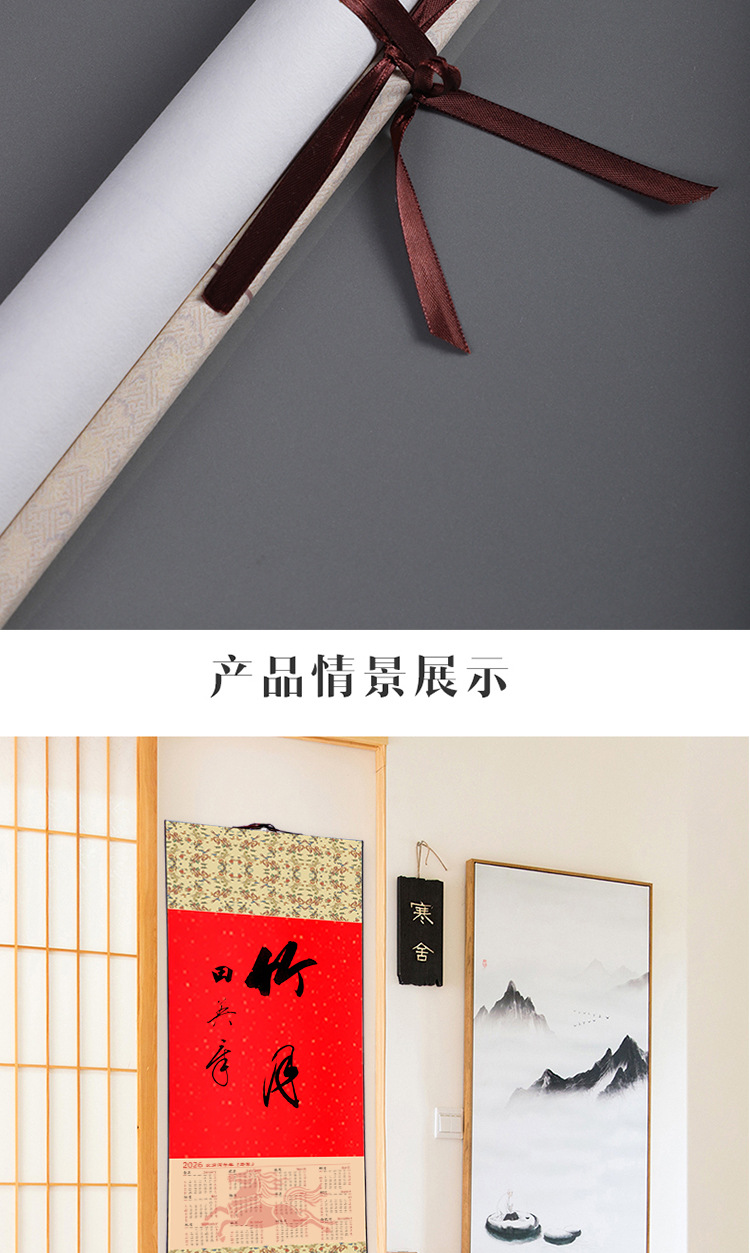 2026年宣纸空白挂历蜡染万年红日历卷轴国画毛笔书法年历挂轴批发