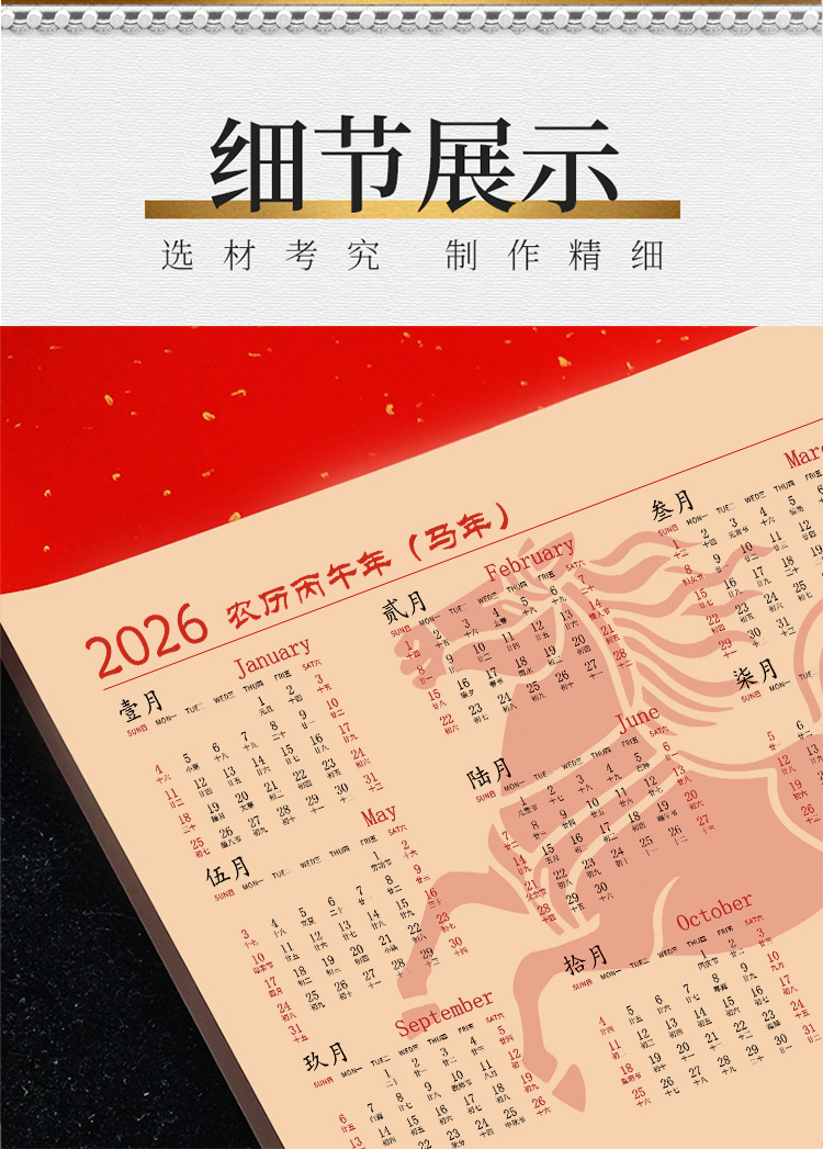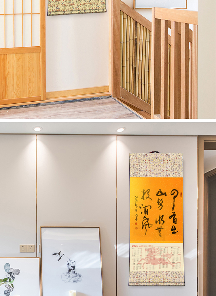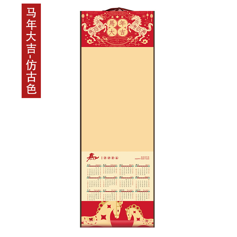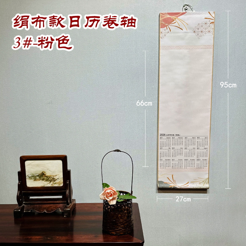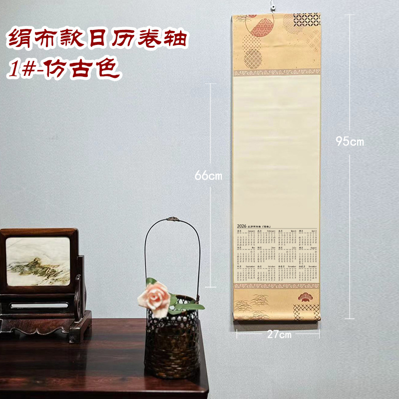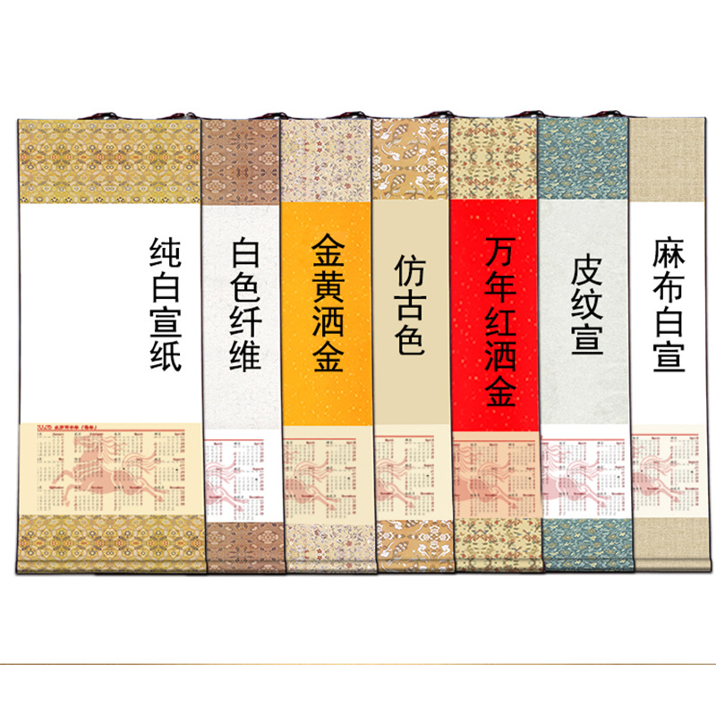 2026年宣纸空白挂历蜡染万年红日历卷轴国画毛笔书法年历挂轴批发