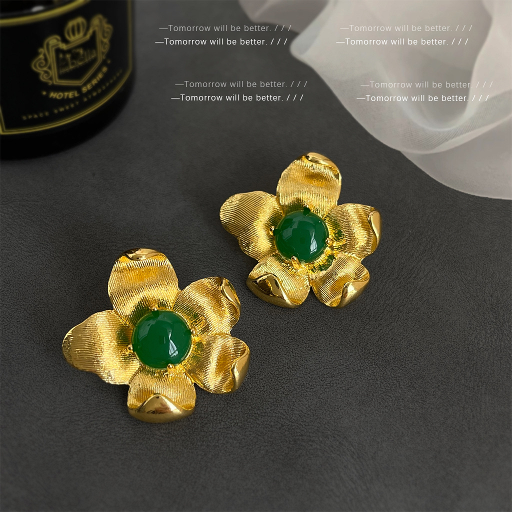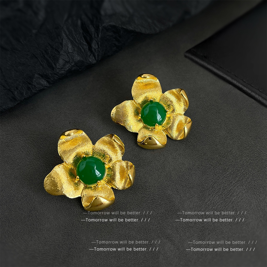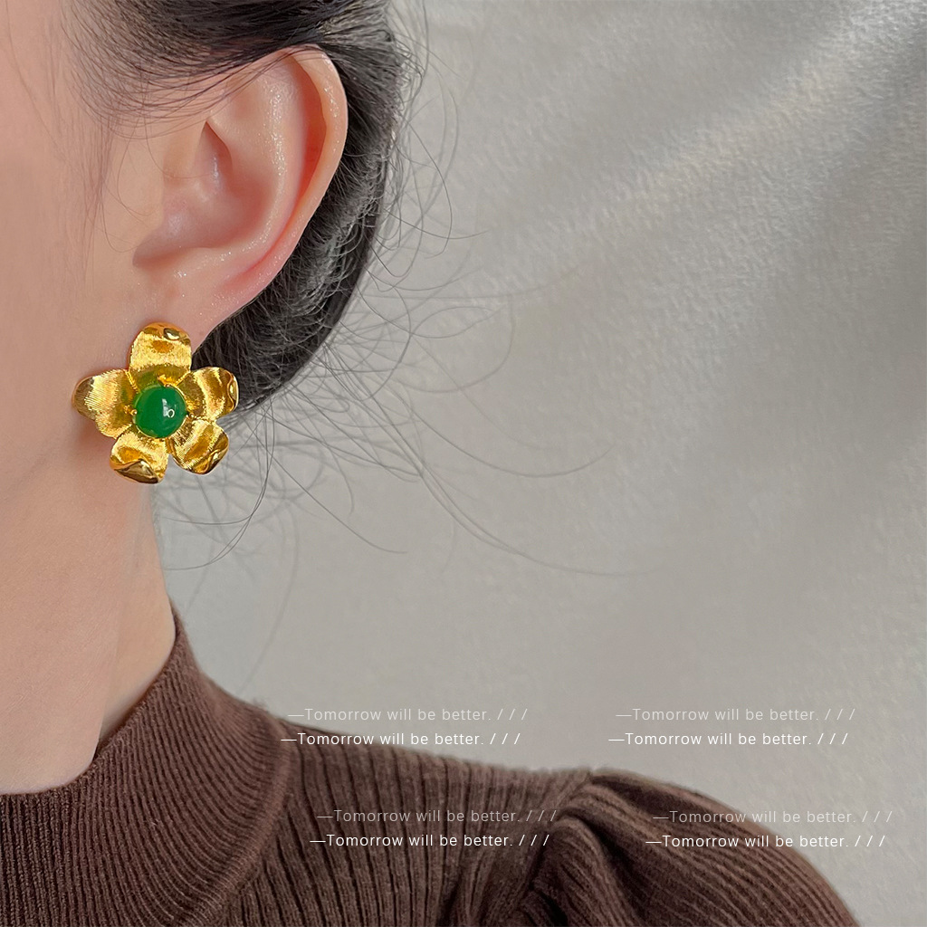 fairy temperamental three-dimensional flower earrings women‘s retro fashion mid-ancient style earrings high sense heavy industry all-match ear jewelry