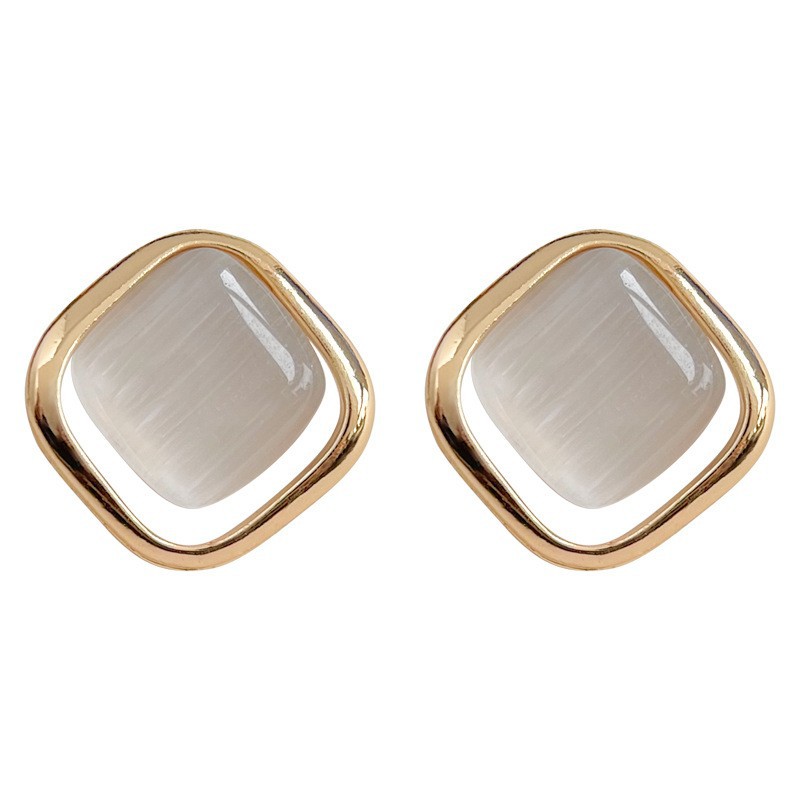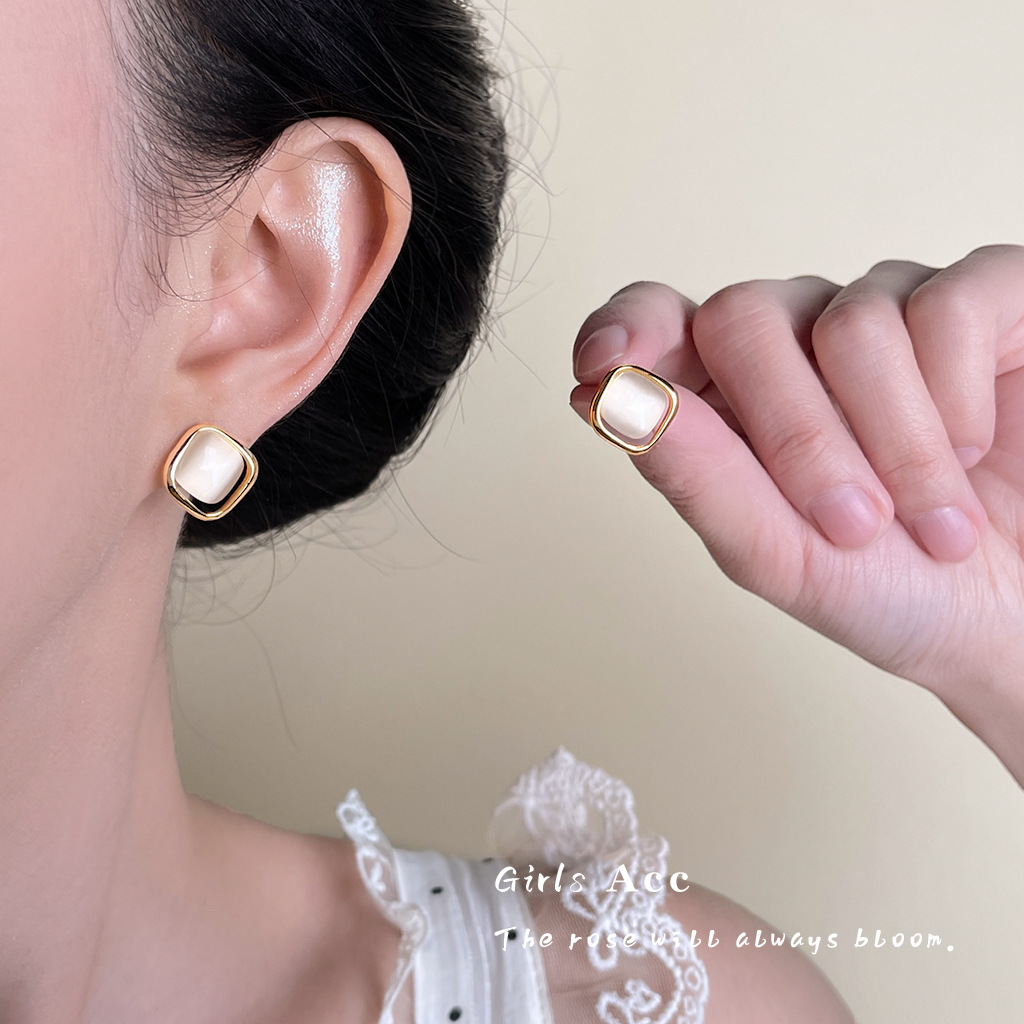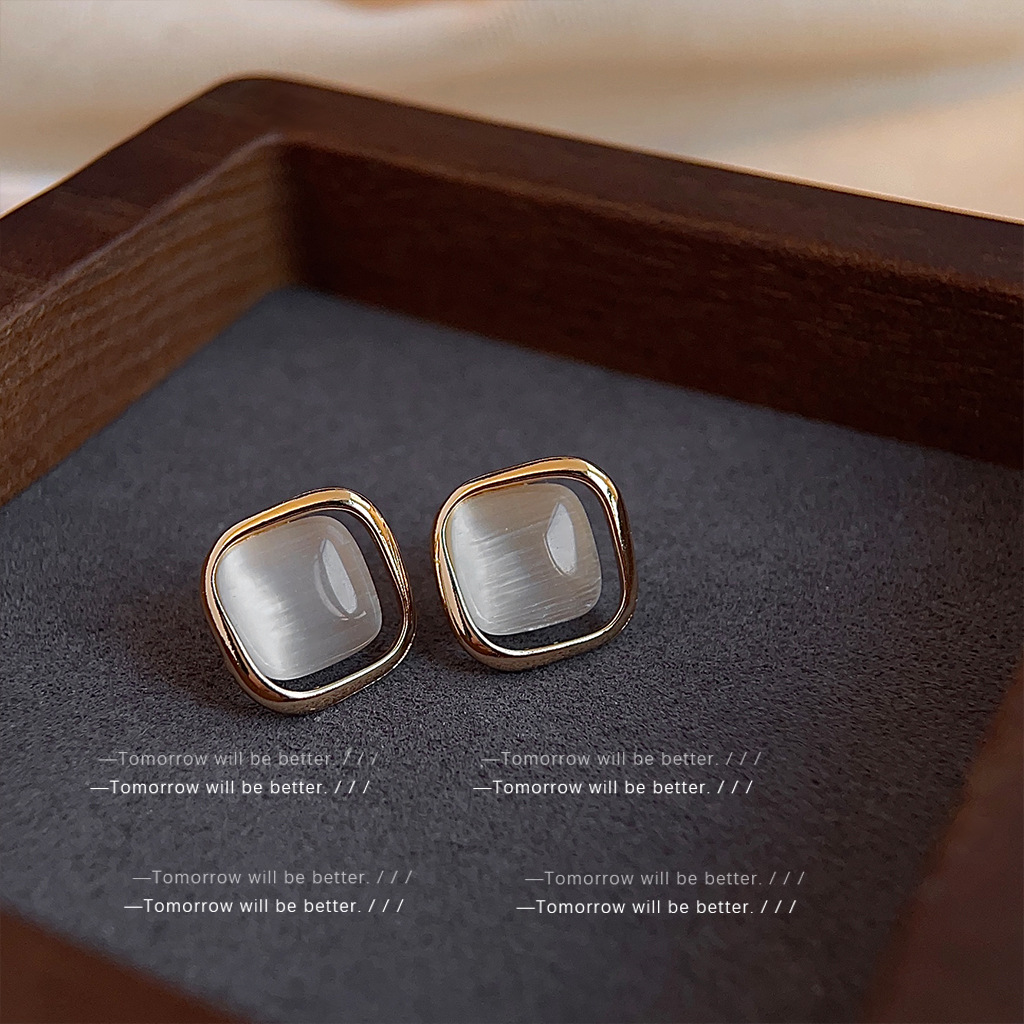 简约款方形猫眼石耳钉小众设计气质耳环女法式轻奢百搭高级感耳饰